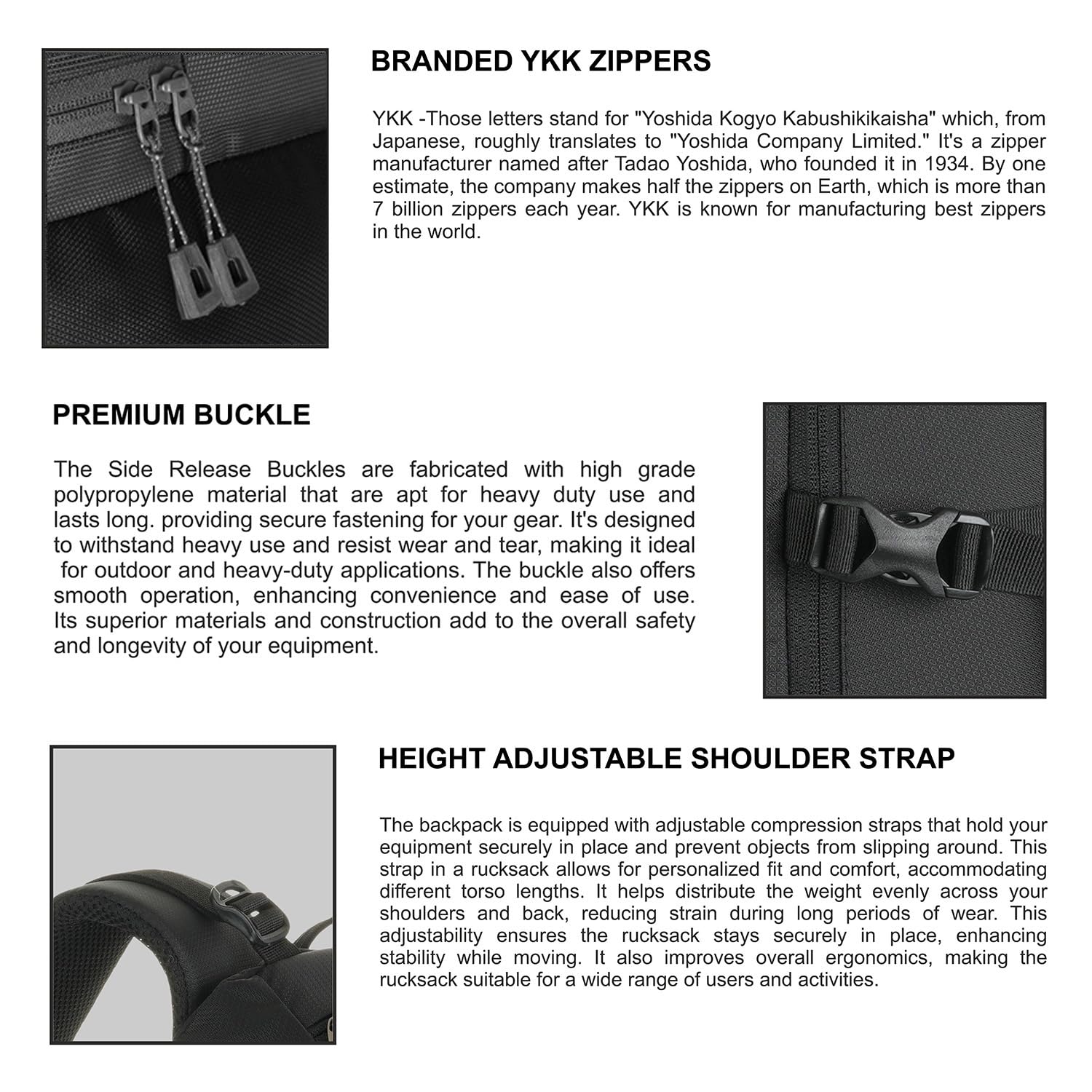• It has got several buckles, straps and convenient pockets that make it suitable for adjusting a lot of travel stuff inside this large trekking rucksack bag.