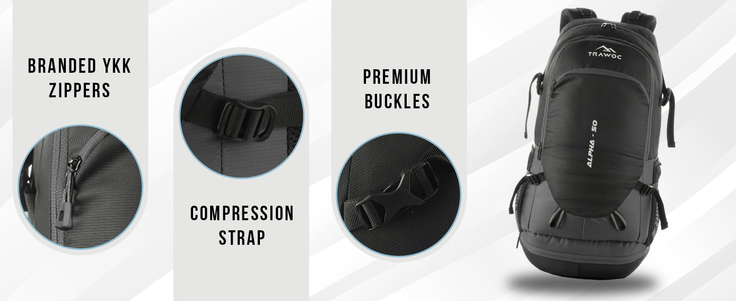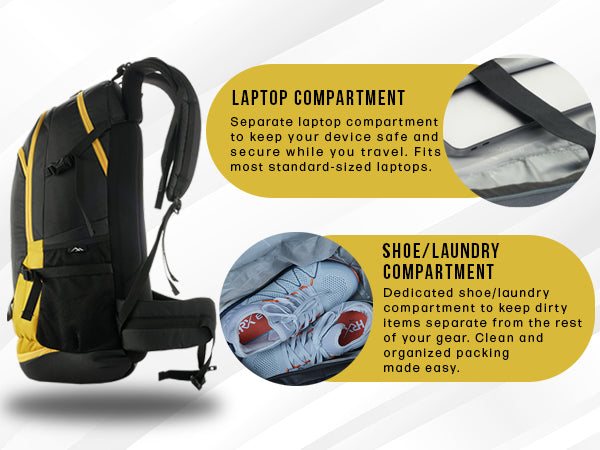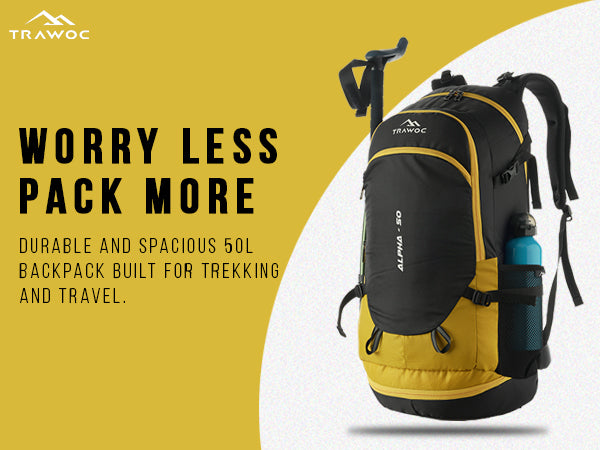 Spacious & Functional: 50L rucksack with a laptop sleeve and multiple pockets, ideal for trekking, camping, and multi-day travel.