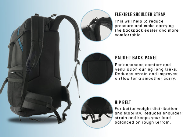 Breathable back padding ensures superior airflow, keeping you cool and sweat-free during long treks.