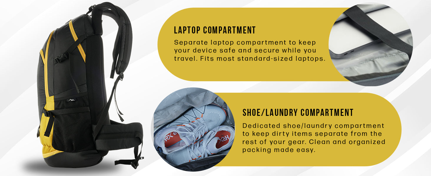 Shoe Compartment: Dedicated bottom shoe compartment keeps footwear and gear organized and separate from main storage.