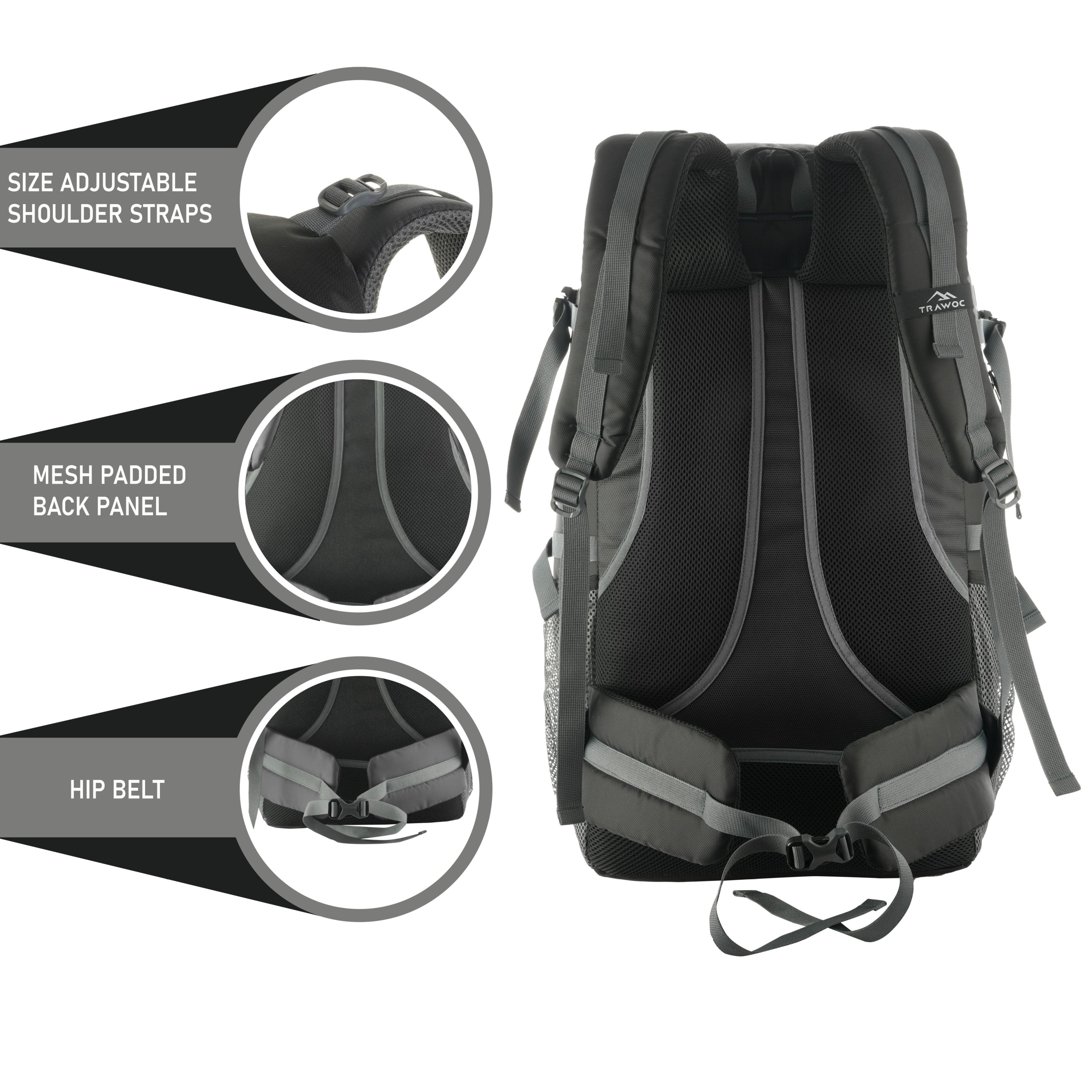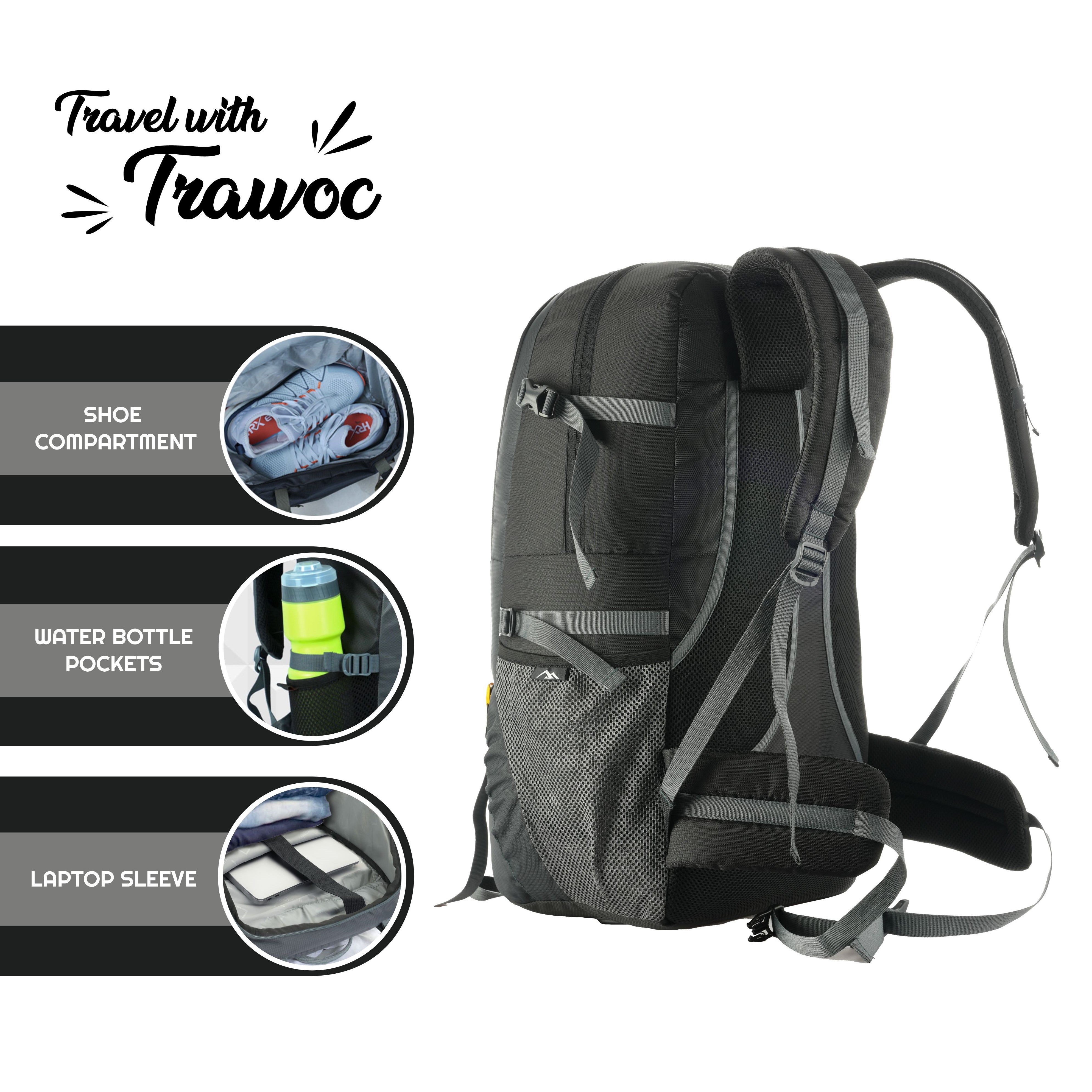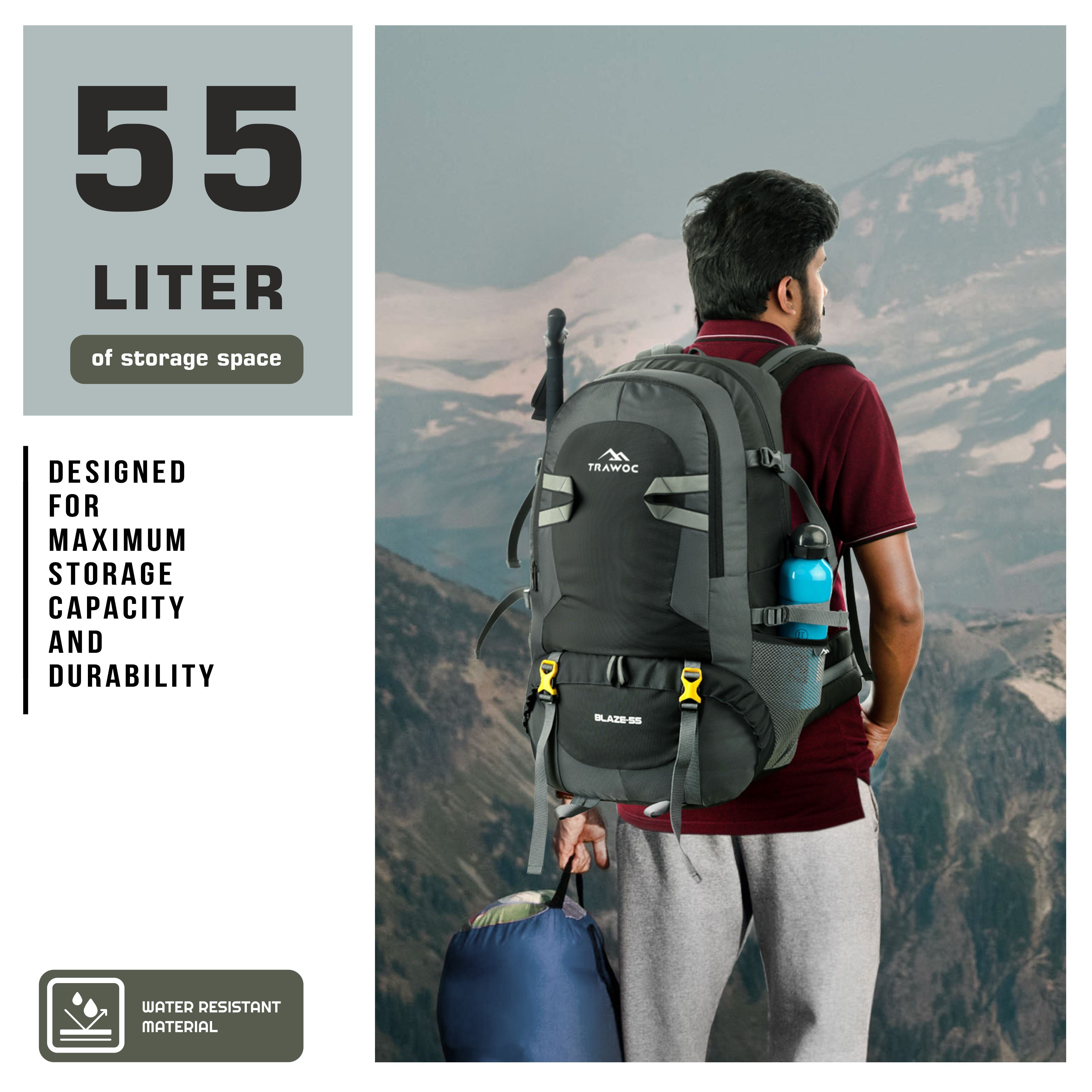 Spacious & Functional: 55L rucksack with a laptop sleeve and multiple pockets, ideal for trekking, camping, and multi-day travel.