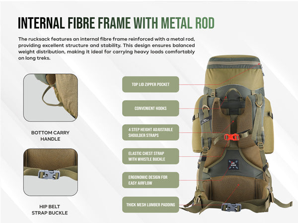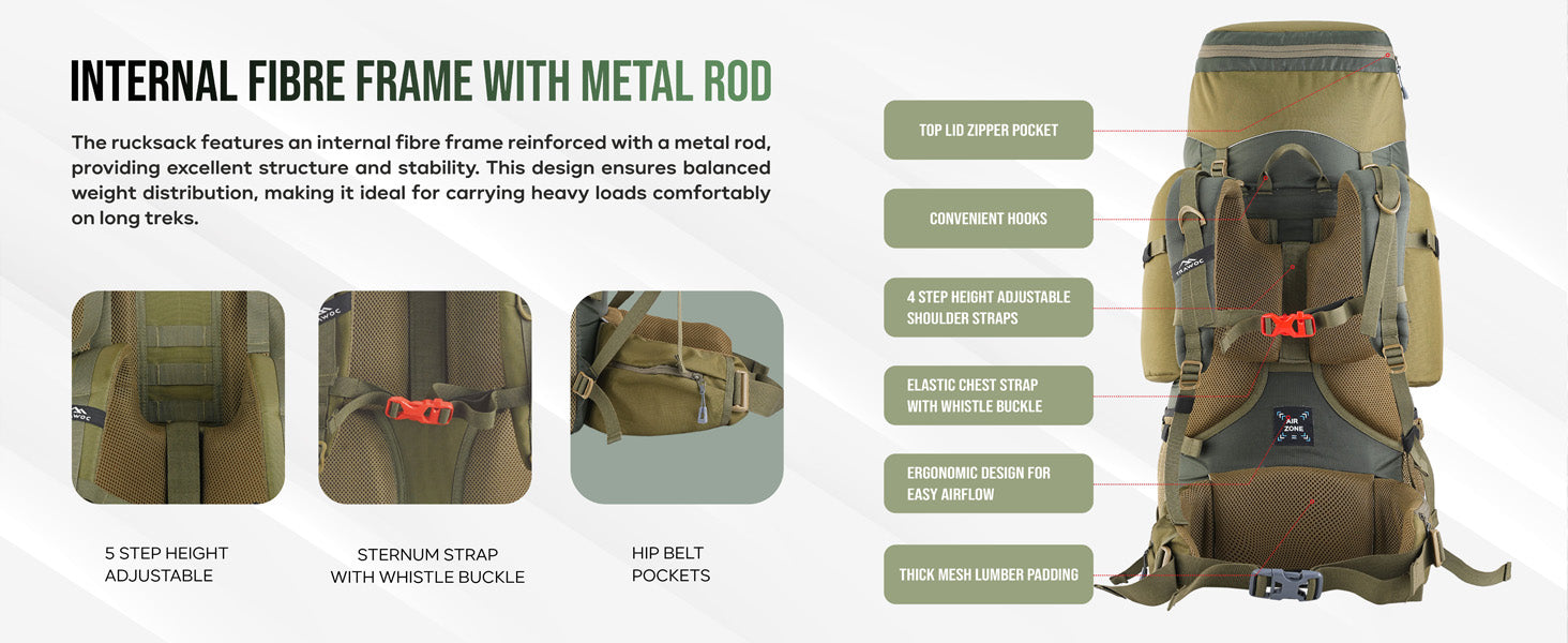Supportive & Comfortable: Internal metal and fiber frame with padded shoulder straps and breathable back support for all-day comfort.