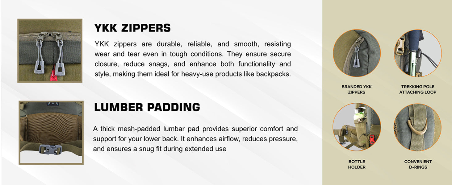 Durable YKK zippers ensure smooth, snag-free closure every time. Built for reliability, they keep your gear secure on every adventure.