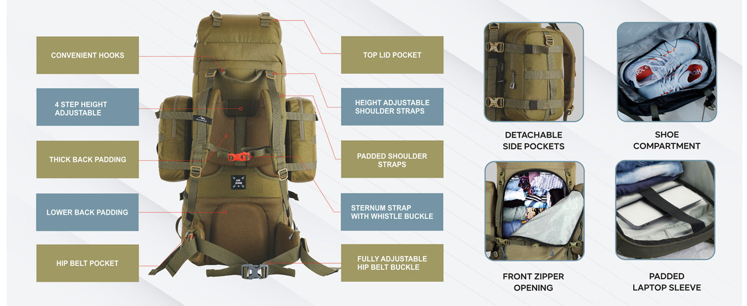 Breathable back padding ensures superior airflow, keeping you cool and sweat-free during long treks.