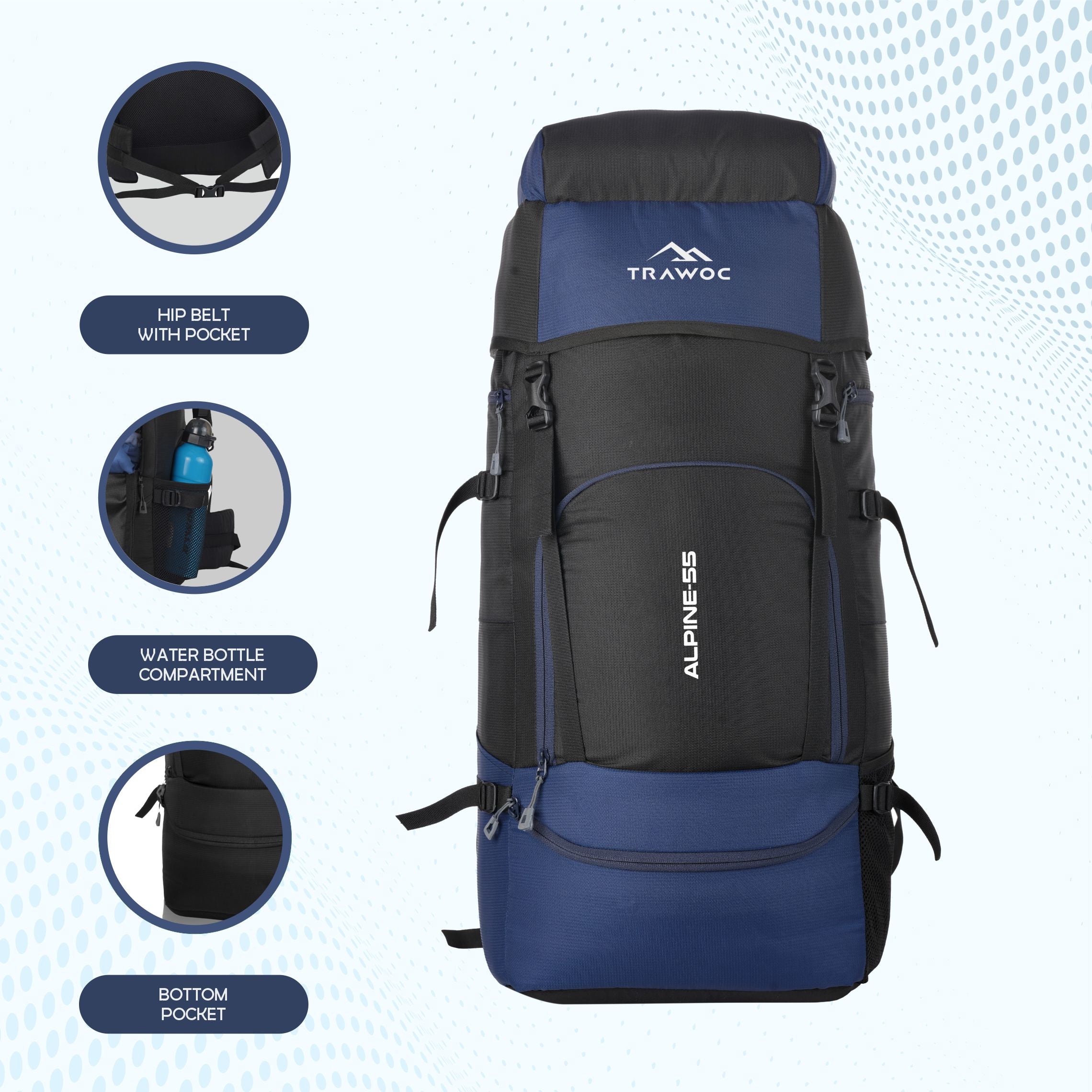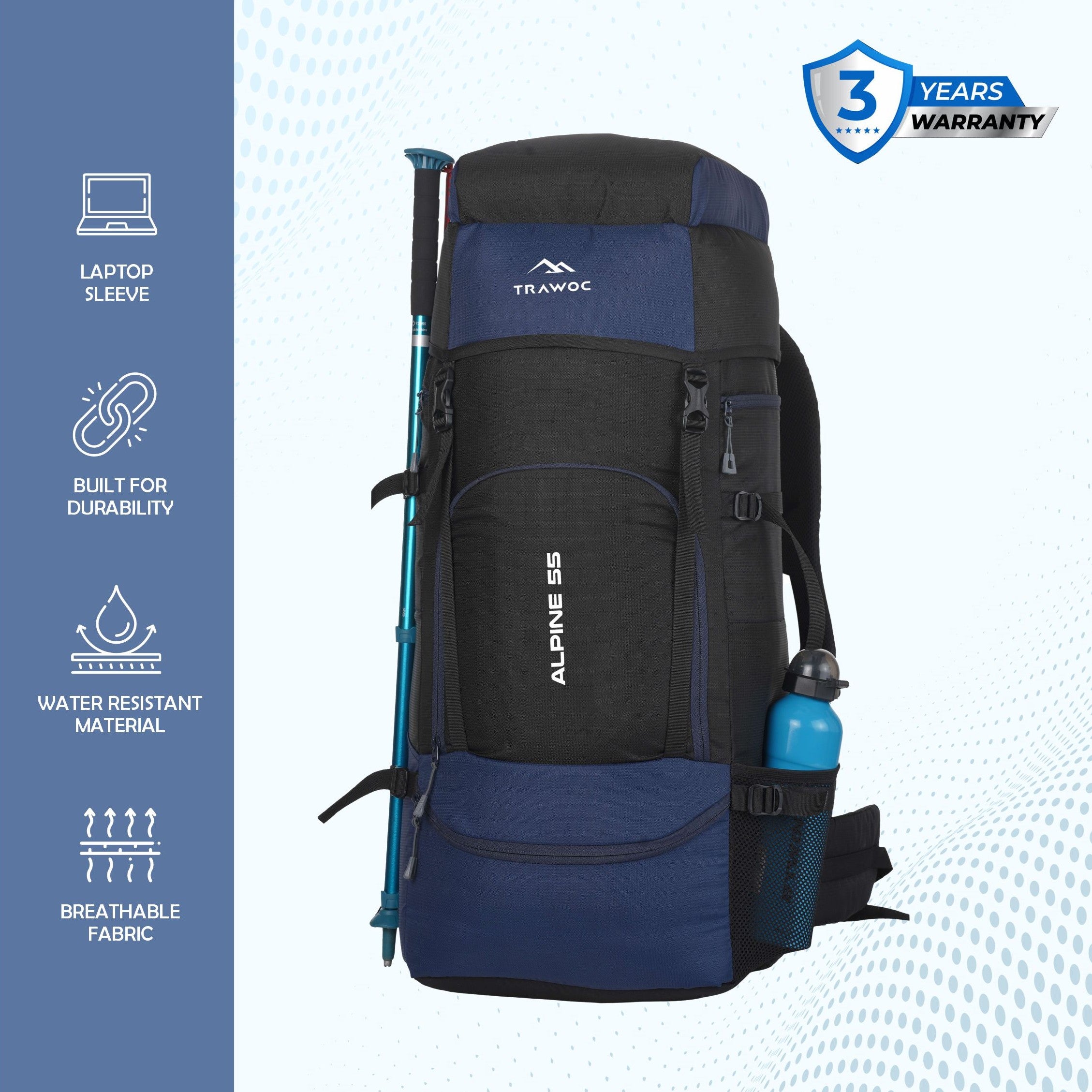 Spacious & Functional: 55L rucksack with multiple compartments and a laptop sleeve, ideal for trekking, camping, and long outdoor trips.