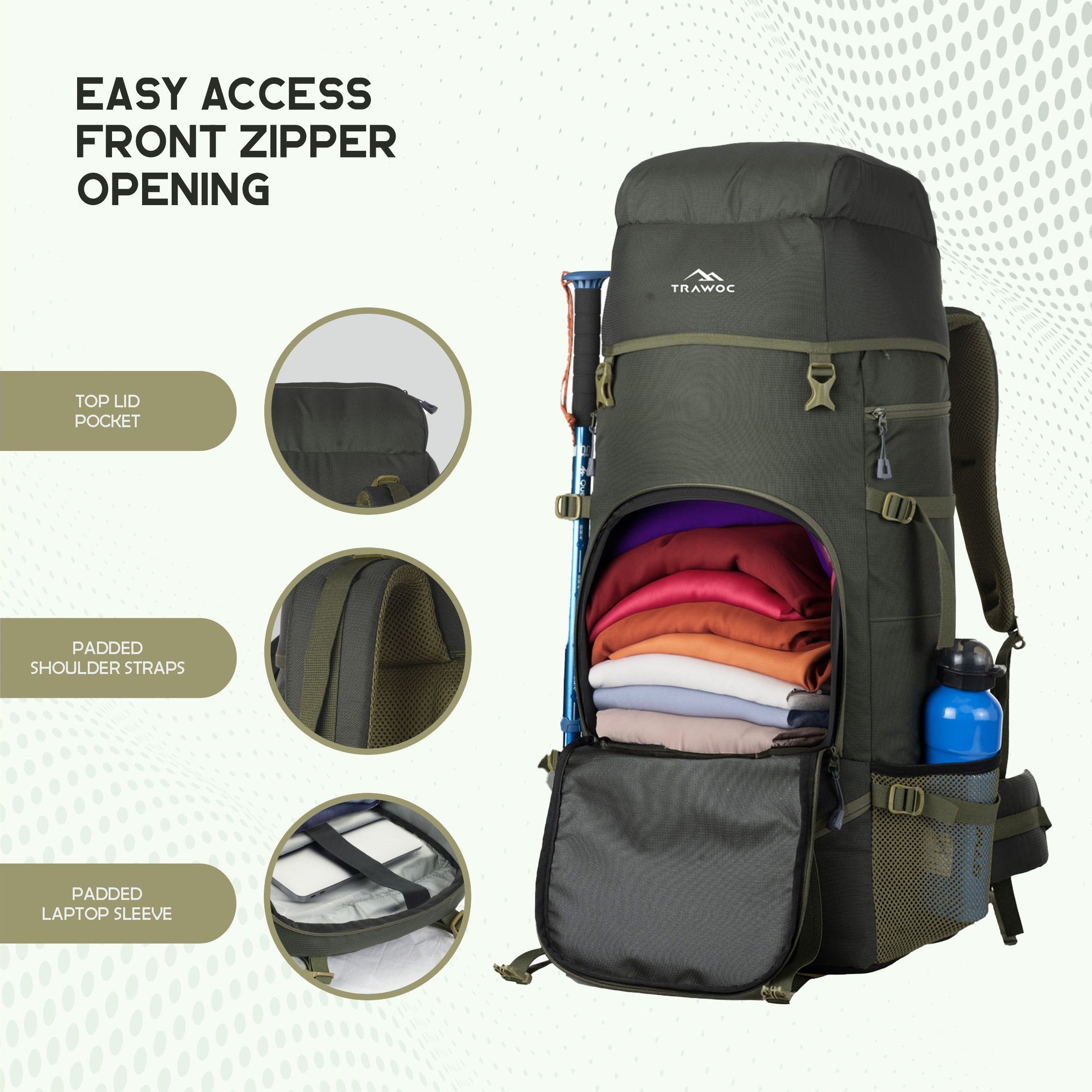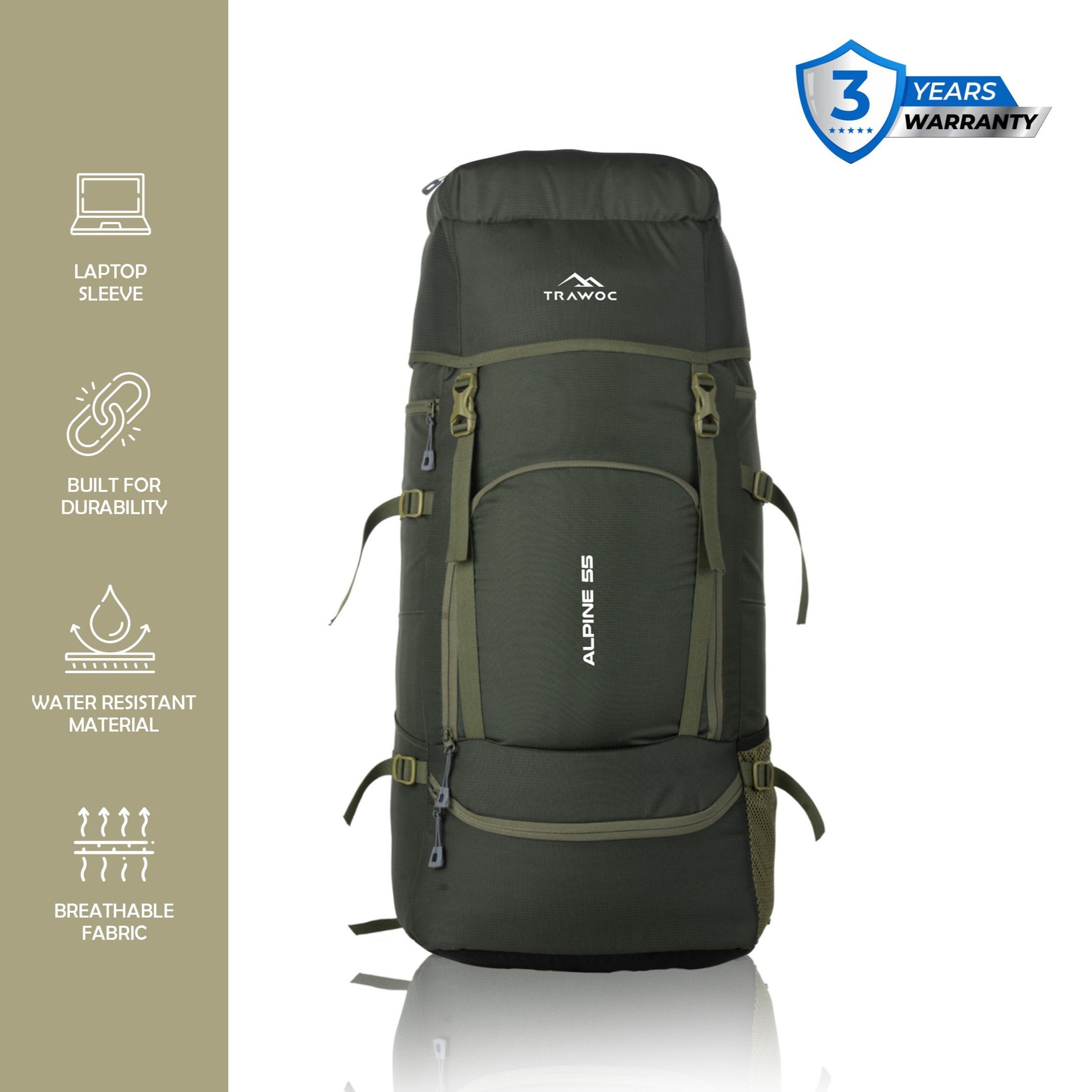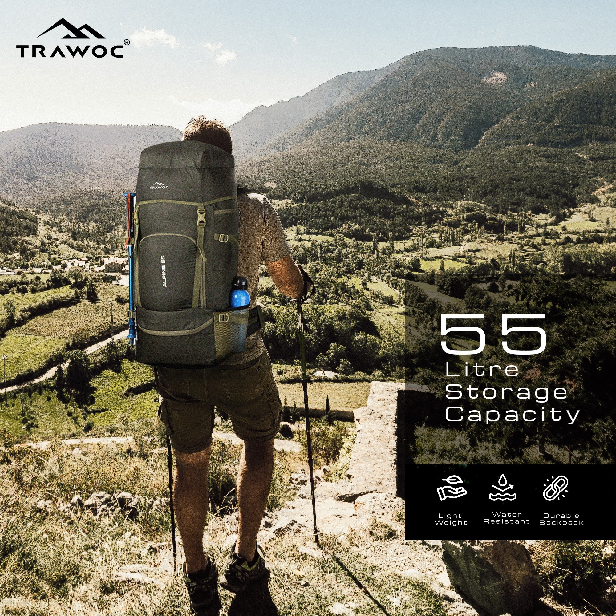Spacious & Functional: 55L rucksack with multiple compartments and a laptop sleeve, ideal for trekking, camping, and long outdoor trips.