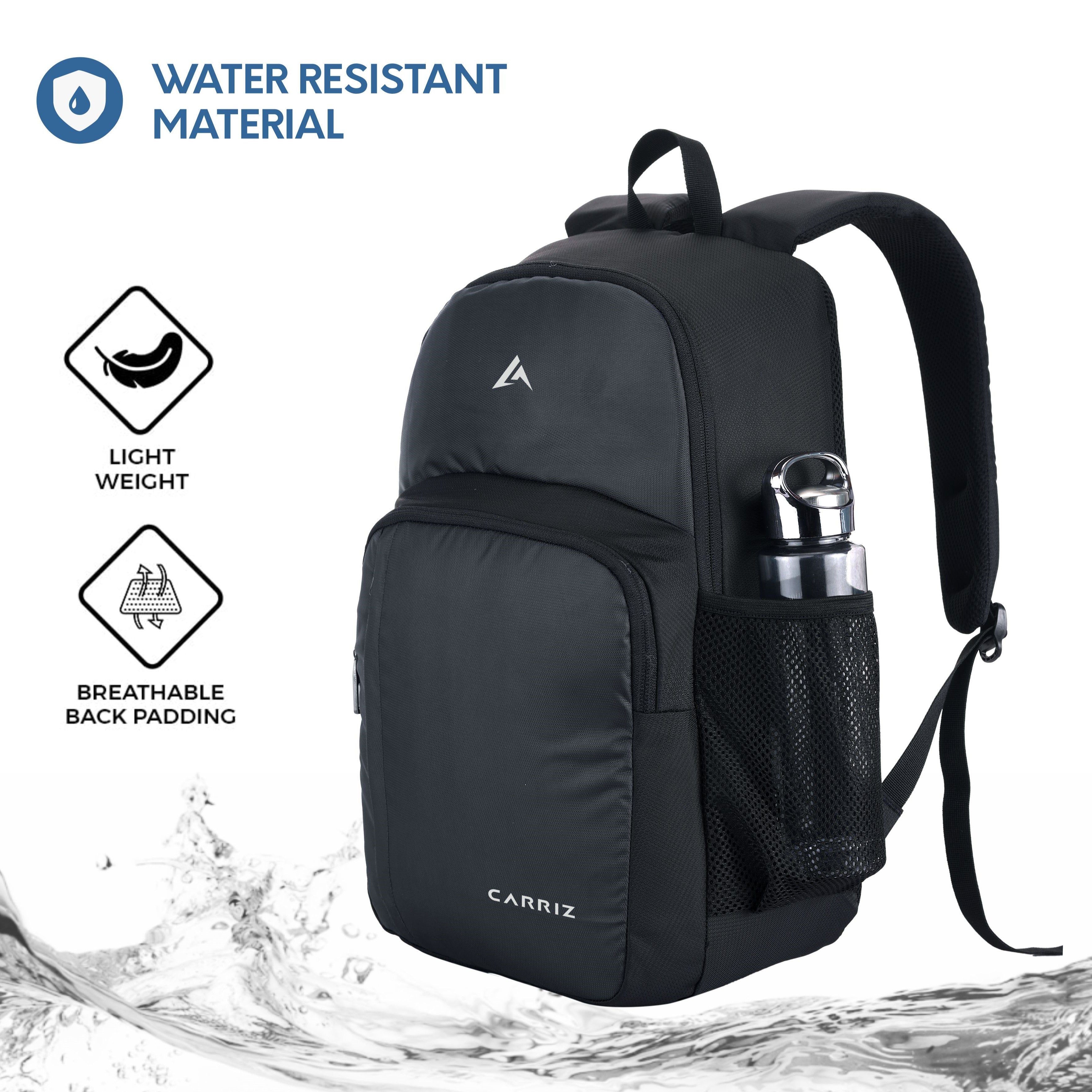Introducing the CARRIZ Backpack -This exceptional 20 L bag, meticulously crafted, appeals to everyone. It's not just a bag; it's your perfect companion for everyday life, whether you're heading to school, work, or embarking on outdoor adventures. Crafted from top-quality, water-resistant materials, it's as versatile as it is chic. Whether you're a modern commuter, a dedicated student, a diligent professional, or a casual traveler, this bag seamlessly adapts to your lifestyle. It transitions effortlessly from your daily routine to outdoor escapades, making it an ideal choice for your needs. One of its standout features is the premium zippers, known for their smooth operation and longevity. They're designed for reliable access to your essentials, ensuring a hassle-free experience wherever you go. Additionally, the bag features sturdy buckles and clips, enhancing its durability and practicality. The CARRIZ Backpack offers ample storage with two spacious compartments, perfect for your documents, gadgets, and accessories. It also includes a side pocket for your water bottle and an organizer for keys, pens, and daily essentials, all within easy reach. Comfort is paramount, thanks to the breathable mesh-padded back panel and adjustable straps. These straps ensure a comfortable carry, whether you're commuting or exploring the outdoors. With its generous 20-liter capacity, this bag accommodates your daily needs as well as clothing and gear for outdoor activities. Its water-resistant design guarantees your belongings stay dry, making it a reliable choice in any weather. Rest easy with a generous 2-year manufacturer's warranty, a testament to the bag's quality and durability. Whether you're a man or woman in need of a versatile bag for daily use, a student seeking a reliable school bag, or an outdoor enthusiast in search of a dependable daypack, the CARRIZ Backpack is the ultimate choice. Make your purchase today and enjoy the perfect blend of style, comfort, and durability!