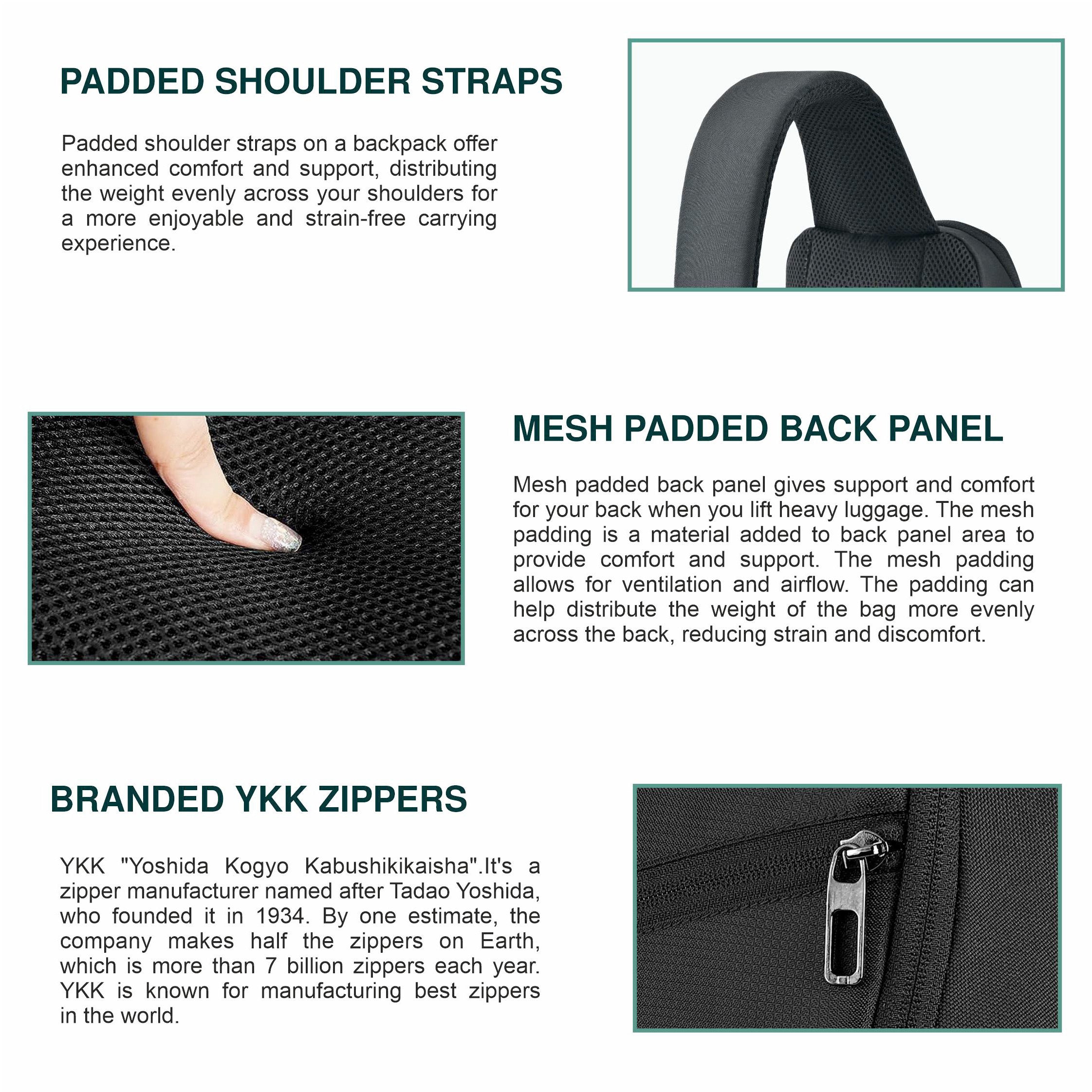 Comfortable Carry: Ergonomic padded straps and breathable back panel ensure comfort during long wear.