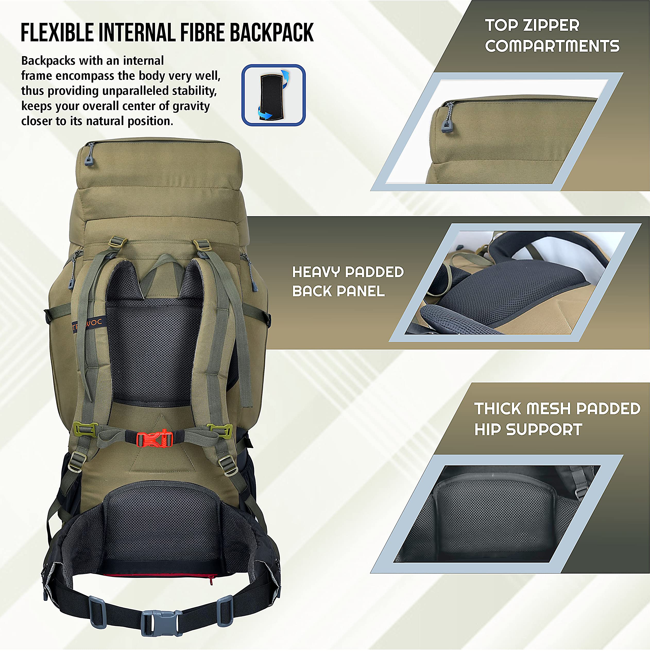 Spacious 60L Capacity: This large trekking backpack comes with a roomy main compartment, padded laptop sleeve (fits up to 17"), and multiple side and front pockets. It also includes a separate shoe compartment for added convenience.