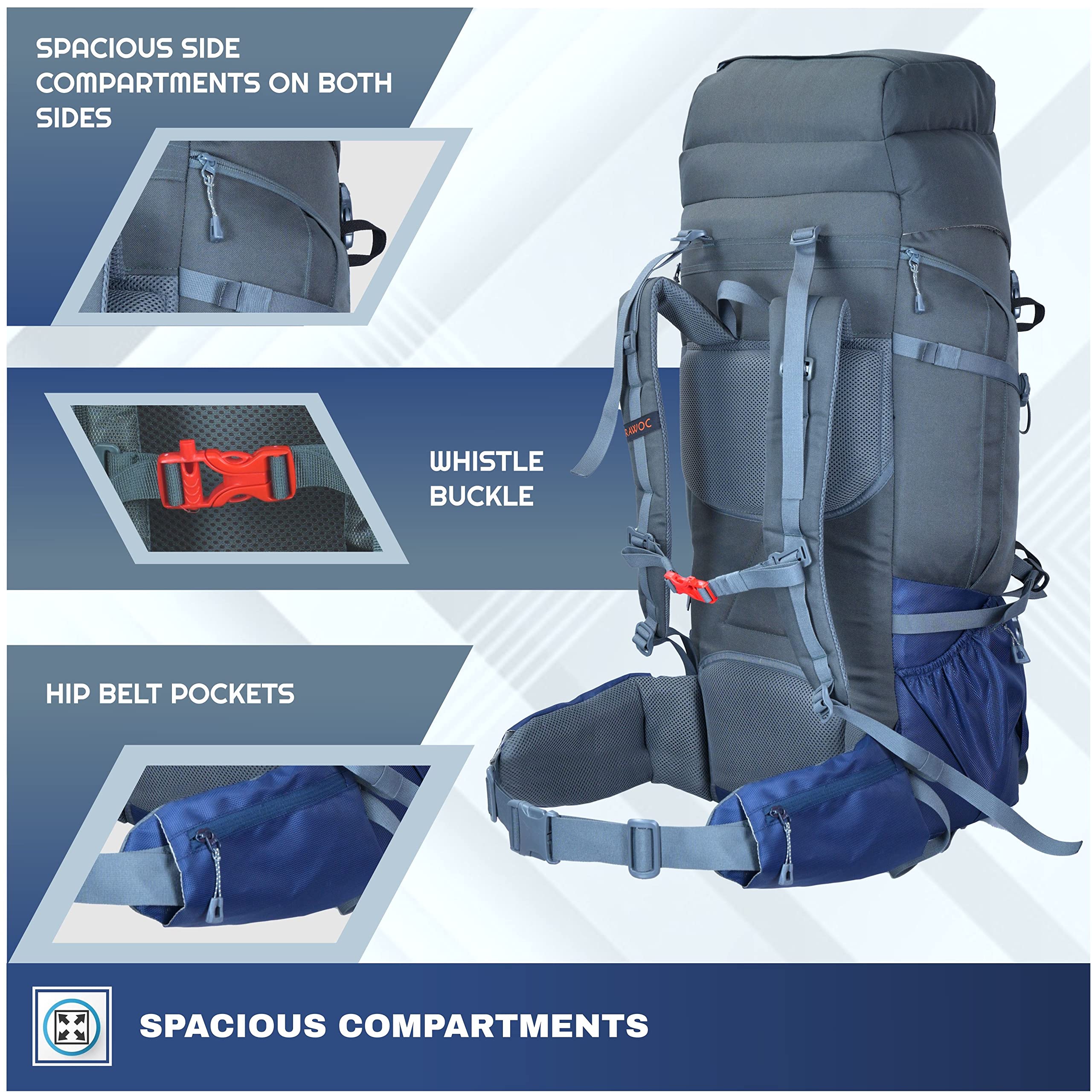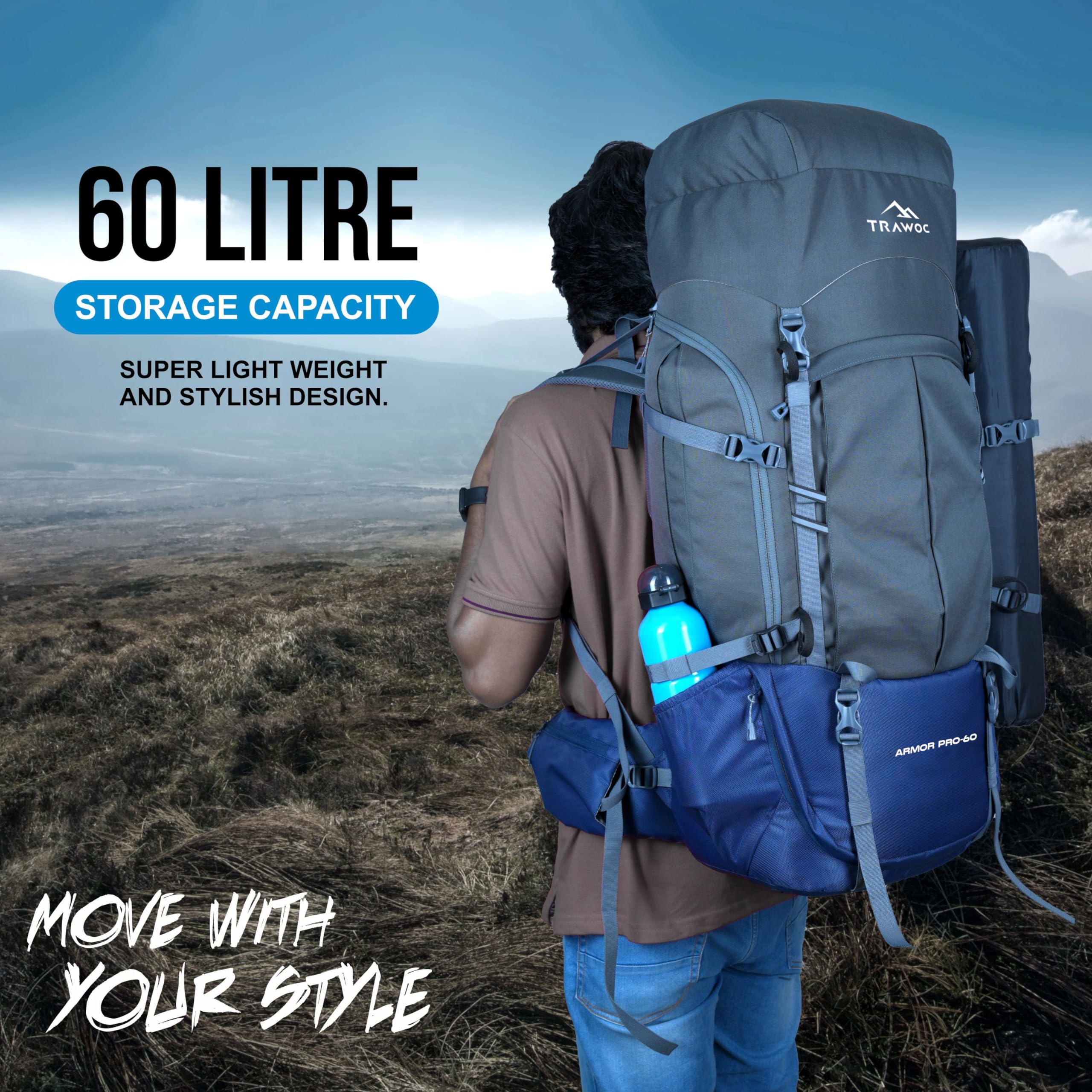 Armor Pro 60L Backpack for Men & Women with Water - Resistant Fabric - NavyBlue(clearance sale) - TRAWOC