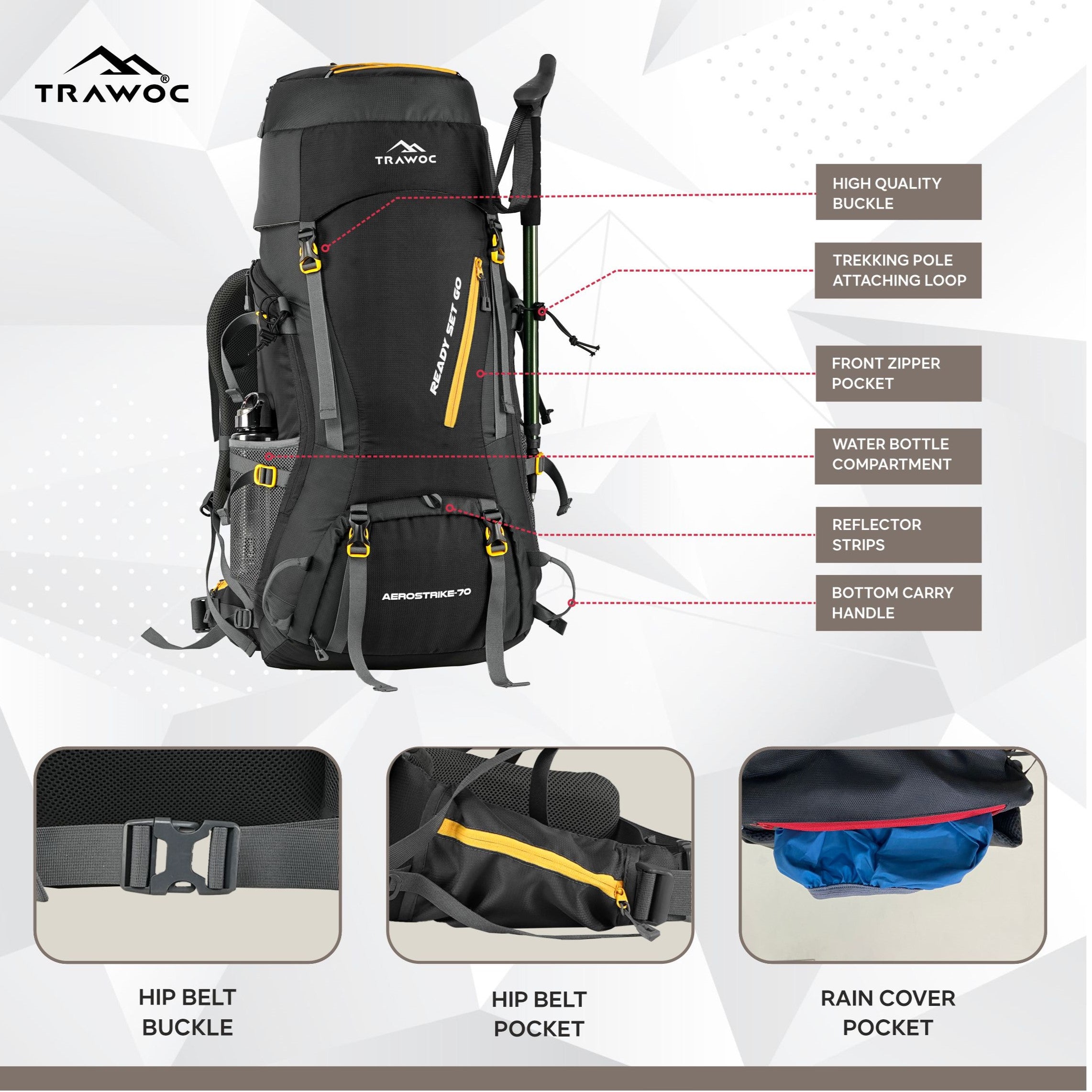 All TRAWOC products are made ofwater-resistant fabricand most of our models comes with arain coverfor full protection.