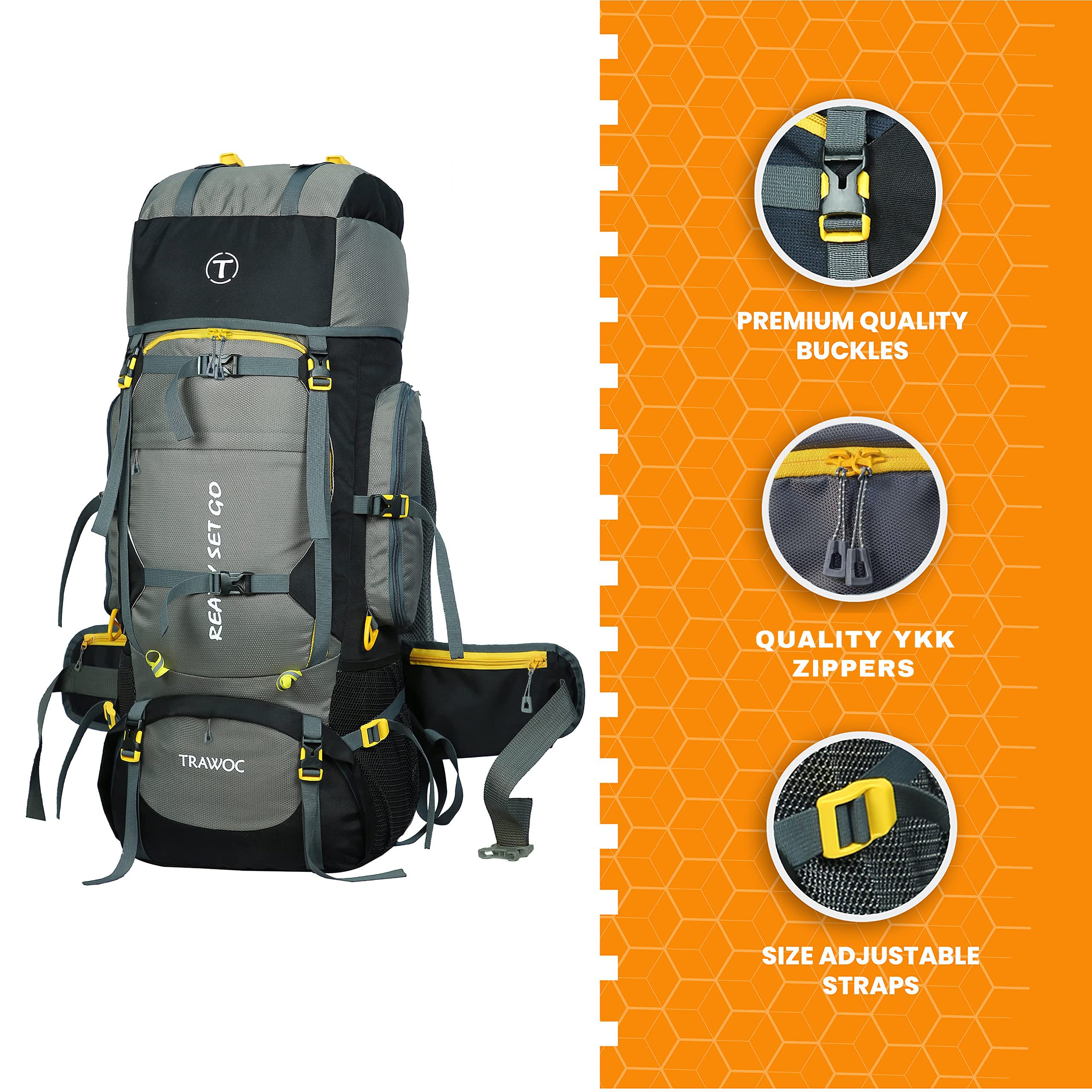 Spacious 80L Design: Large-capacity trekking backpack with top and front loading, ideal for camping, hiking, and travel. Includes multiple zip compartments and a dedicated laptop sleeve.