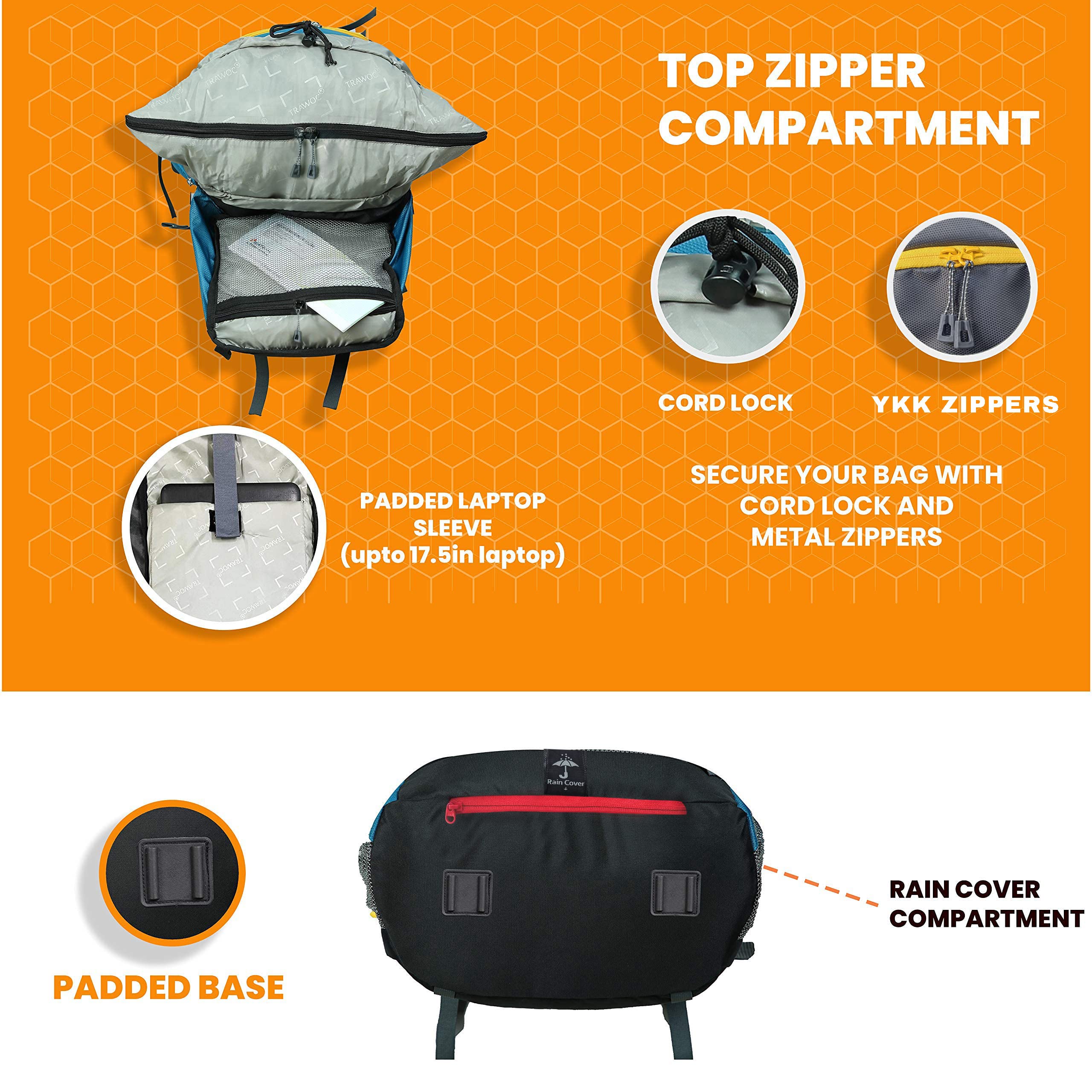 Spacious 80L Design: Large-capacity trekking backpack with top and front loading, ideal for camping, hiking, and travel. Includes multiple zip compartments and a dedicated laptop sleeve.