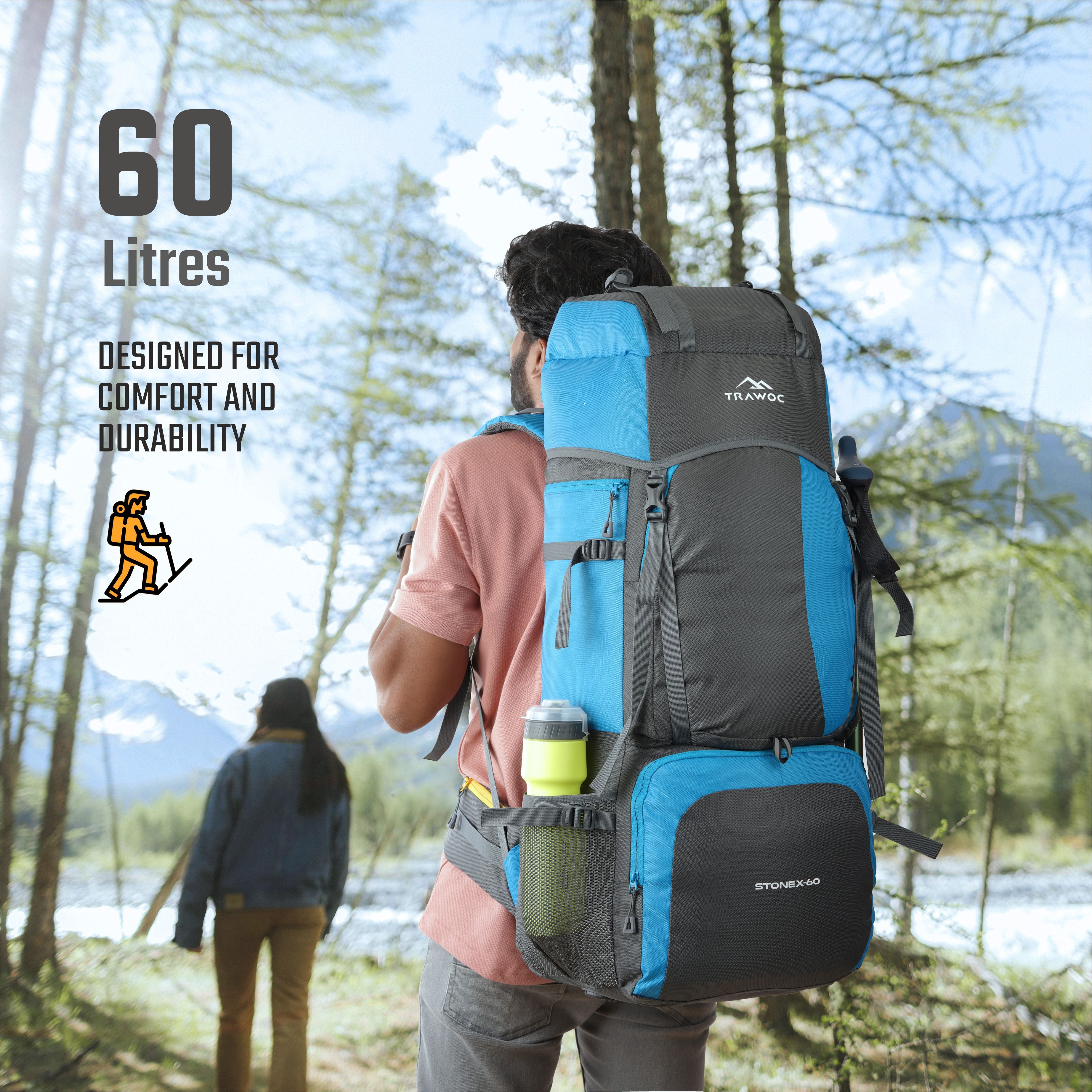 Stonex 60 L Backpack with Ergonomic Shoulder Straps & Lightweight Build, for men & women - skyblue - TRAWOC