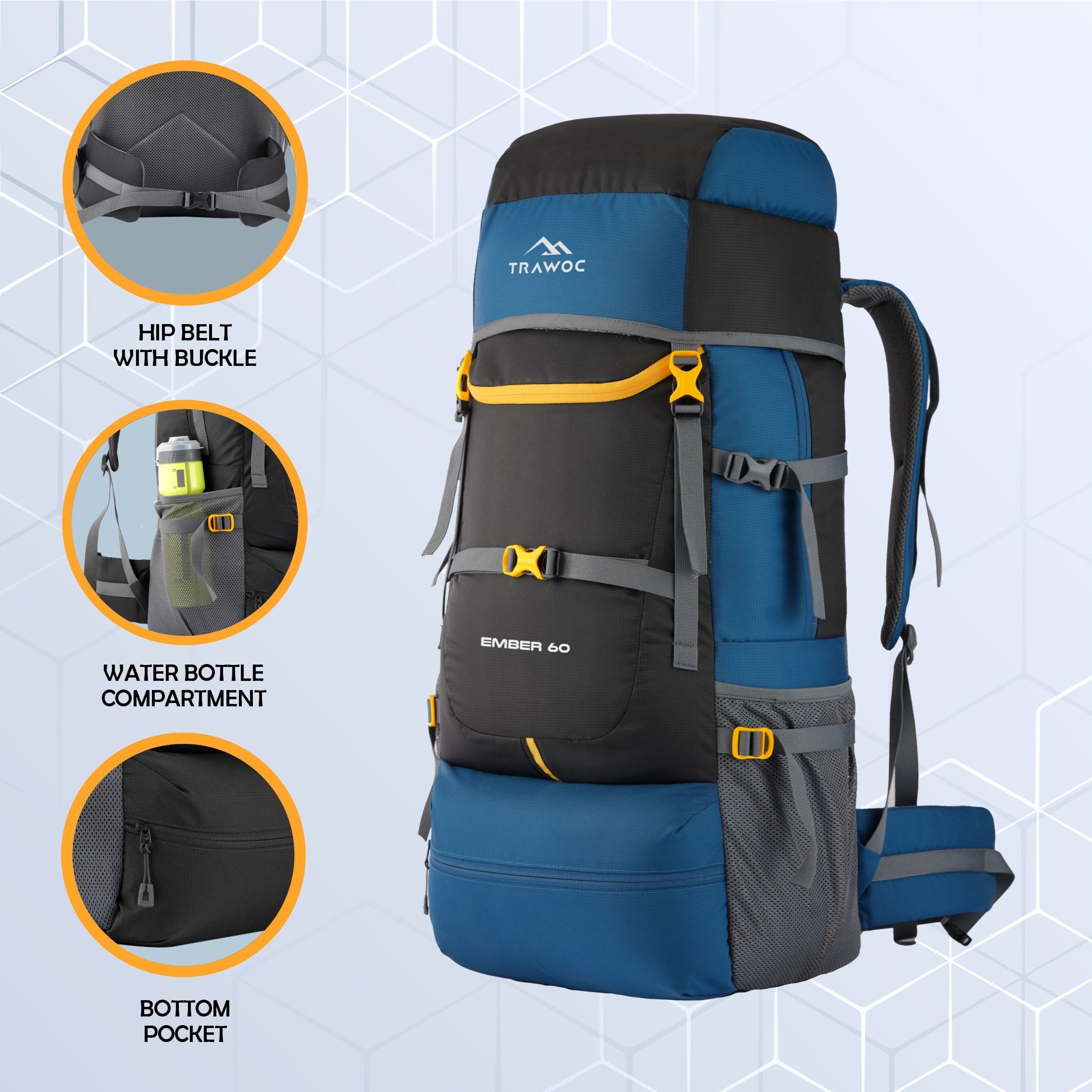 Spacious & Functional: 60L rucksack with multiple compartments and a laptop sleeve, ideal for trekking, camping, and long outdoor trips.