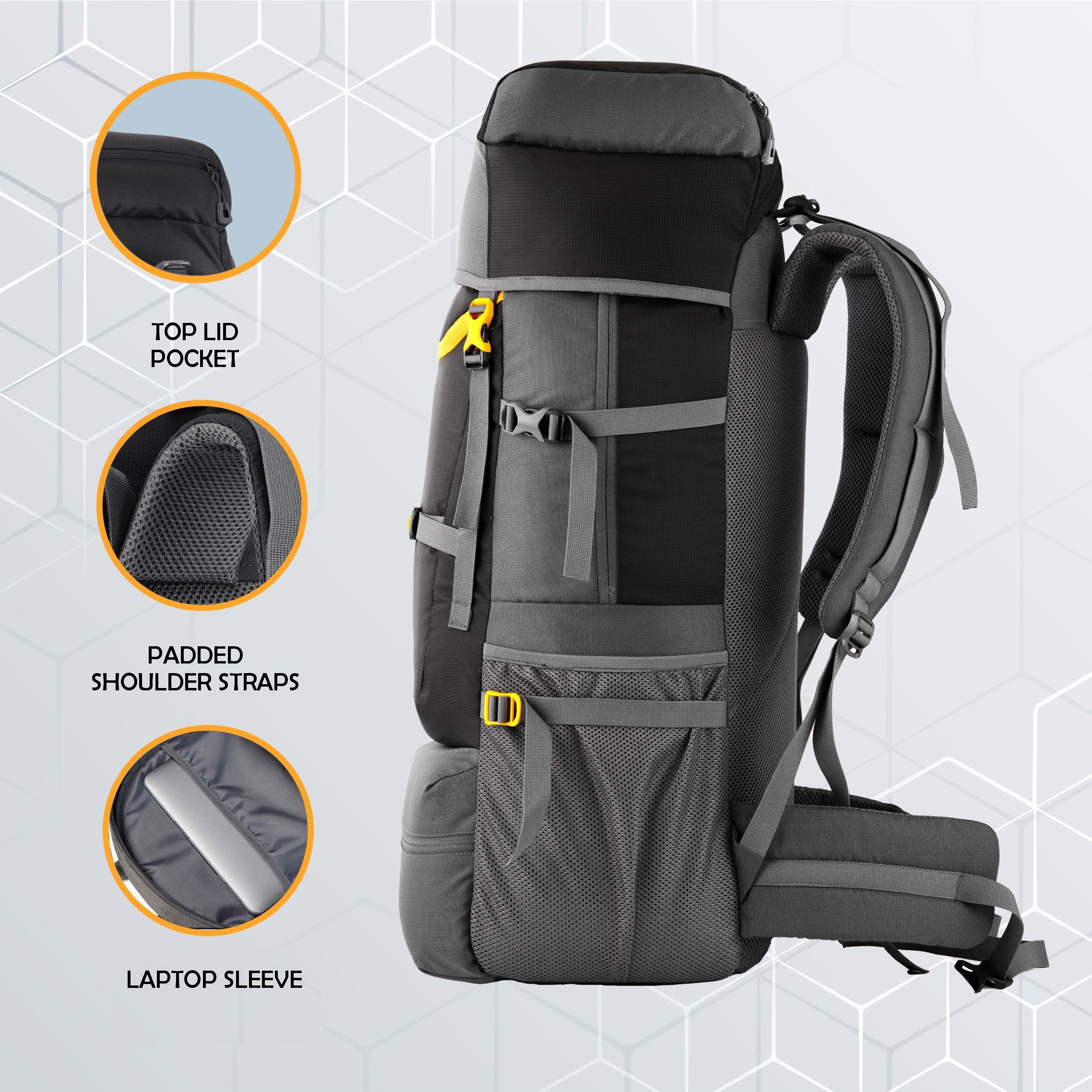Spacious & Functional: 60L rucksack with multiple compartments and a laptop sleeve, ideal for trekking, camping, and long outdoor trips.