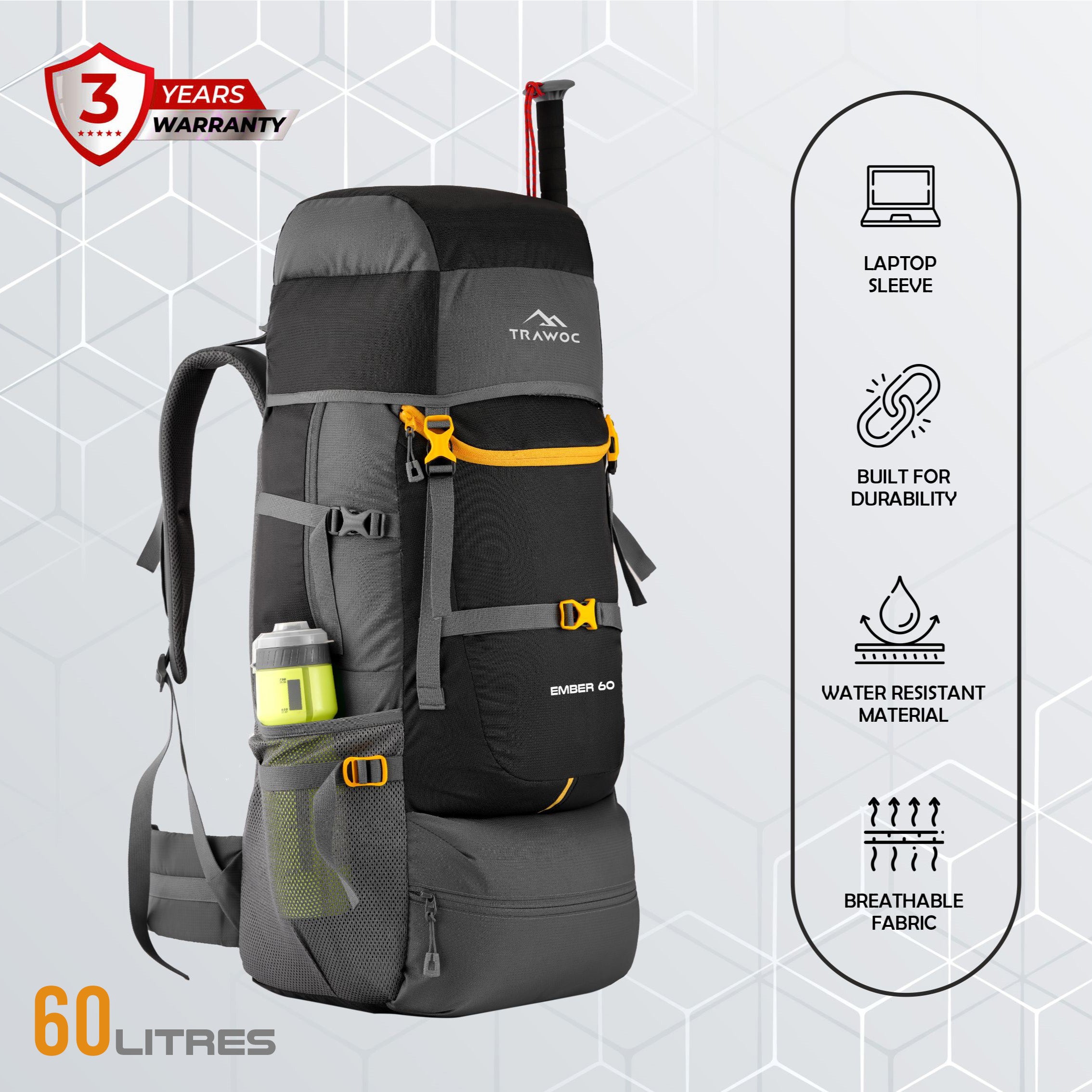 Spacious & Functional: 60L rucksack with multiple compartments and a laptop sleeve, ideal for trekking, camping, and long outdoor trips.