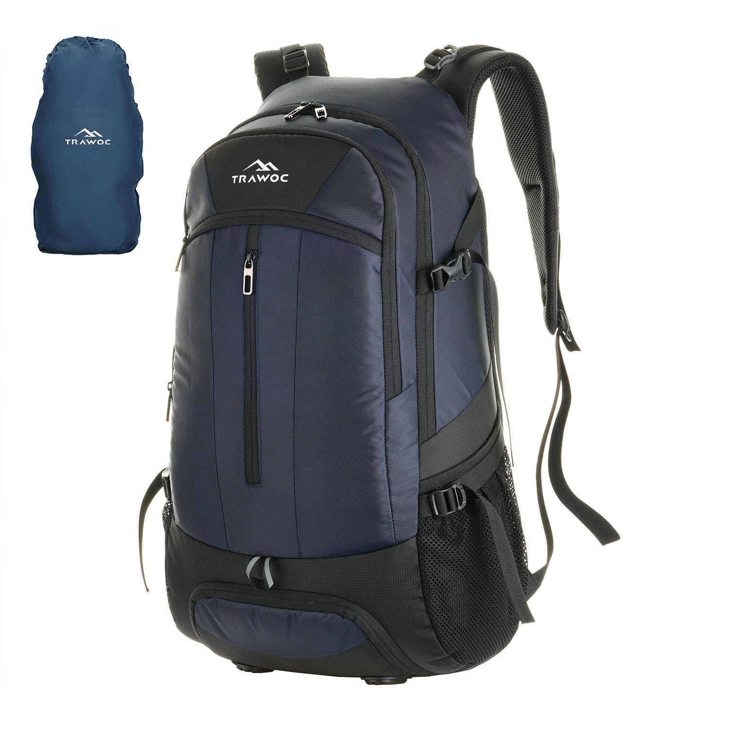 Introducing the TRAWOC travel backpack, a backpack for men and women designed for the modern traveller. Crafted with premium quality fabric, this stylish backpack is built to last. With a capacity of 40 litres and a size of 60 cm x 32 cm x 20 cm, it's the perfect travel bag for boys, men, and travelling bag for women for a 2-3 days trip. The main feature is the one large main compartment, ideal for storing your essentials. Accommodating a laptop of up to 15.6 inches, the padded laptop sleeve ensures your device is safe and secure. The 40l backpack also boasts three zipper pockets for additional storage. For those who carry water bottles, you'll appreciate the both side water bottle pockets. This 40 litre backpack is not just a big size bag, but a practical one too. The separate pocket for rain cover houses an integrated 100% water proof rain cover, ensuring your belongings stay dry. Comfort is key when it comes to any 40 litre backpack for men or backpack for women. The breathable mesh padded back panel and mesh padded shoulder strap provide exceptional comfort. The fully adjustable shoulder strap allows you to find the perfect fit. With premium quality YKK zippers, buckles and clips, this large backpack for men and women is made to withstand the rigors of travel. It's water resistant fabric further protects your belongings from the elements. This trekking / hiking backpack is not just for the outdoors. It makes a great laptop bag for the office, too. With a 3 year manufacturer warranty, you can trust in the quality and durability of TRAWOC backpacks. Whether you're a tourist on a weekend trip, or need a reliable daypack for daily commutes, this travel backpack is an ideal choice. Its stylish design and functional features make it more than just a backpack bag, but a travel companion that you can rely on.