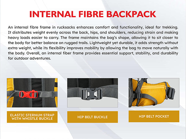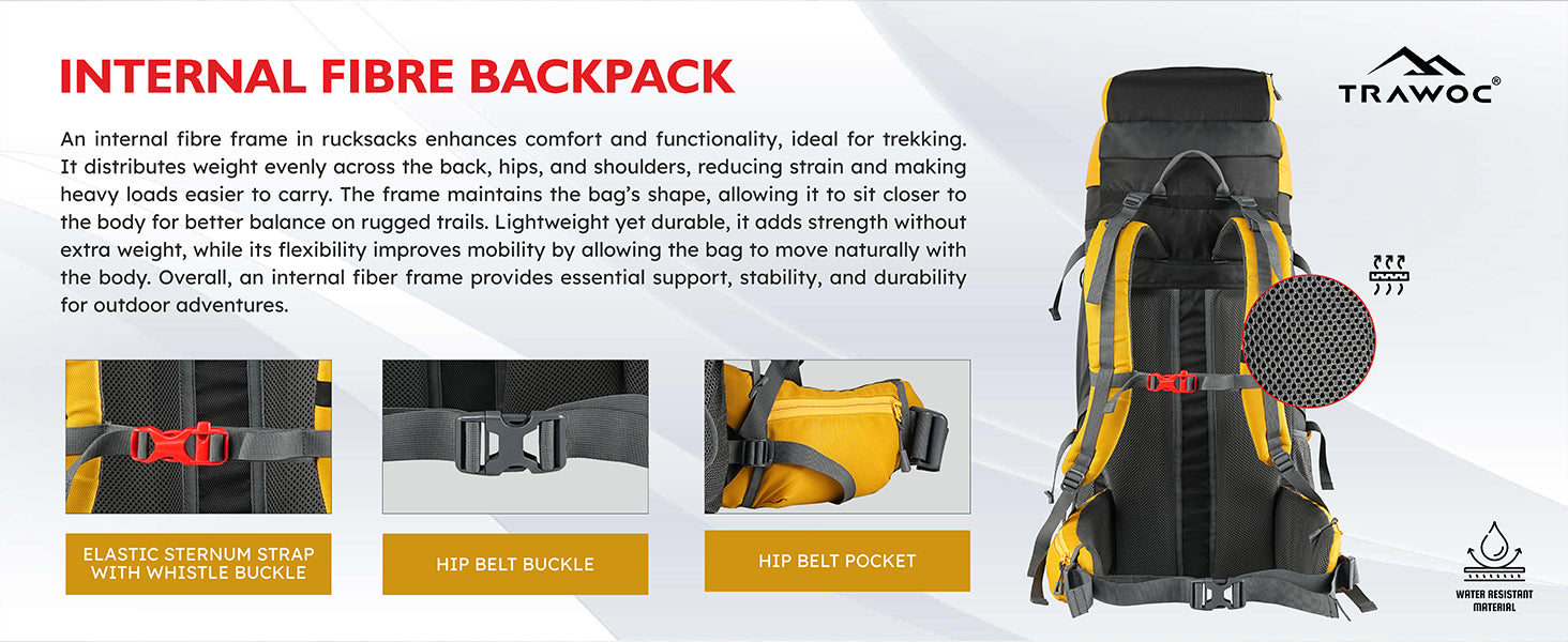 Enhanced Comfort & Support: Equipped with an internal fiber frame, padded shoulder straps, and breathable back support for balanced weight distribution during long journeys.