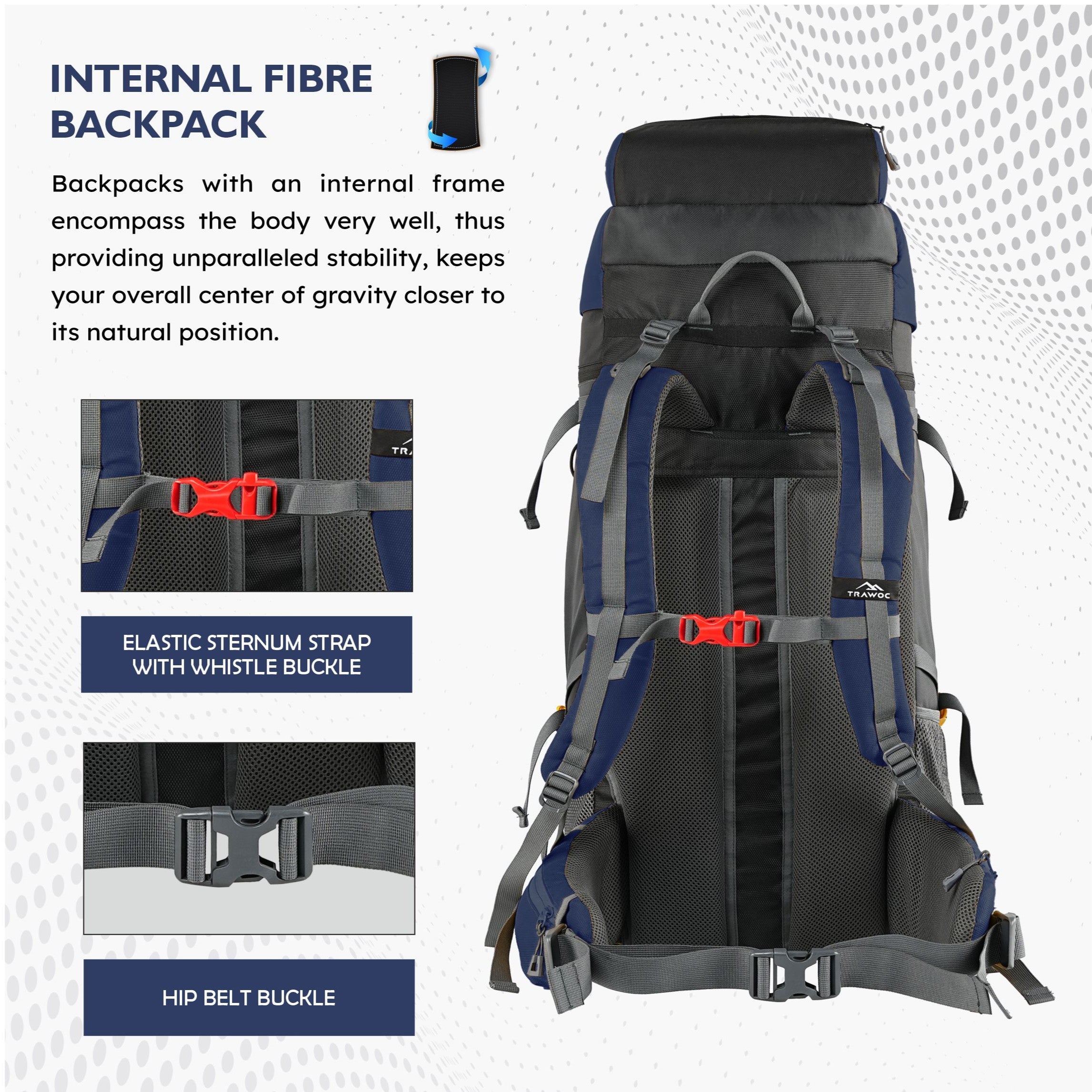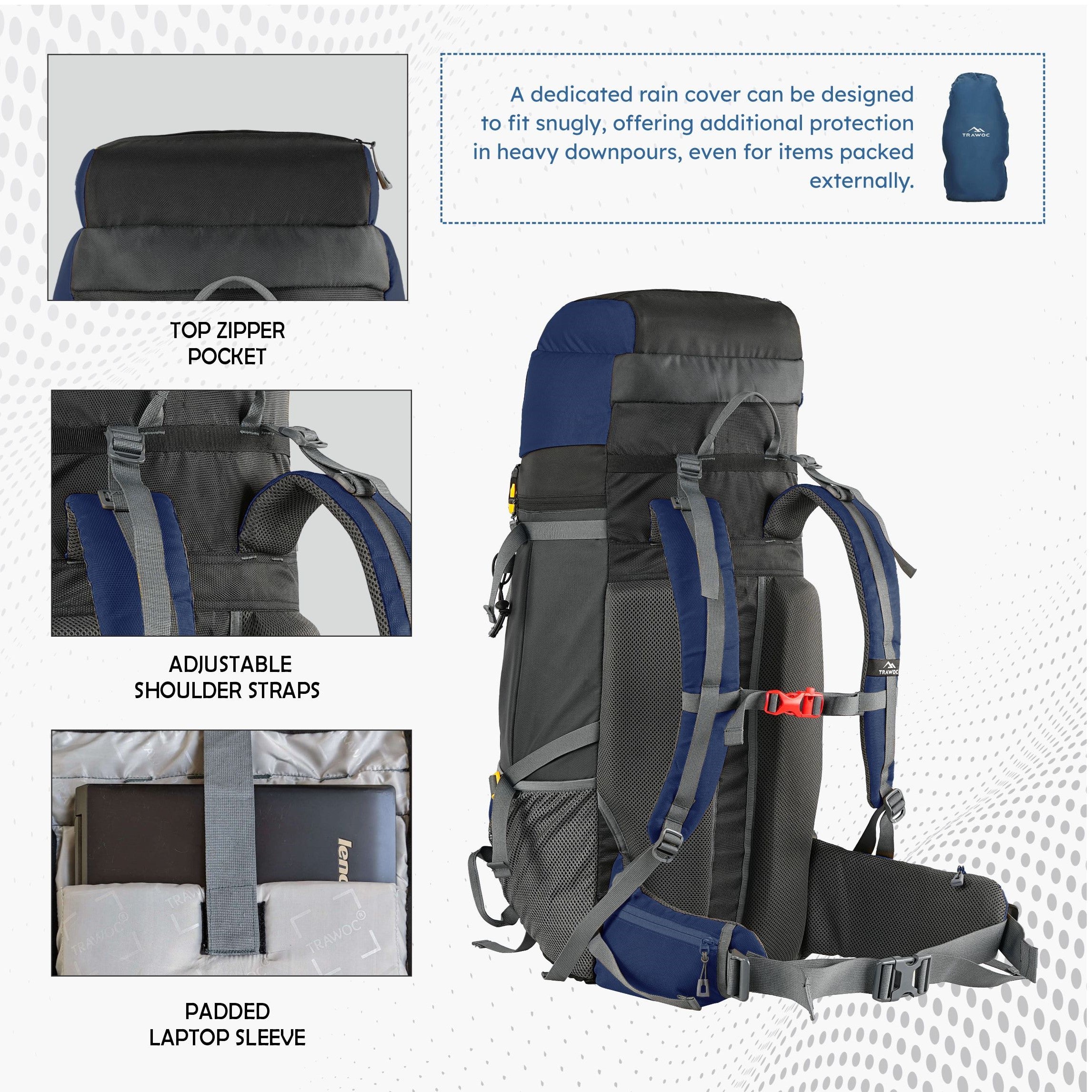 Terrabound 60 L Rucksack featuring Shoe Compartment & Durable Zippers – NavyBlue(clearance sale) - TRAWOC