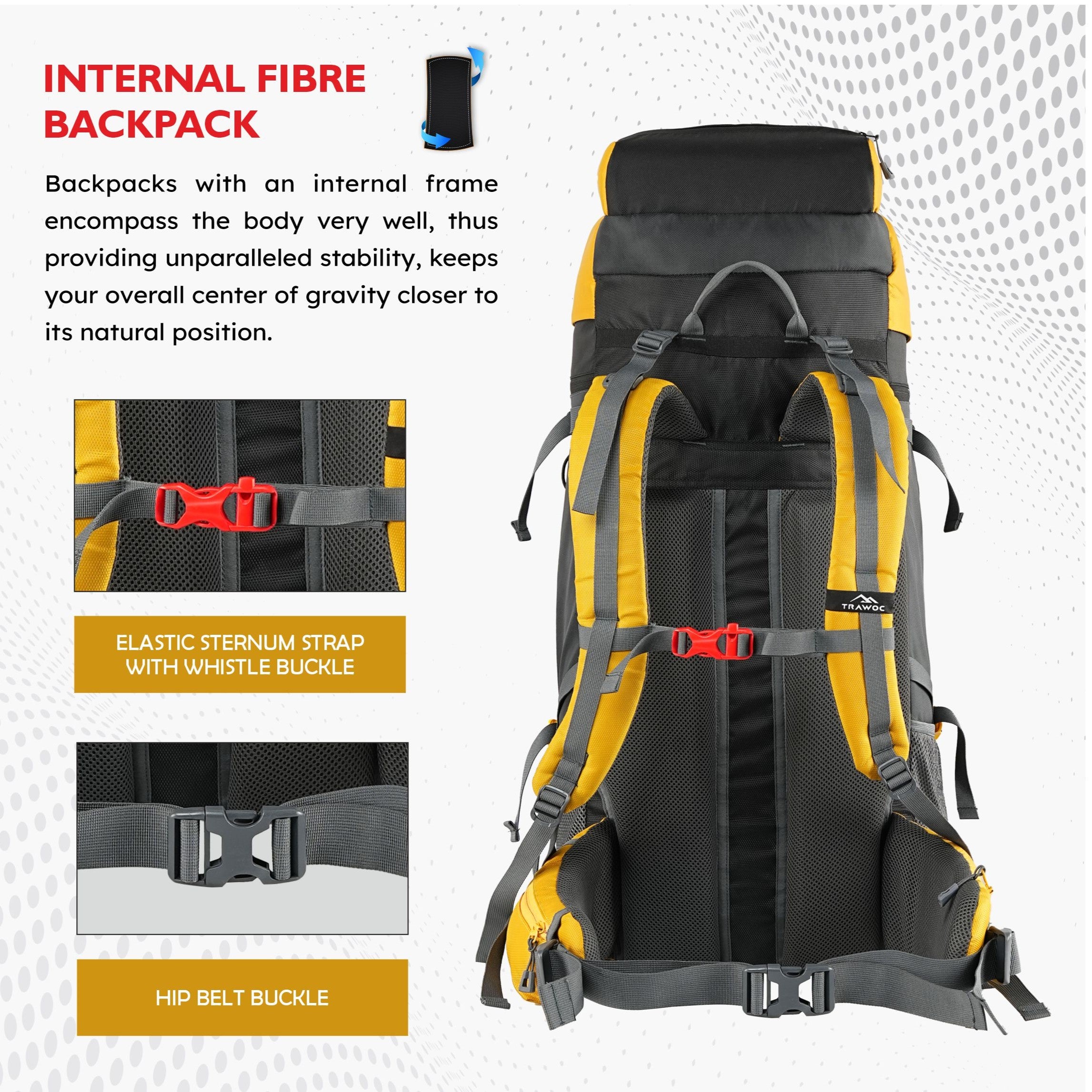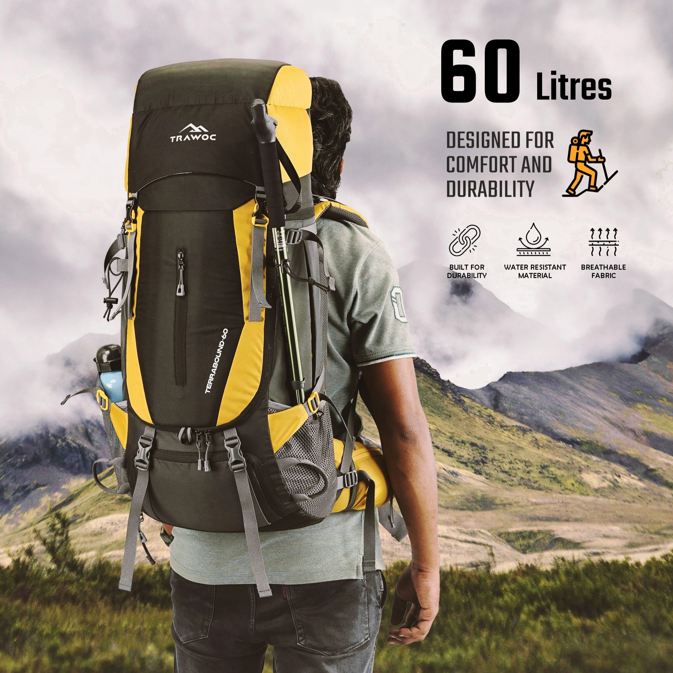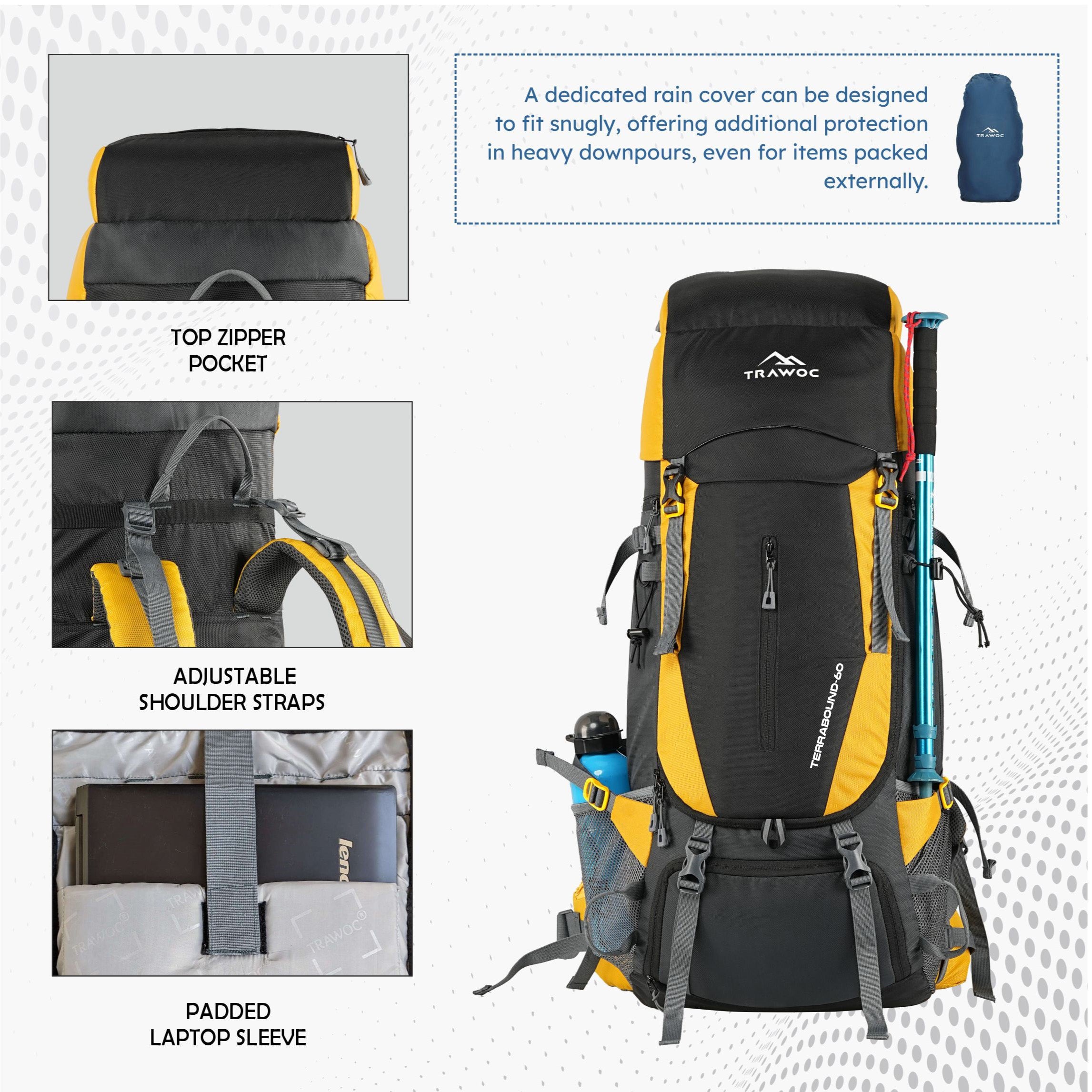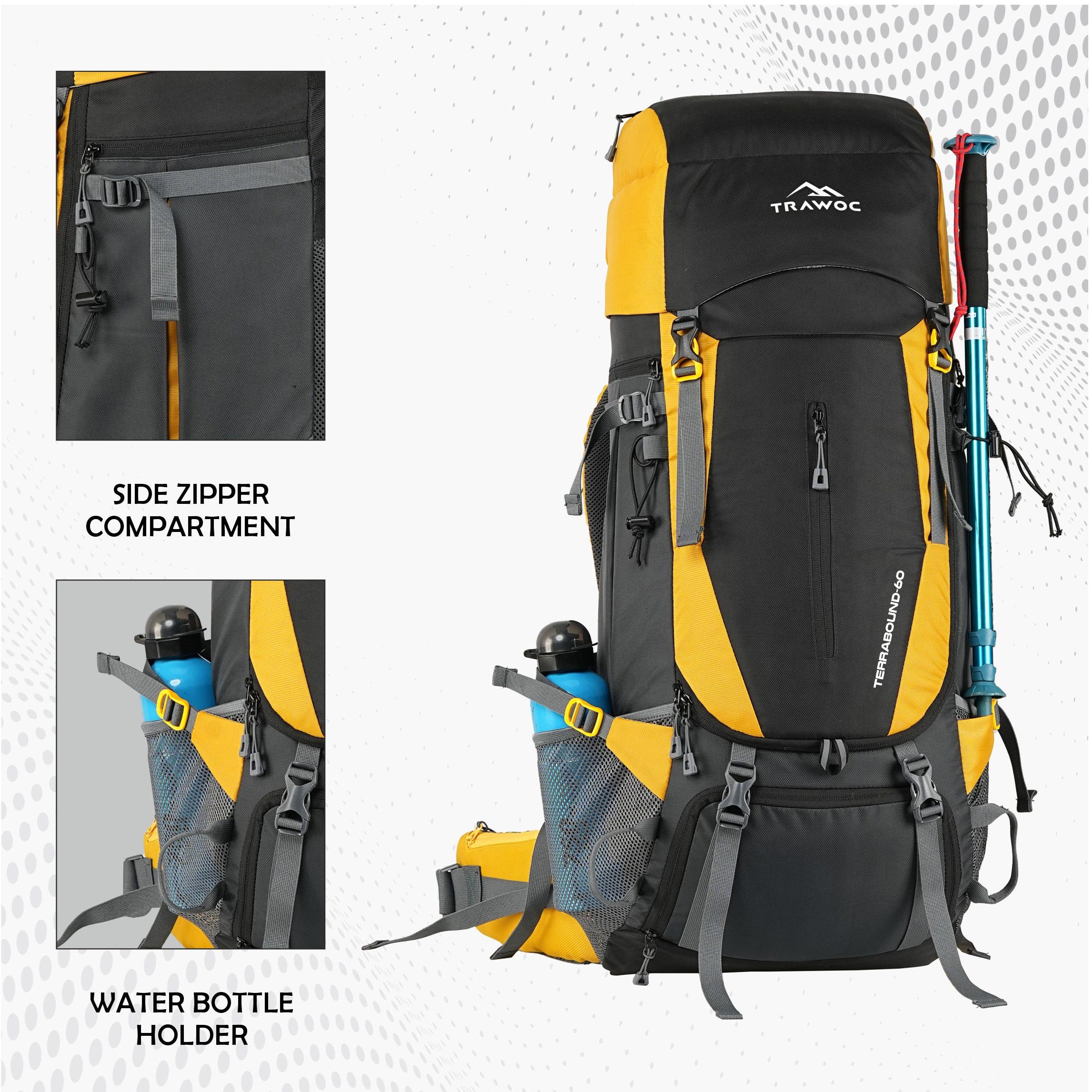 Terrabound 60 L Rucksack featuring Shoe Compartment & Durable Zippers – Yellow - TRAWOC