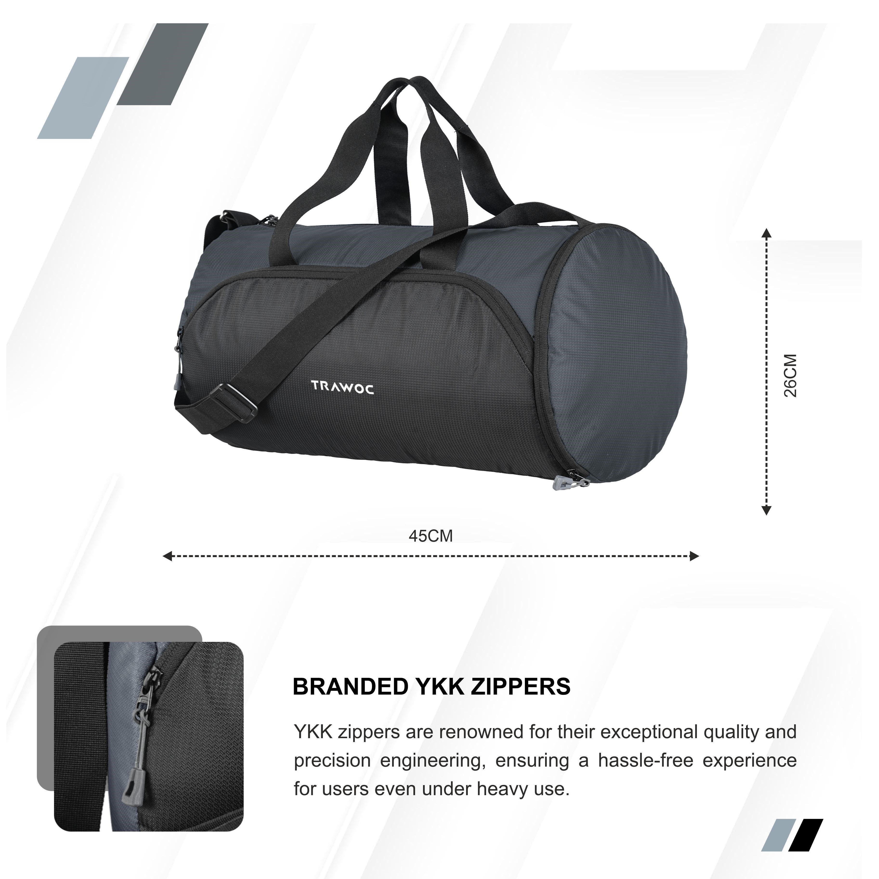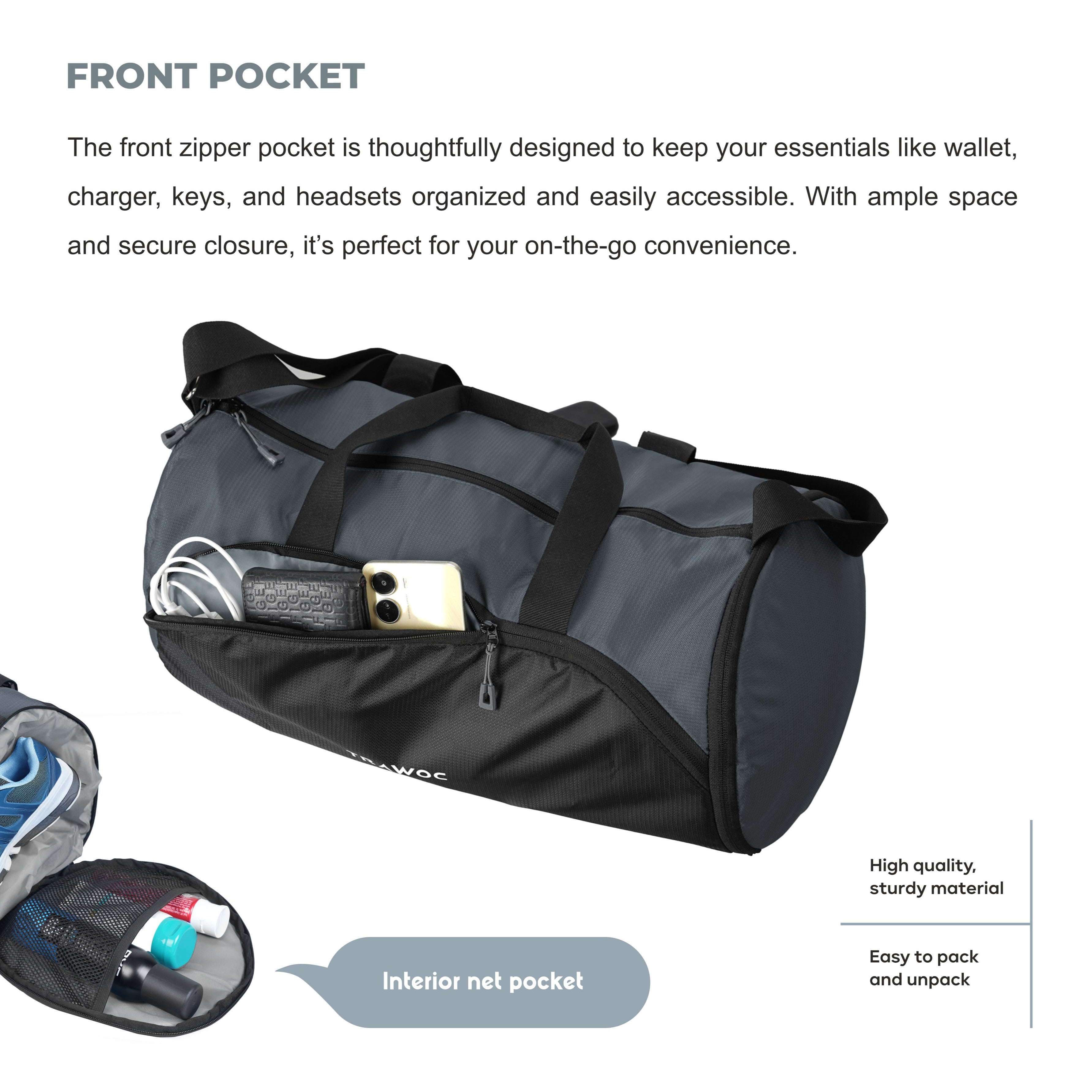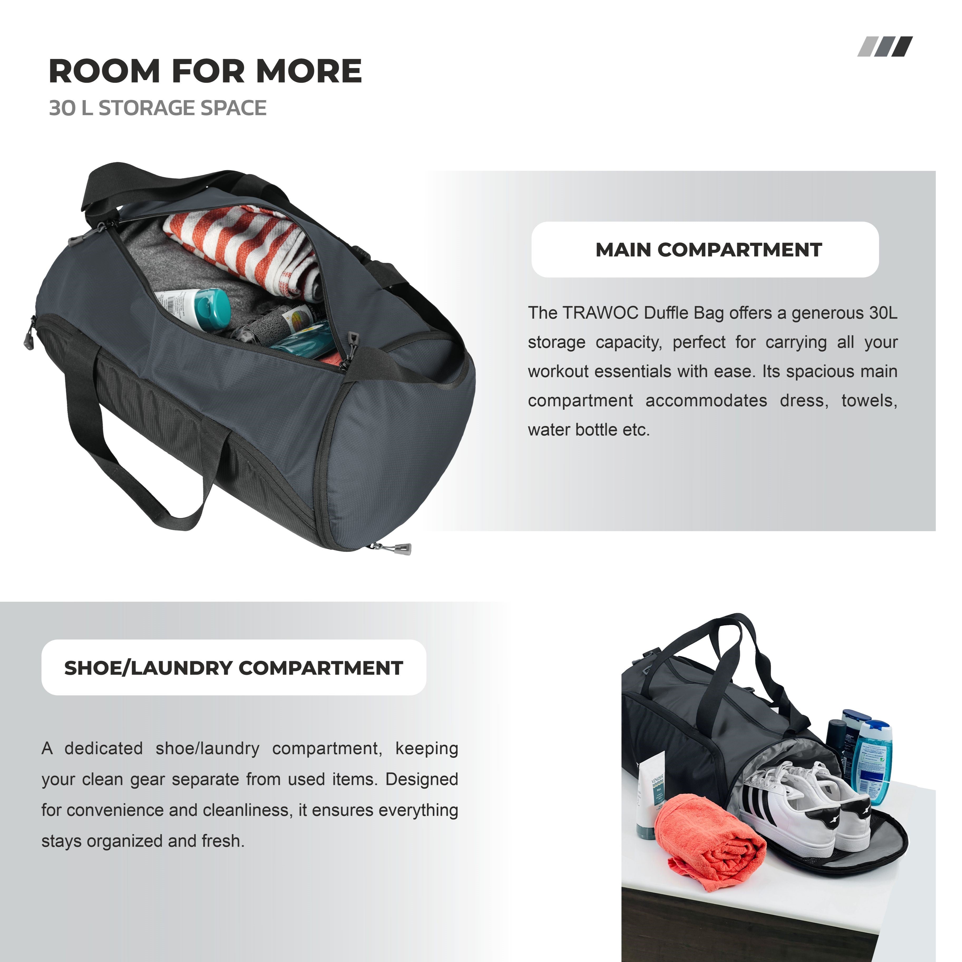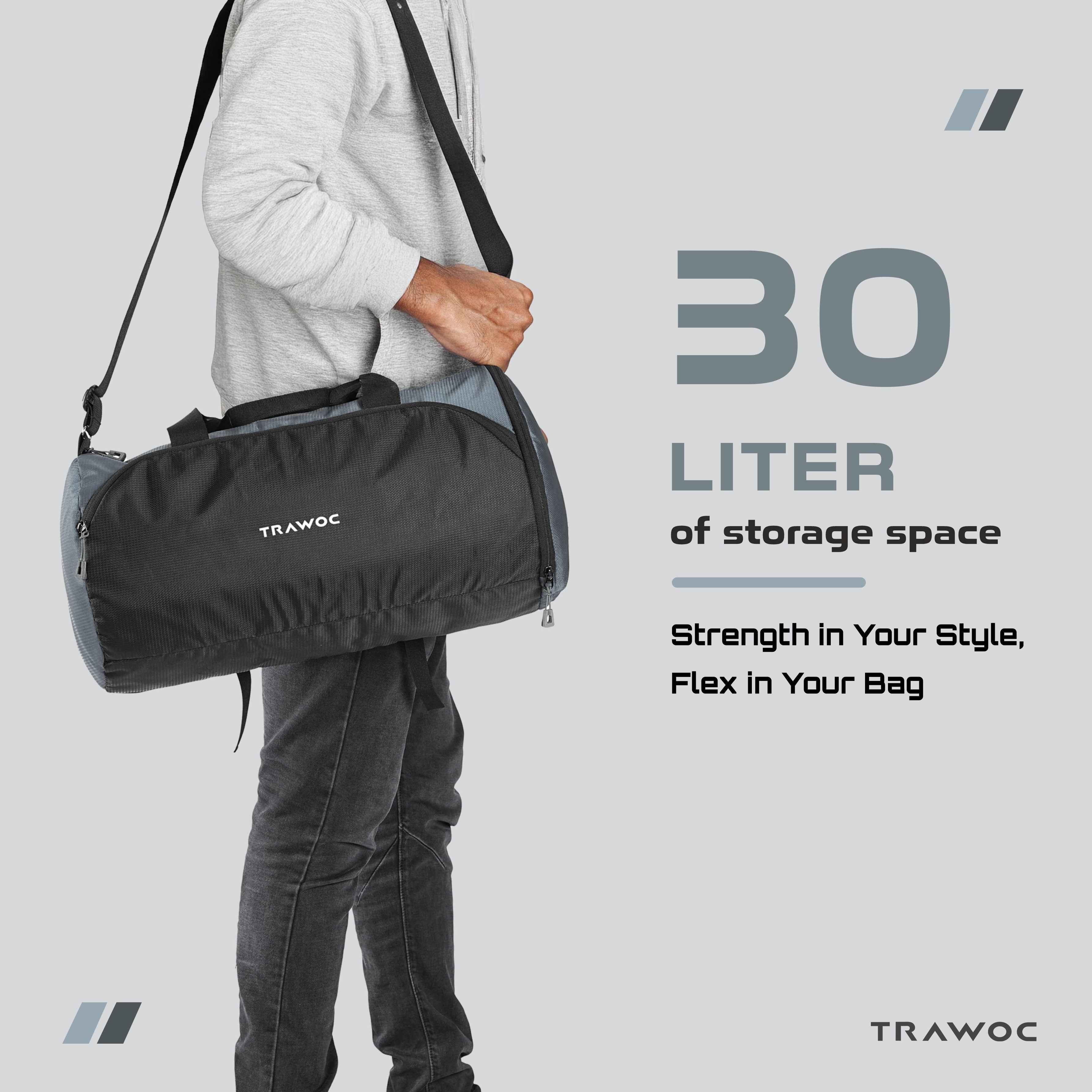 TMPB02 - 30L Gym, Sports & Travel Duffle , Unisex Duffel Bag with Shoe Compartment - Grey - TRAWOC