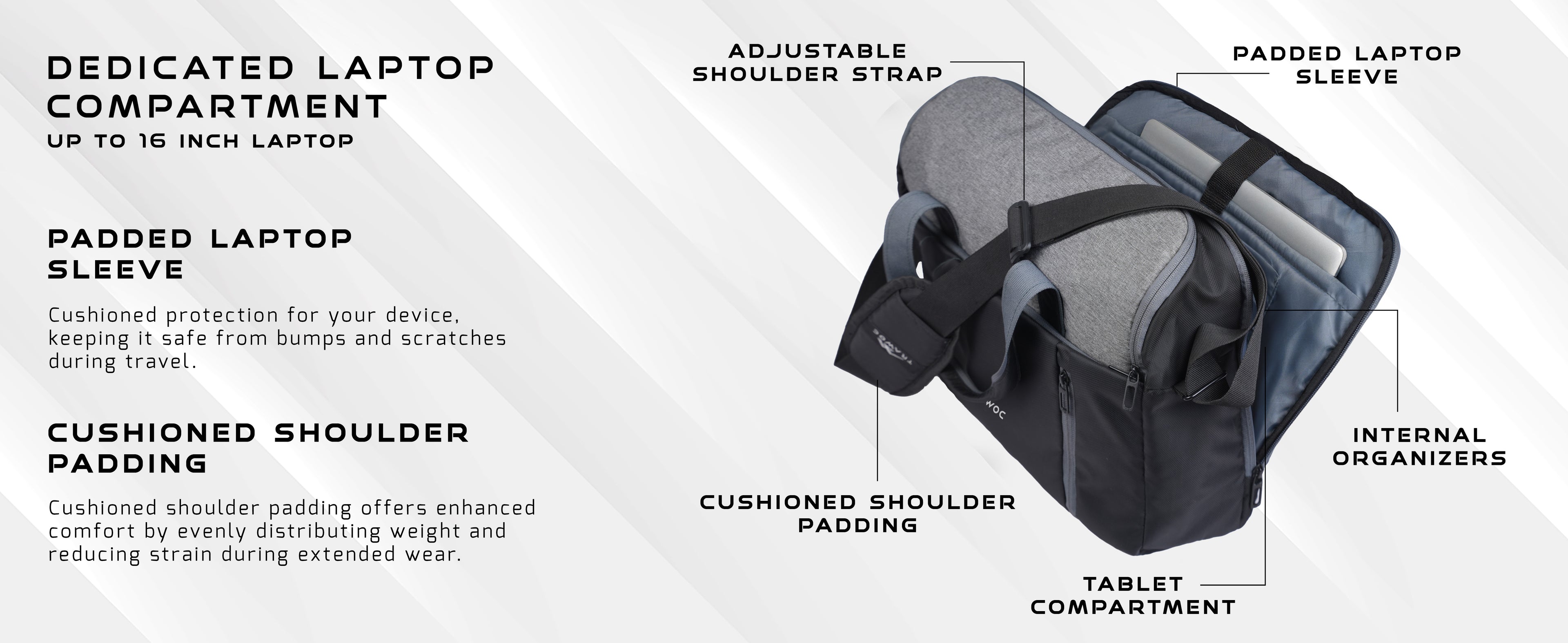 Device Protection: Padded laptop and tablet sleeves ensure your electronics stay safe from shocks and scratches.