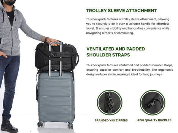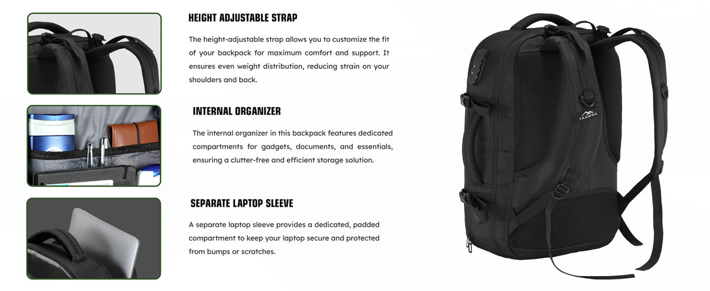Travel-Friendly & Weather-Resistant: Features a built-in USB charging port, water-resistant fabric, side handle, and trolley sleeve for effortless mobility.