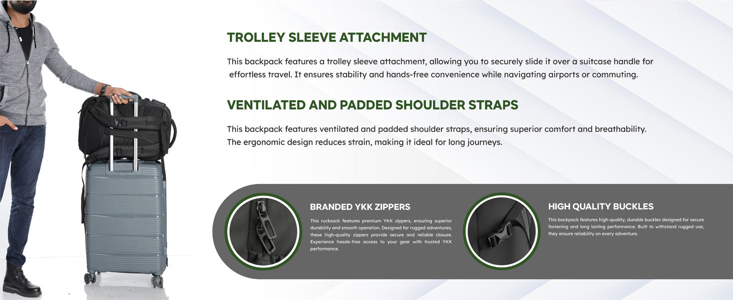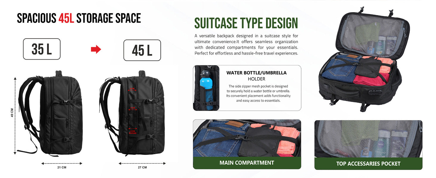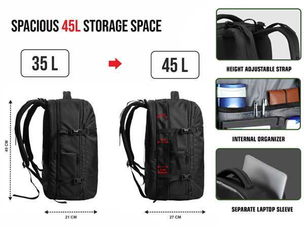 Expandable Storage: Expandable main compartment increases packing space for longer trips without compromising organization.