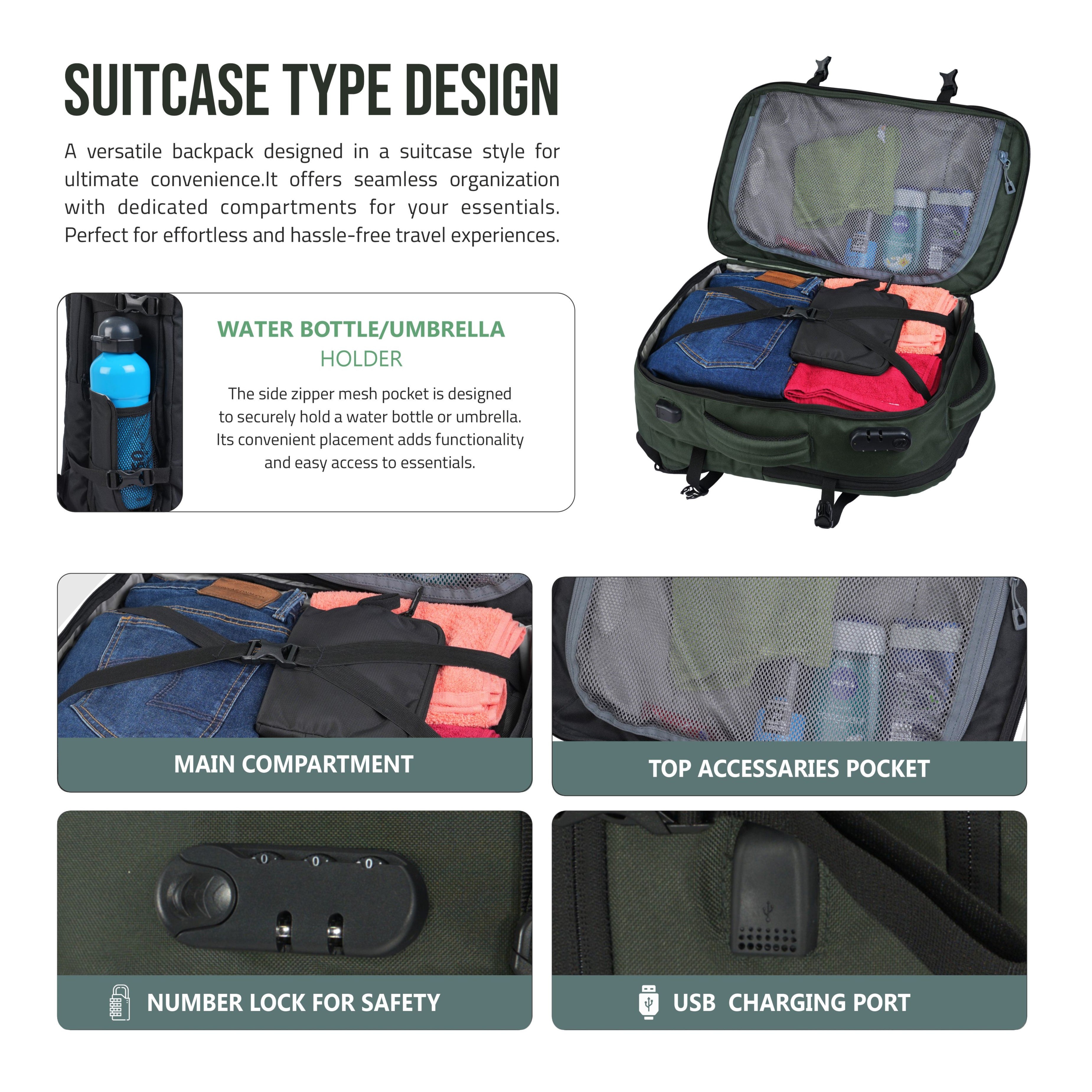 Smart & Secure Design: Front-open backpack with suitcase-style access and an integrated number lock for easy packing and added travel security.