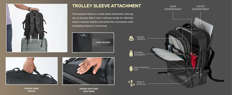 Reflective & Travel-Friendly Design: Features reflective detailing for night safety, along with padded handles and a trolley sleeve for easy travel and daily use.