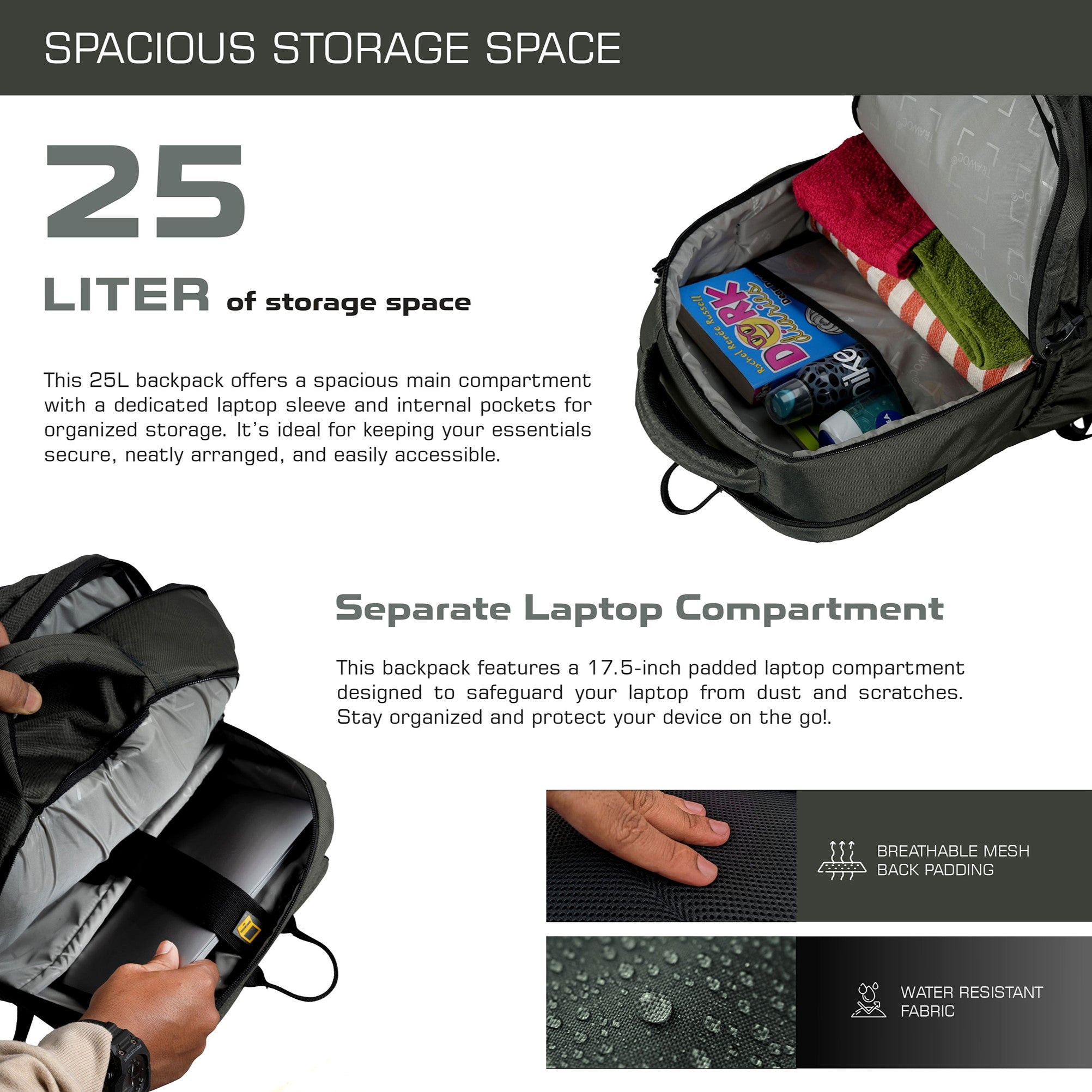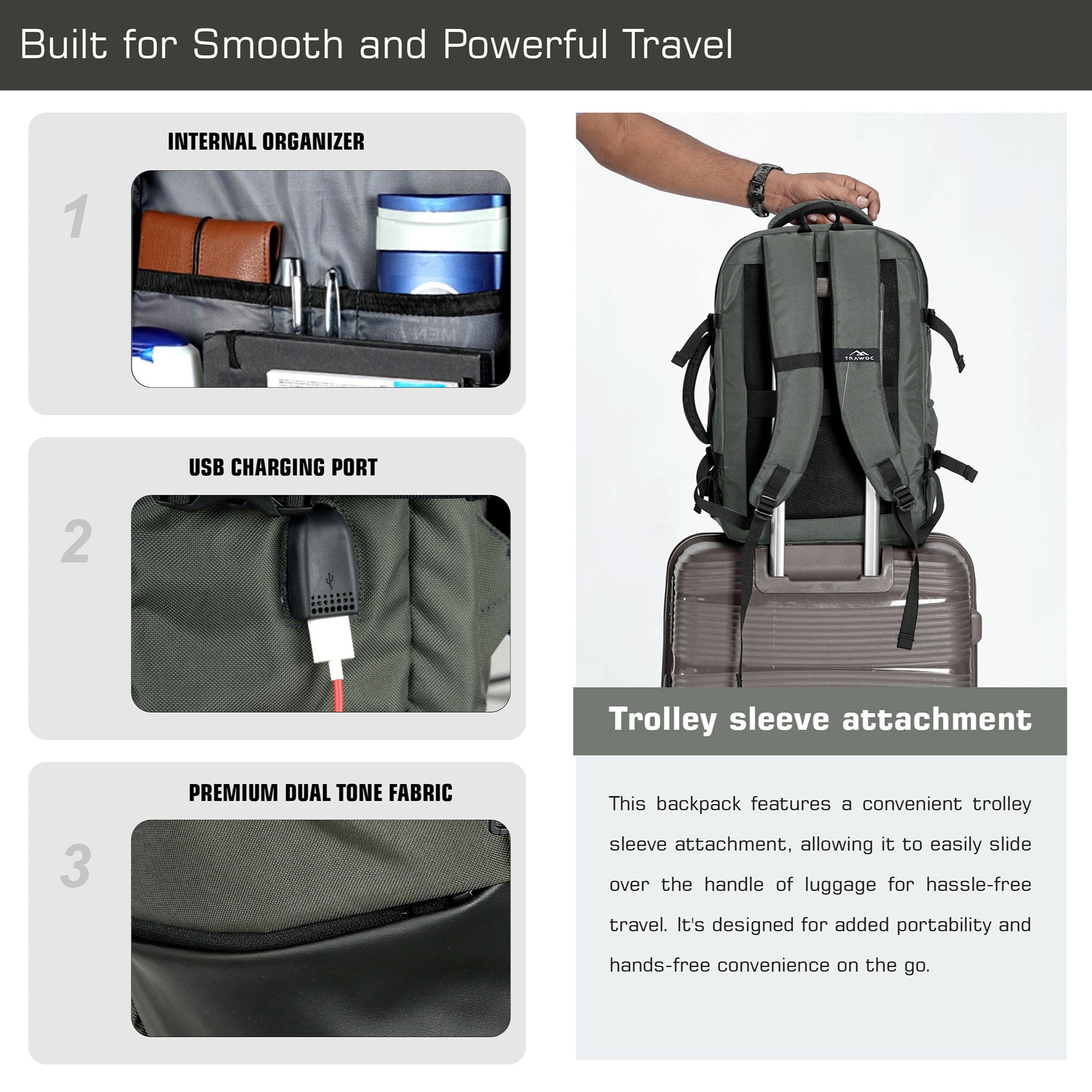 TPB02 - 25L Laptop Backpack with USB Charging Port for Men & Women-Uniform green