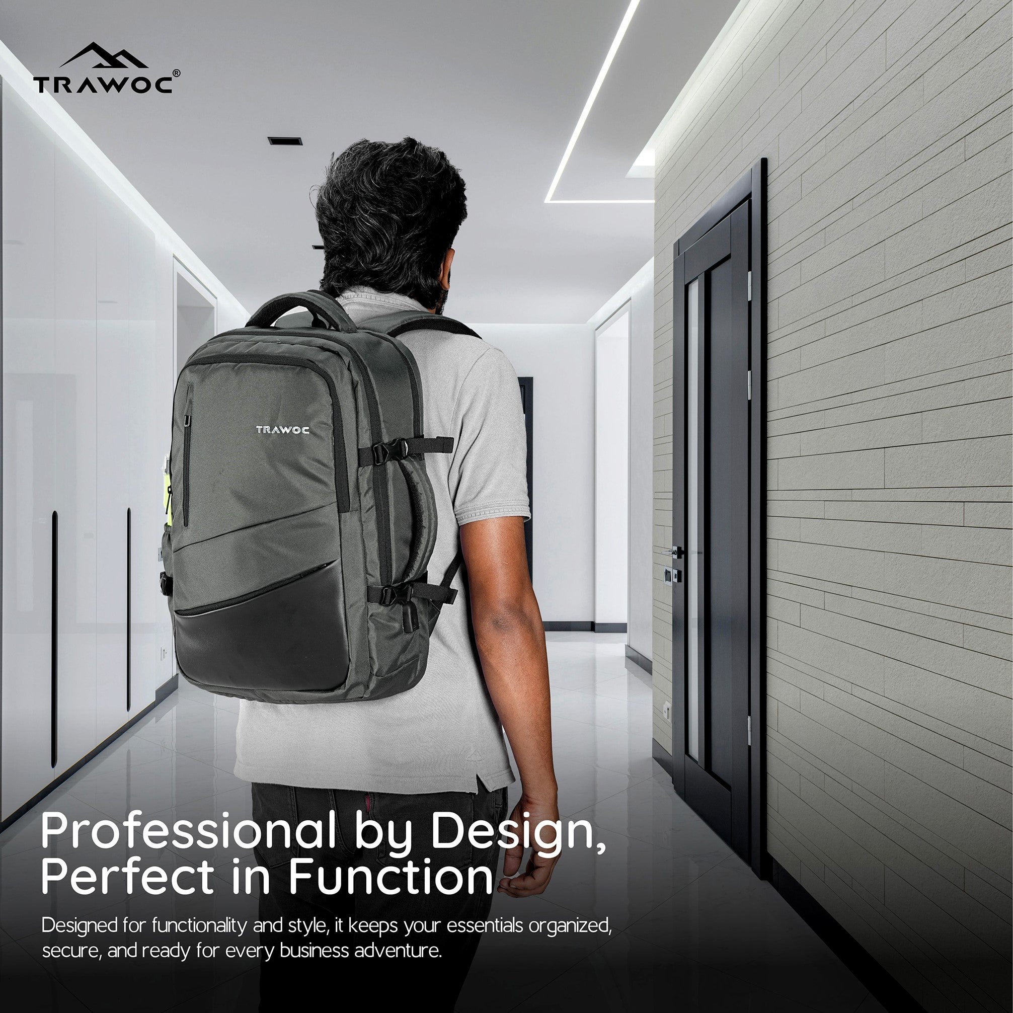 TPB02 - 25L Laptop Backpack with USB Charging Port for Men & Women - Uniform green - TRAWOC