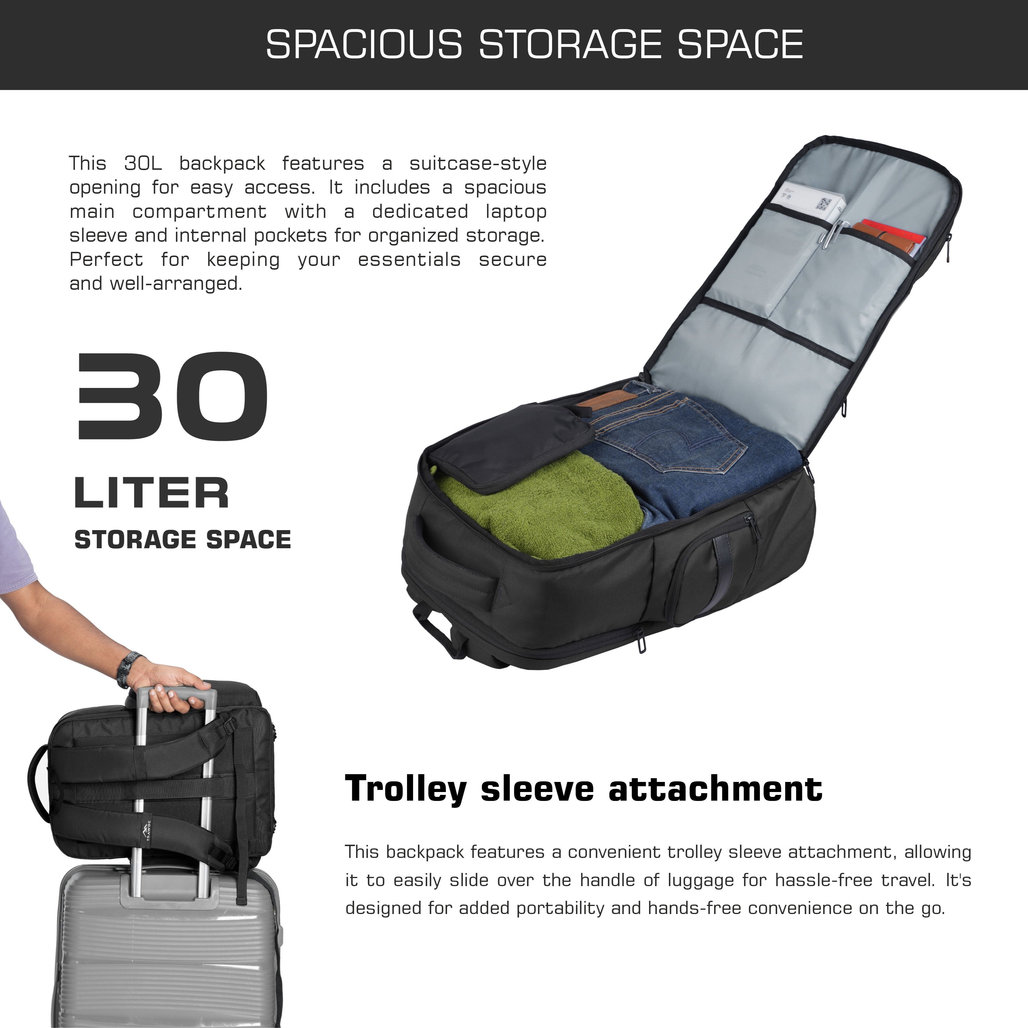 Spacious 30L Capacity with Suitcase-Style Opening: Designed for easy organization, this 30-liter backpack opens like a suitcase for quick packing and effortless access—ideal for office, college, and travel use.