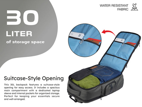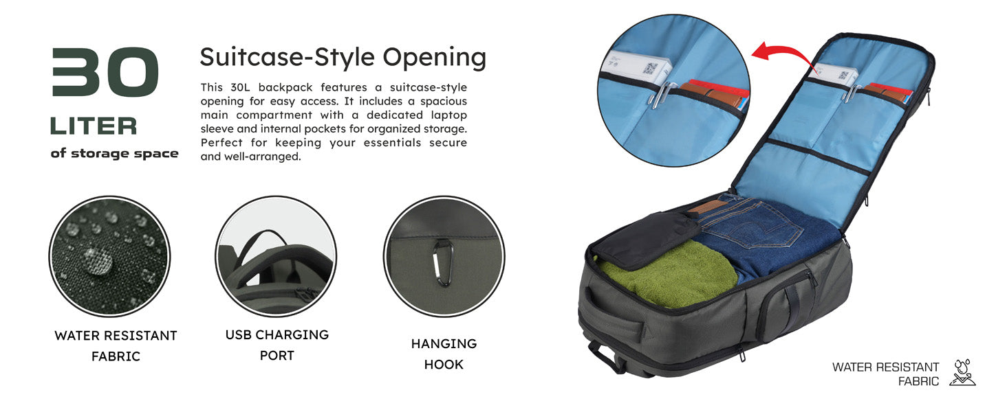 Spacious 30L Capacity with Suitcase-Style Opening: Designed for easy organization, this 30-liter backpack opens like a suitcase for quick packing and effortless access—ideal for office, college, and travel use.