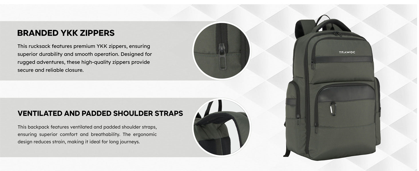 Durable & Travel-Ready Build: Made from premium water-resistant fabric with Genuine YKK zippers, breathable mesh padding, and a trolley strap for smooth mobility and long-lasting use.
