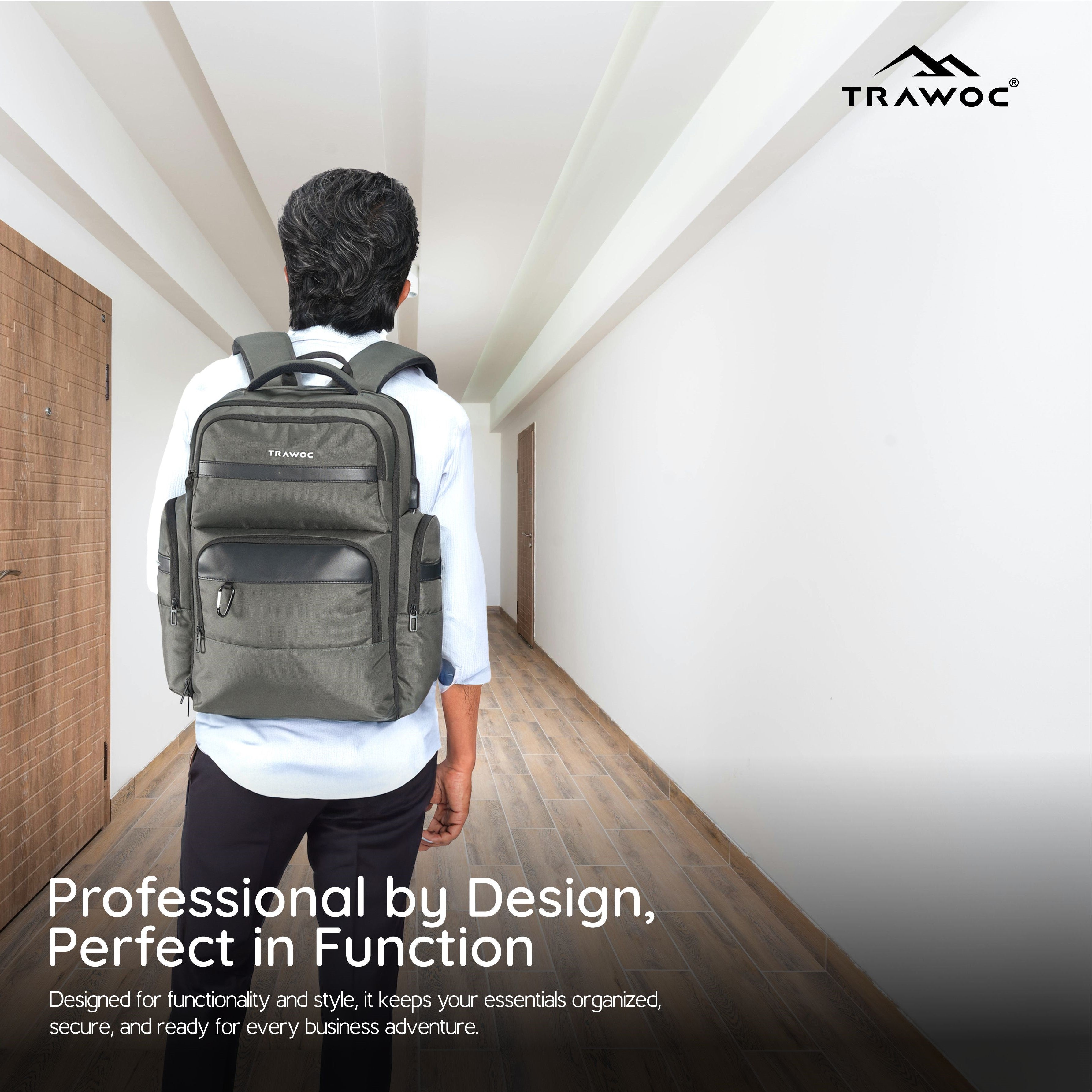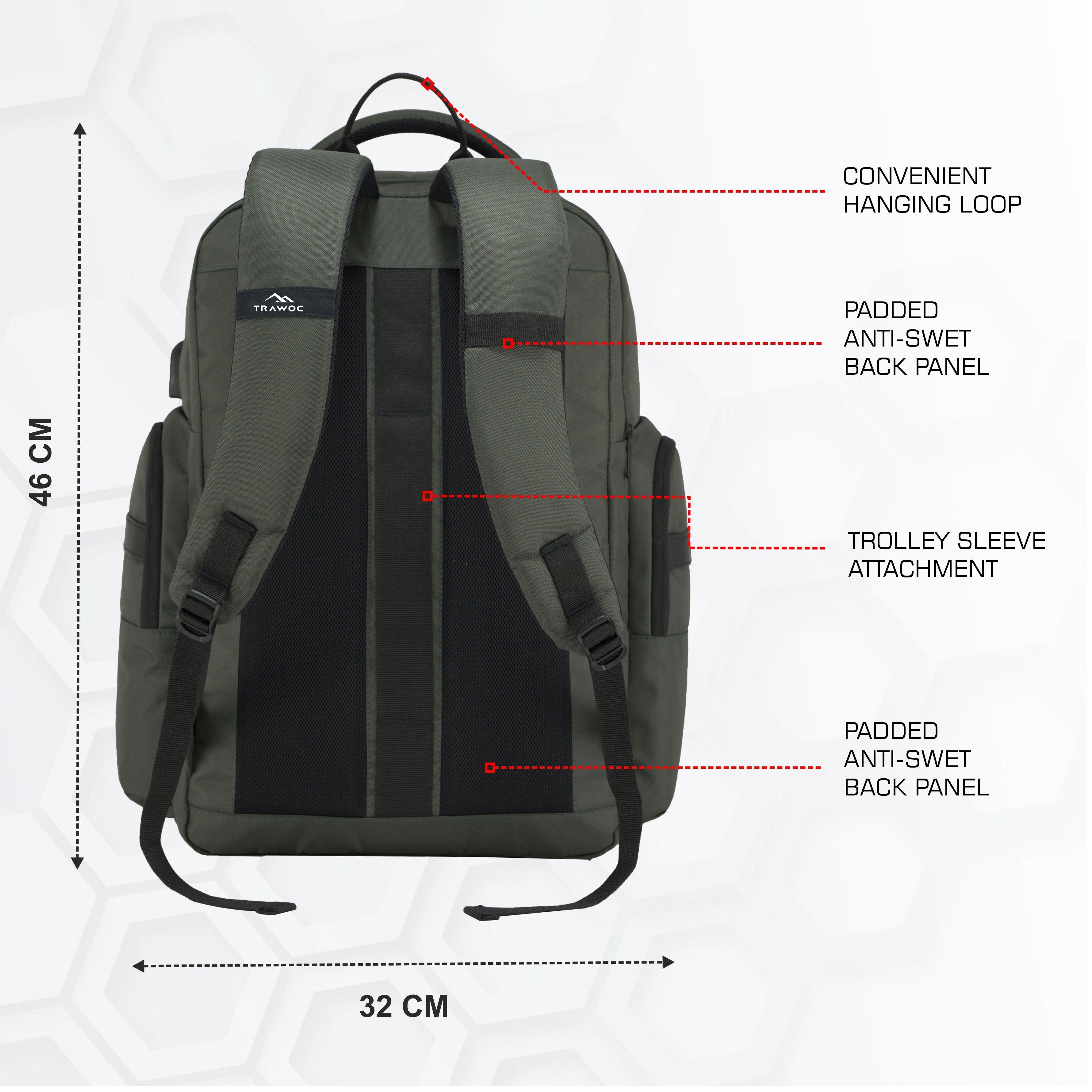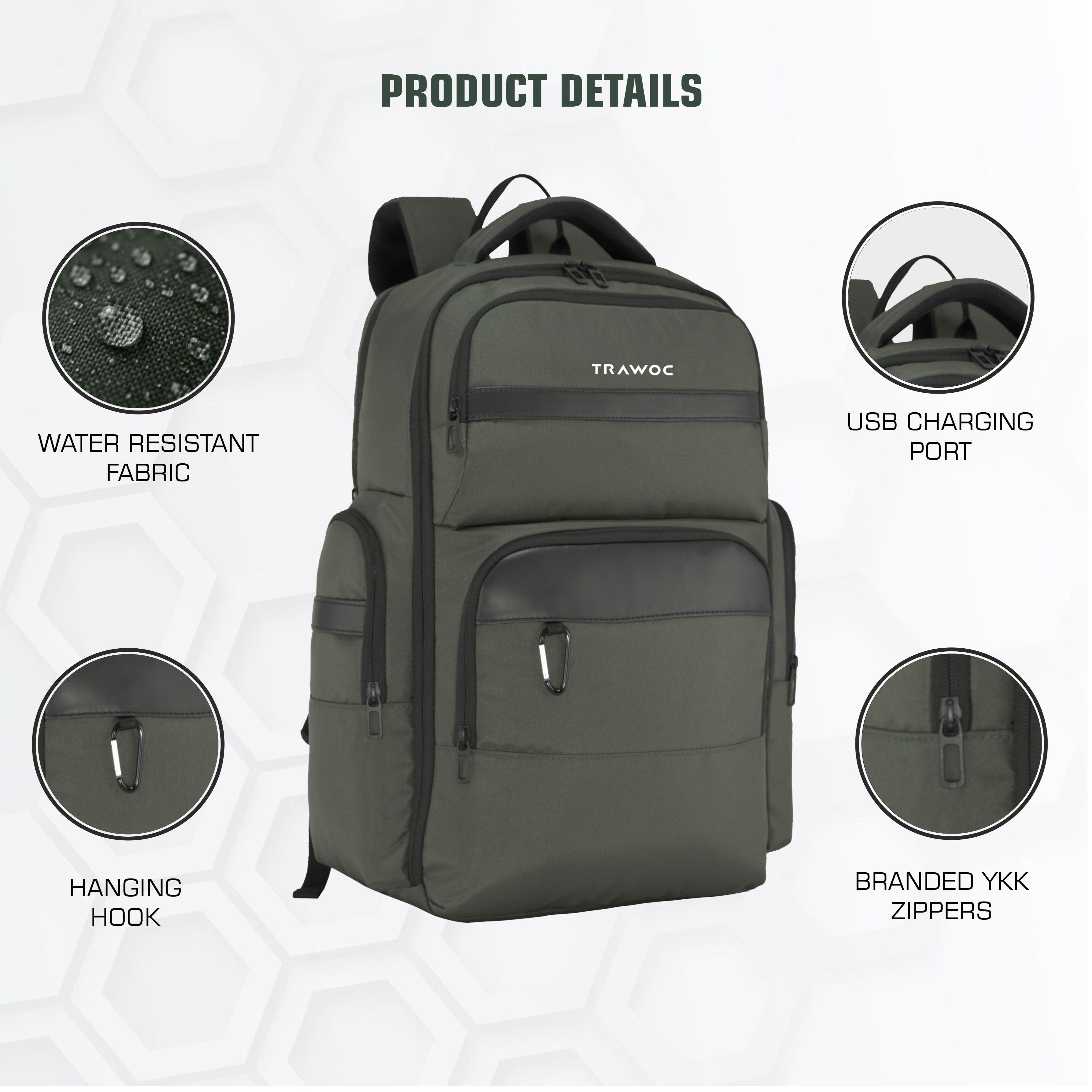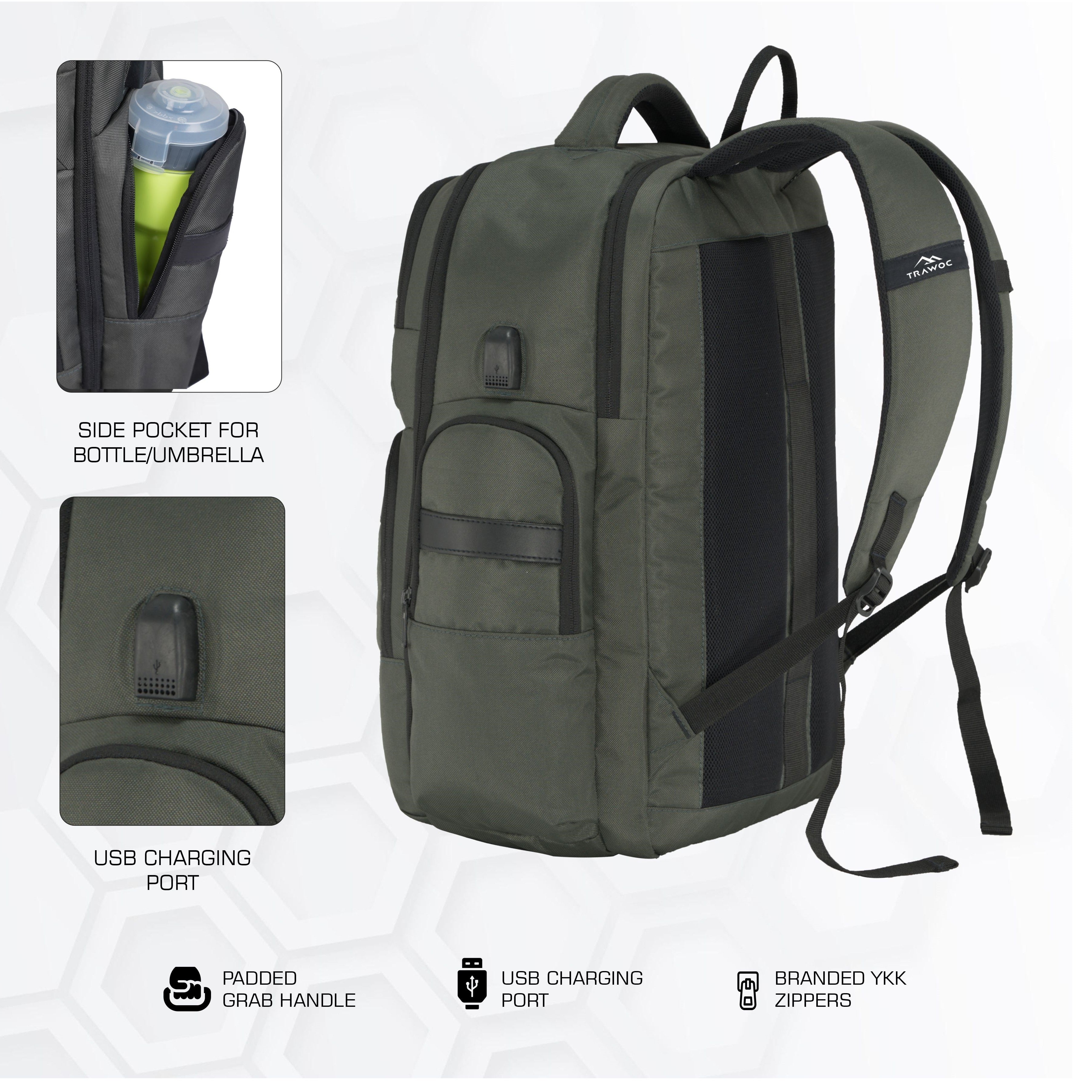 TPB03 - 30L office & Travel Bag with 16 - Inch Laptop Compartment, Suitcase - Style Opening, USB Charging - Uniformgreen - TRAWOC