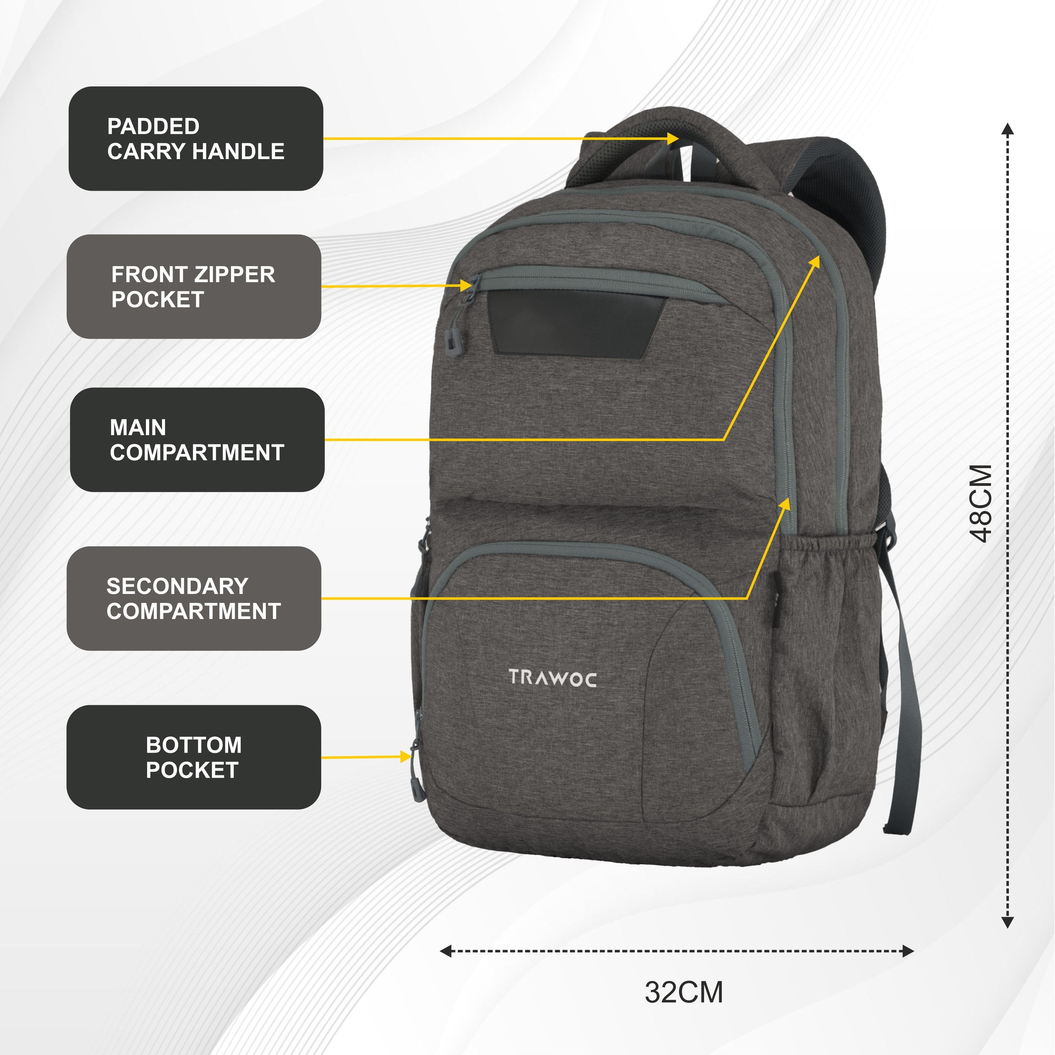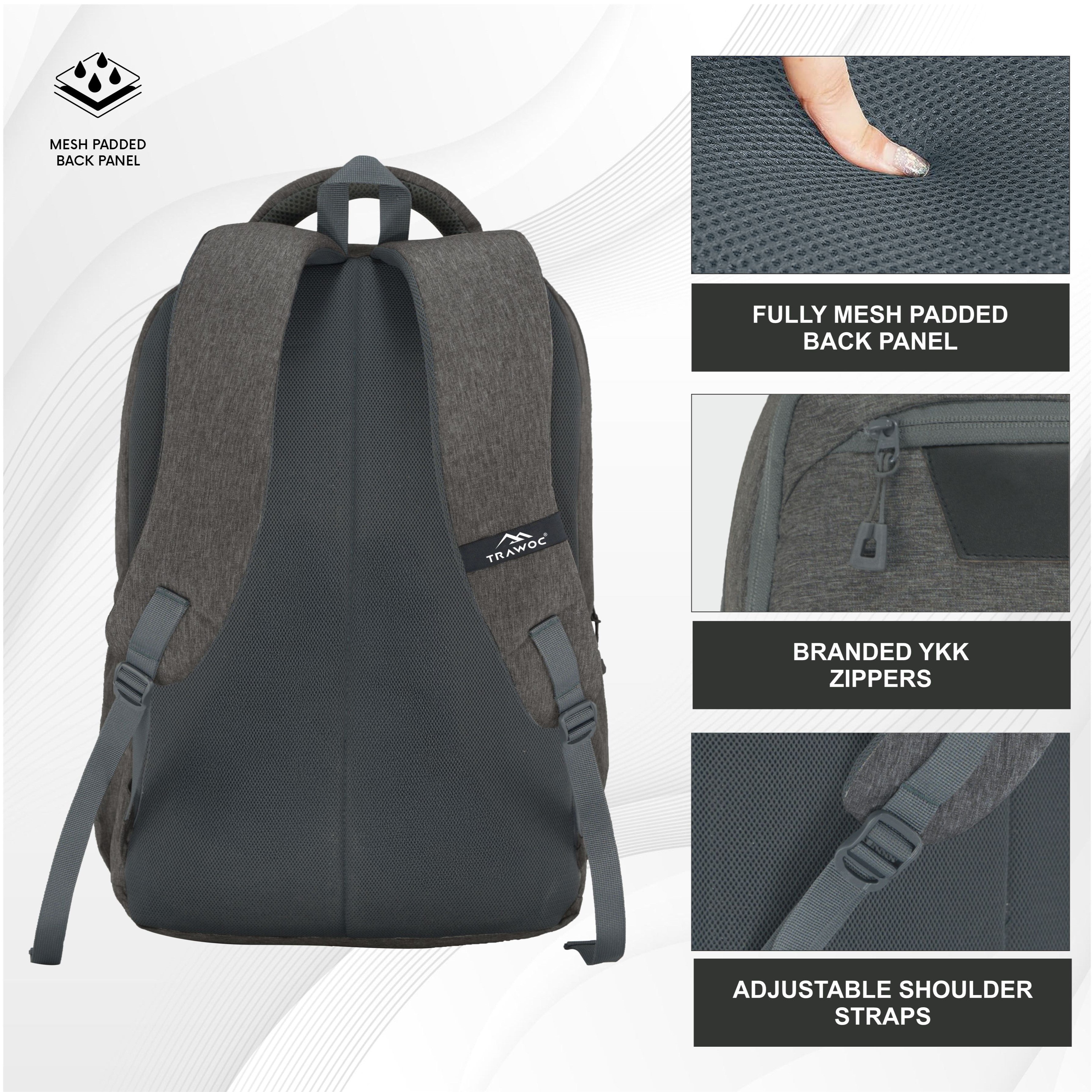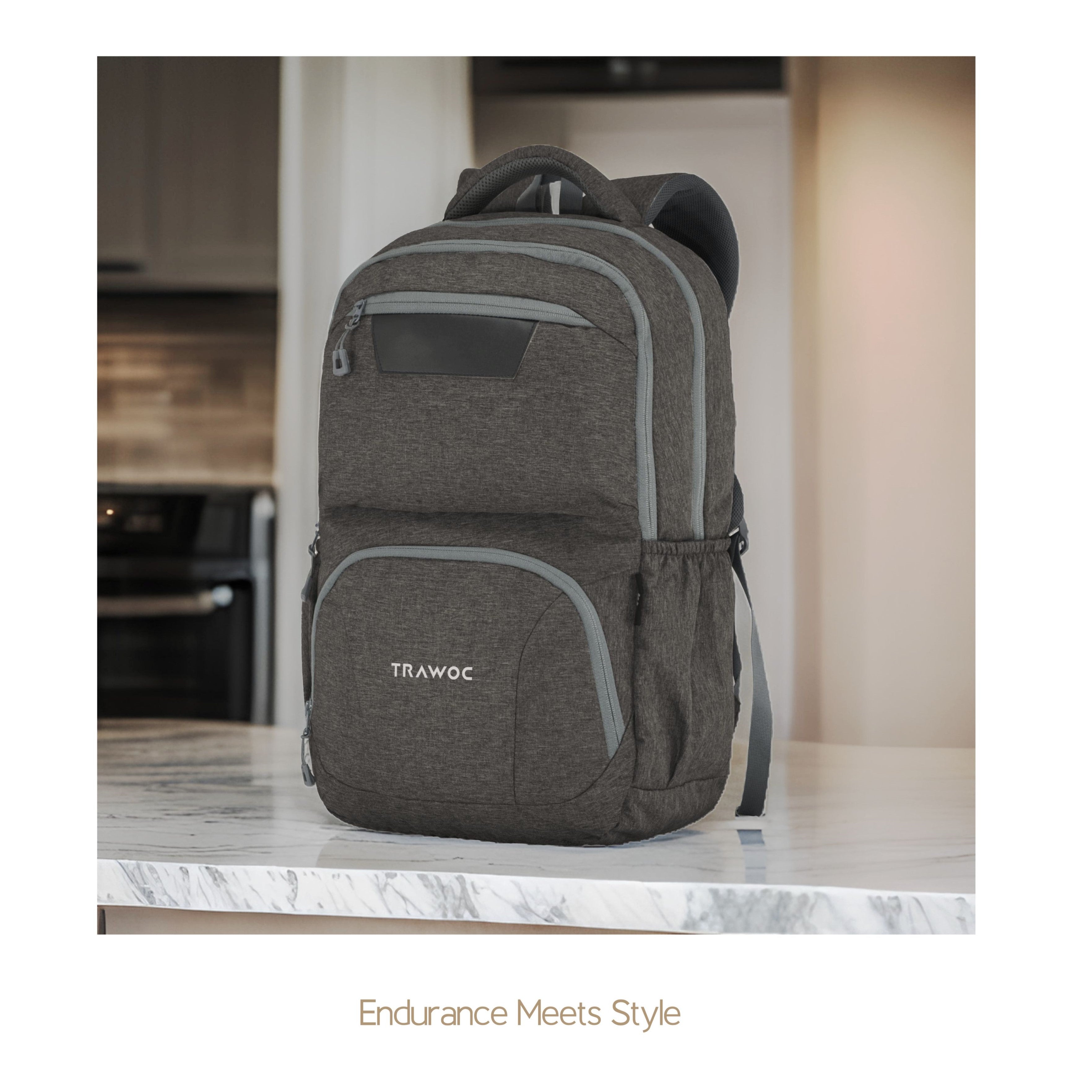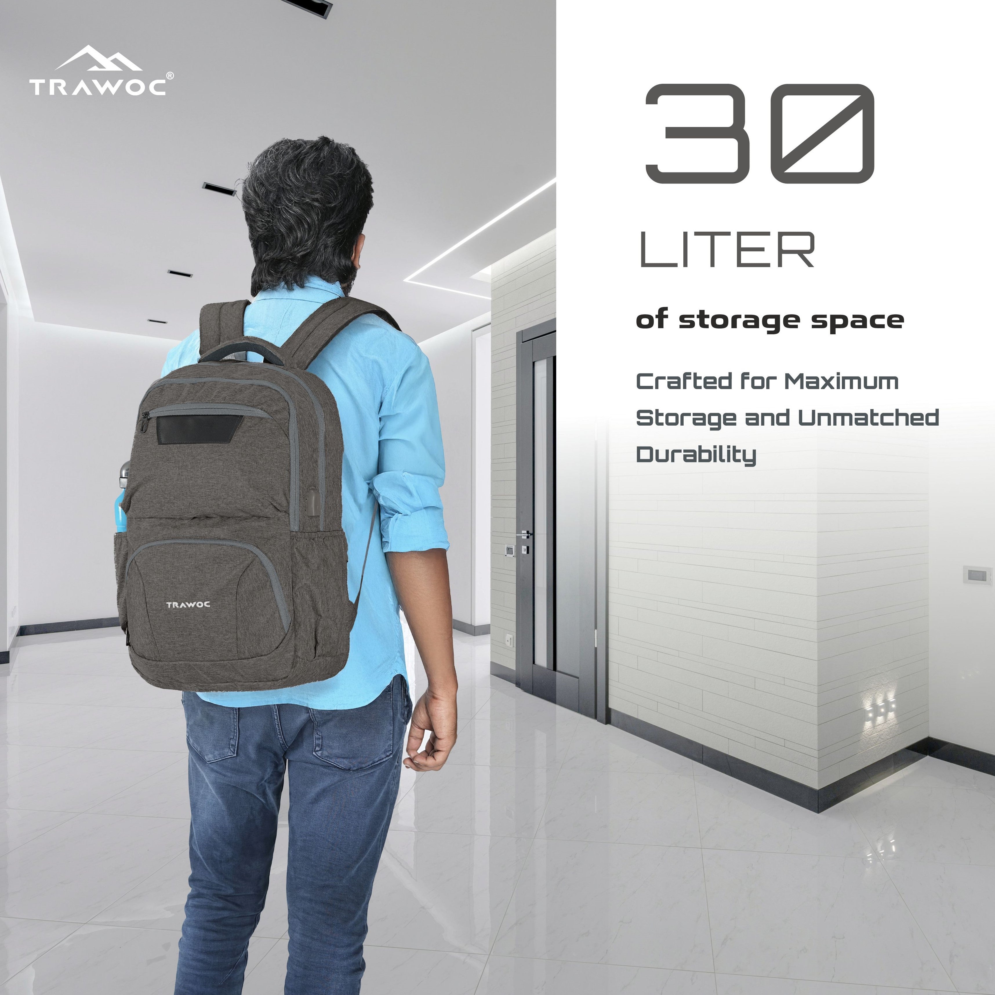 TPB04 - 30L Laptop Backpack 16 - Inch Compartment, USB Charging Port - Ash brown - TRAWOC