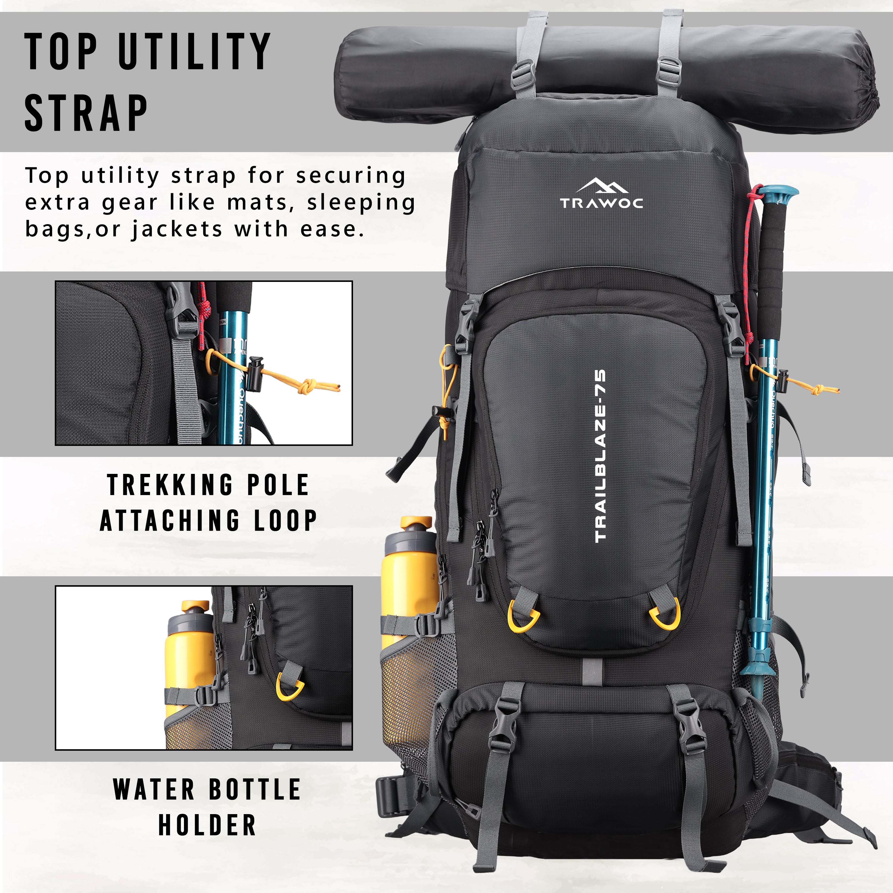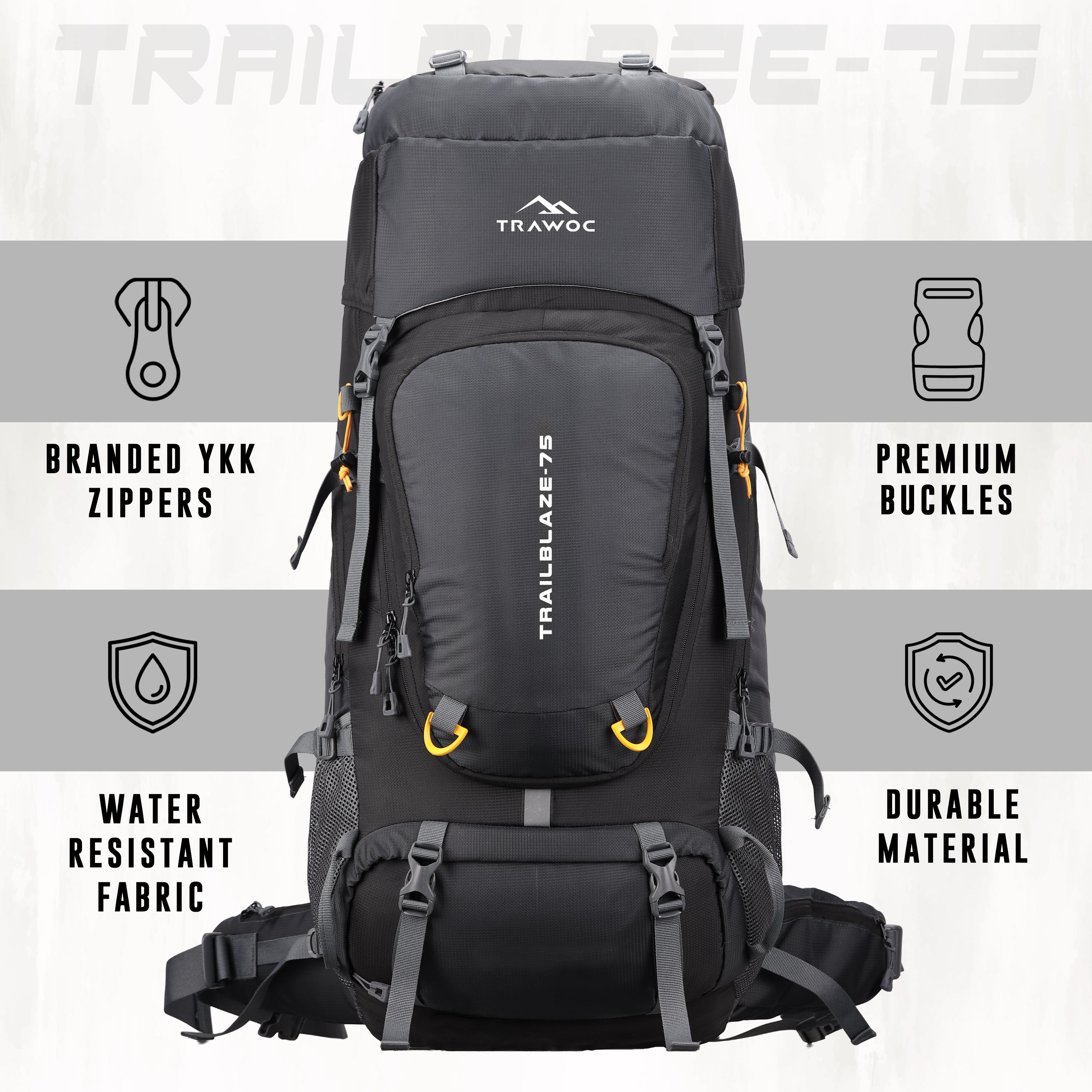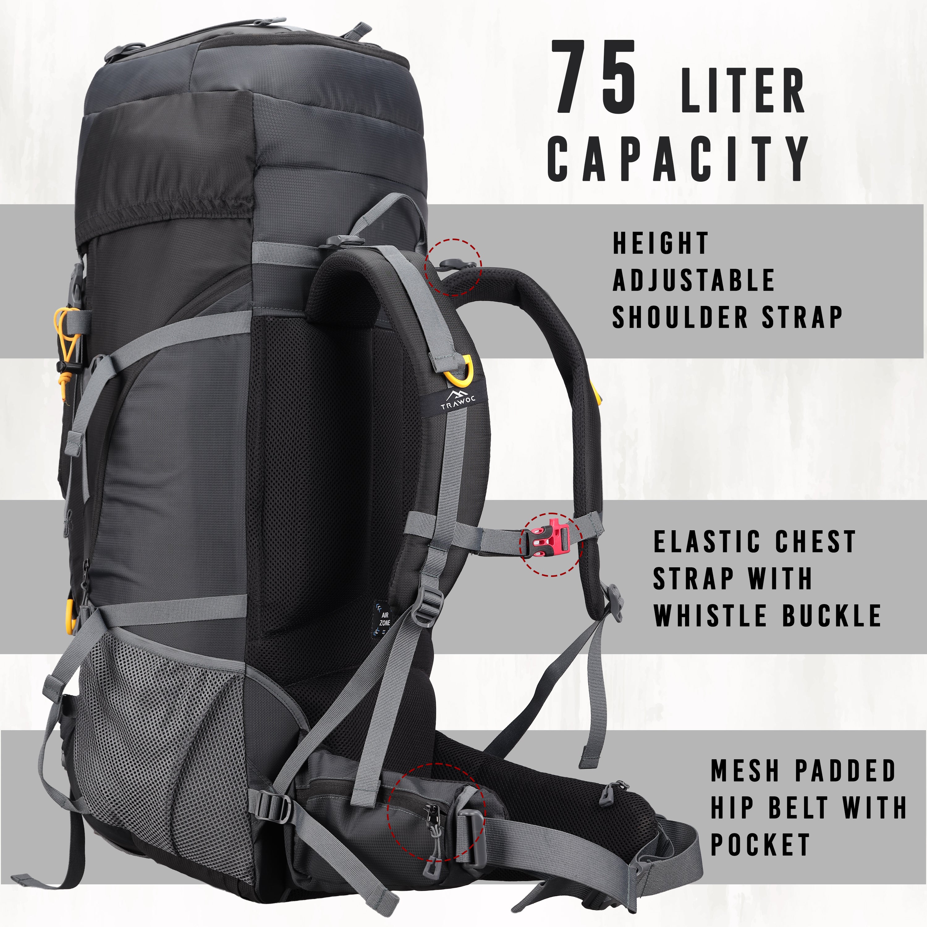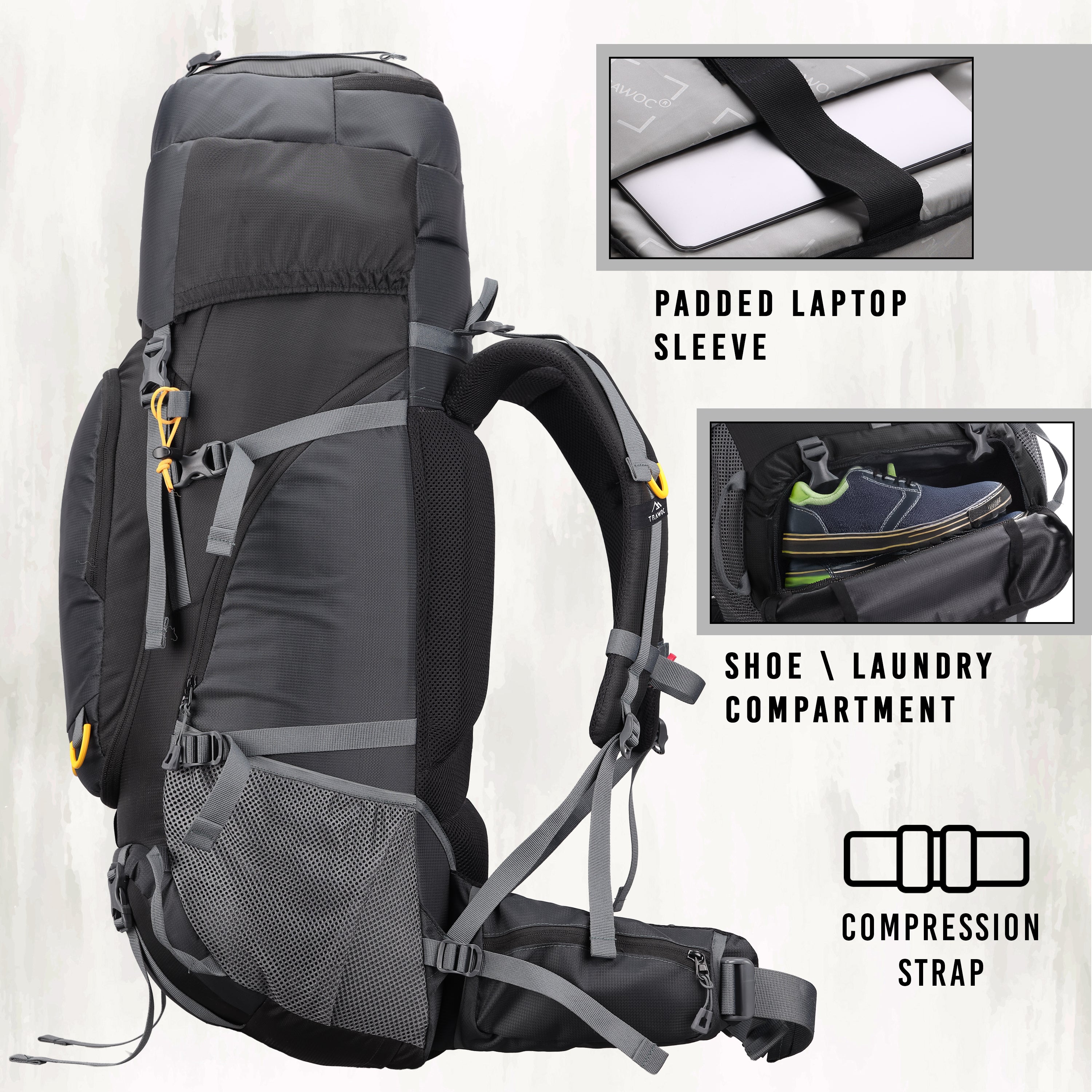 Spacious & Organized: 75L backpack with multiple compartments, a padded laptop sleeve, and a dedicated shoe pocket for easy packing.