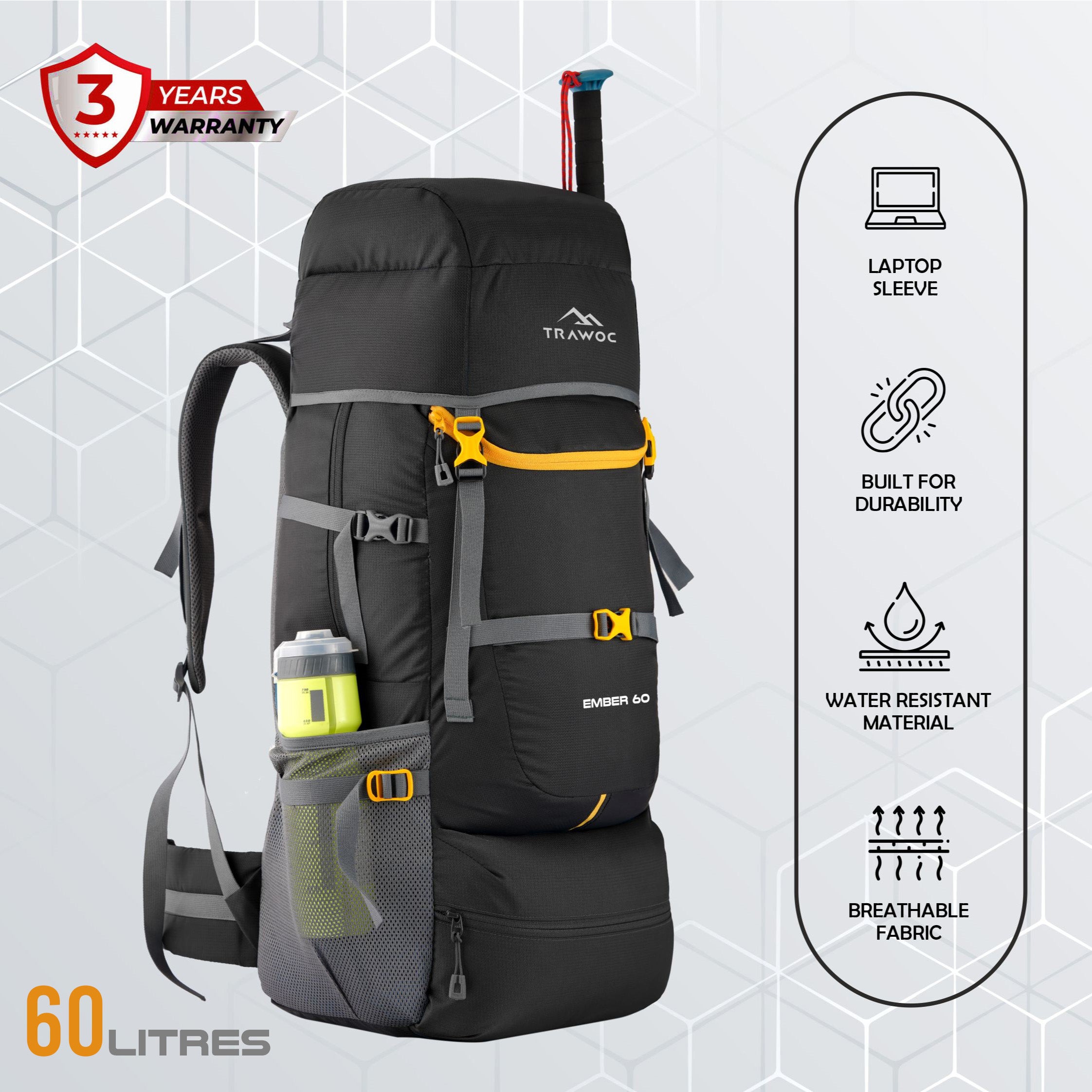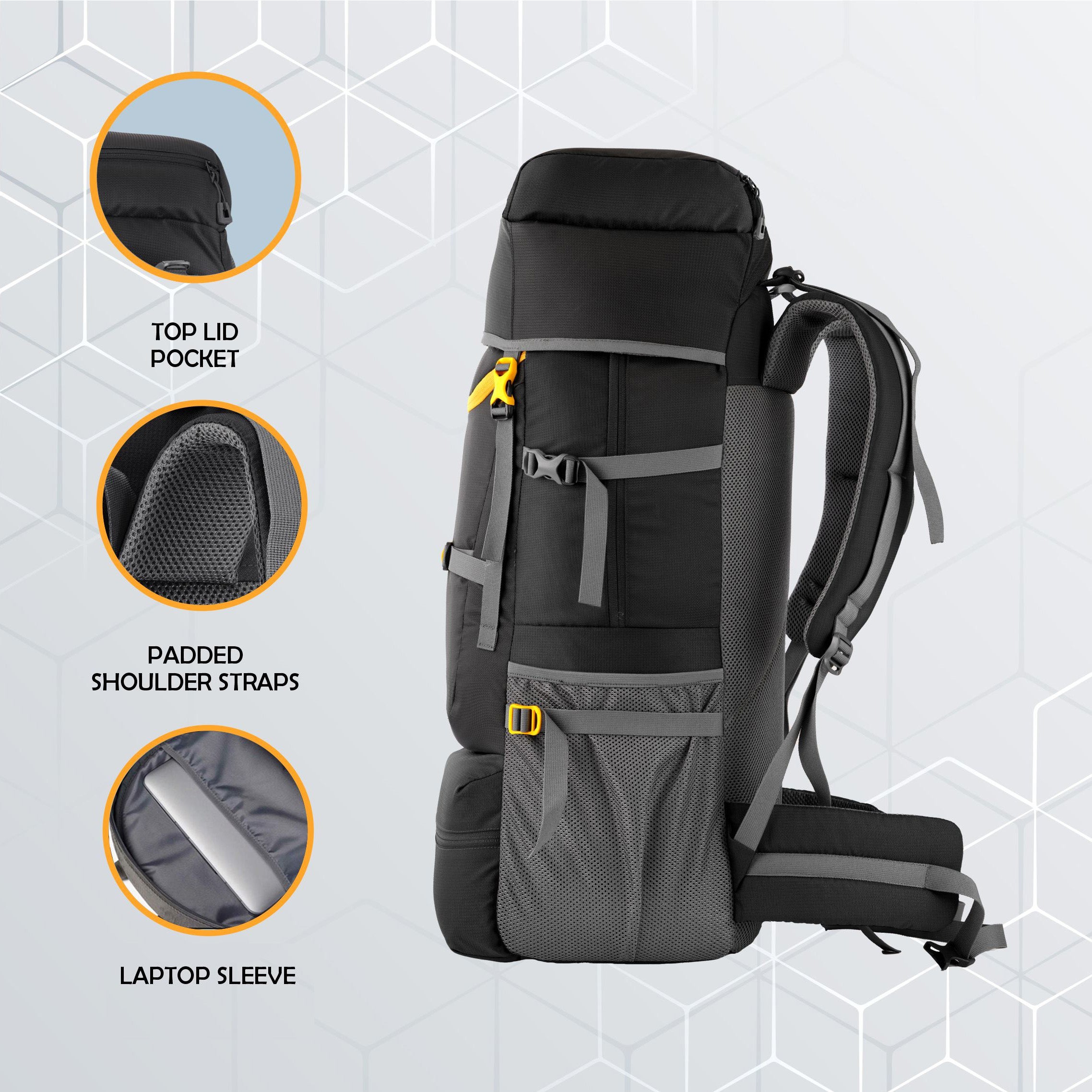 Spacious & Functional: 60L rucksack with multiple compartments and a laptop sleeve, ideal for trekking, camping, and long outdoor trips.