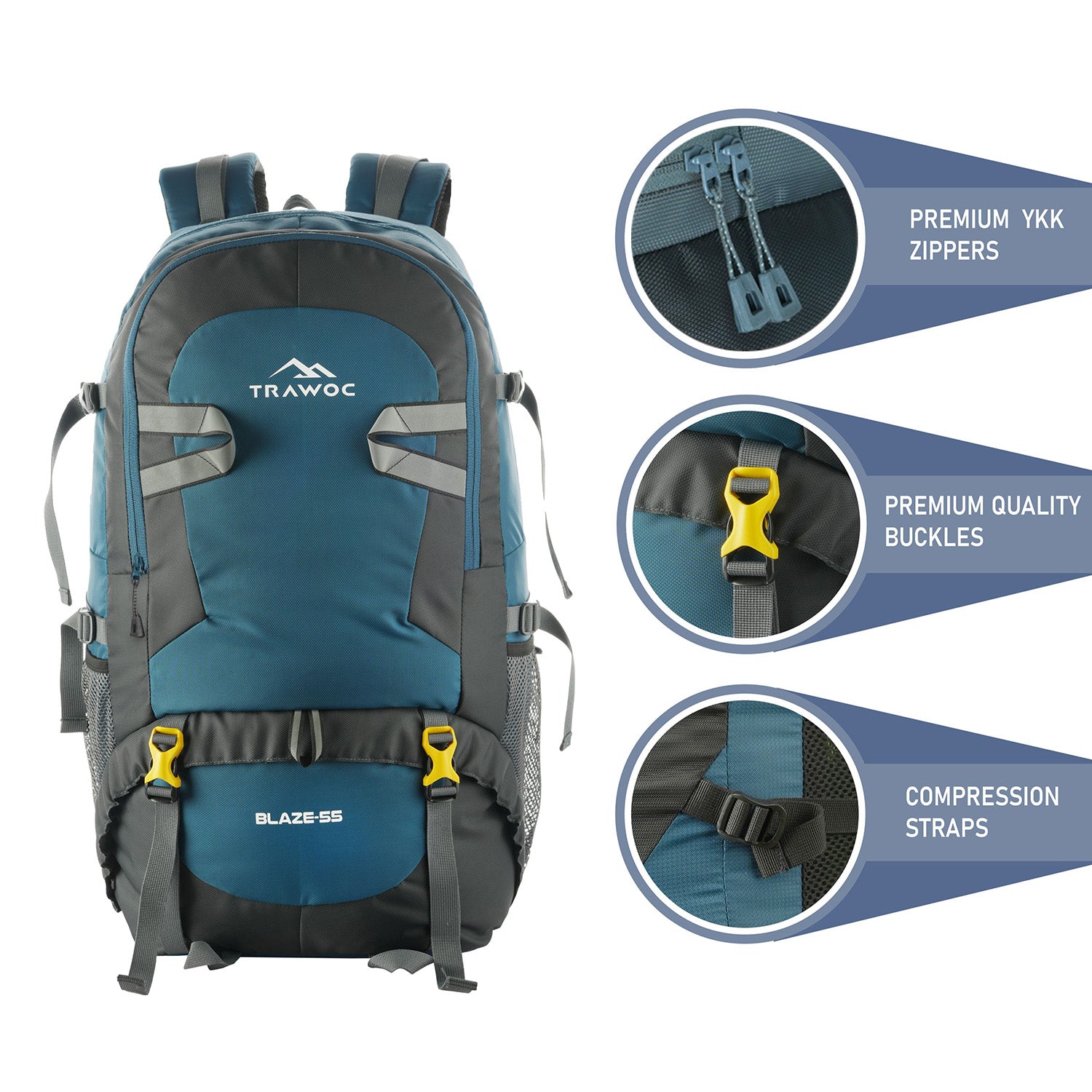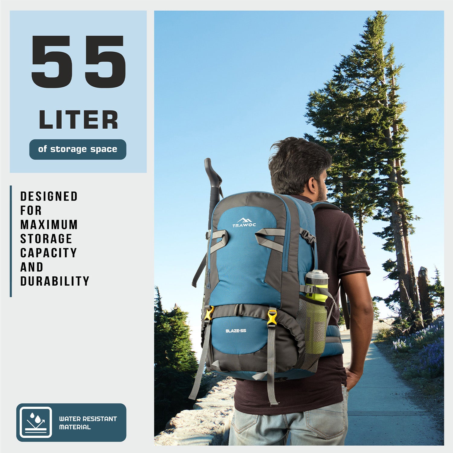 Spacious & Functional: 55L rucksack with a laptop sleeve and multiple pockets, ideal for trekking, camping, and multi-day travel.