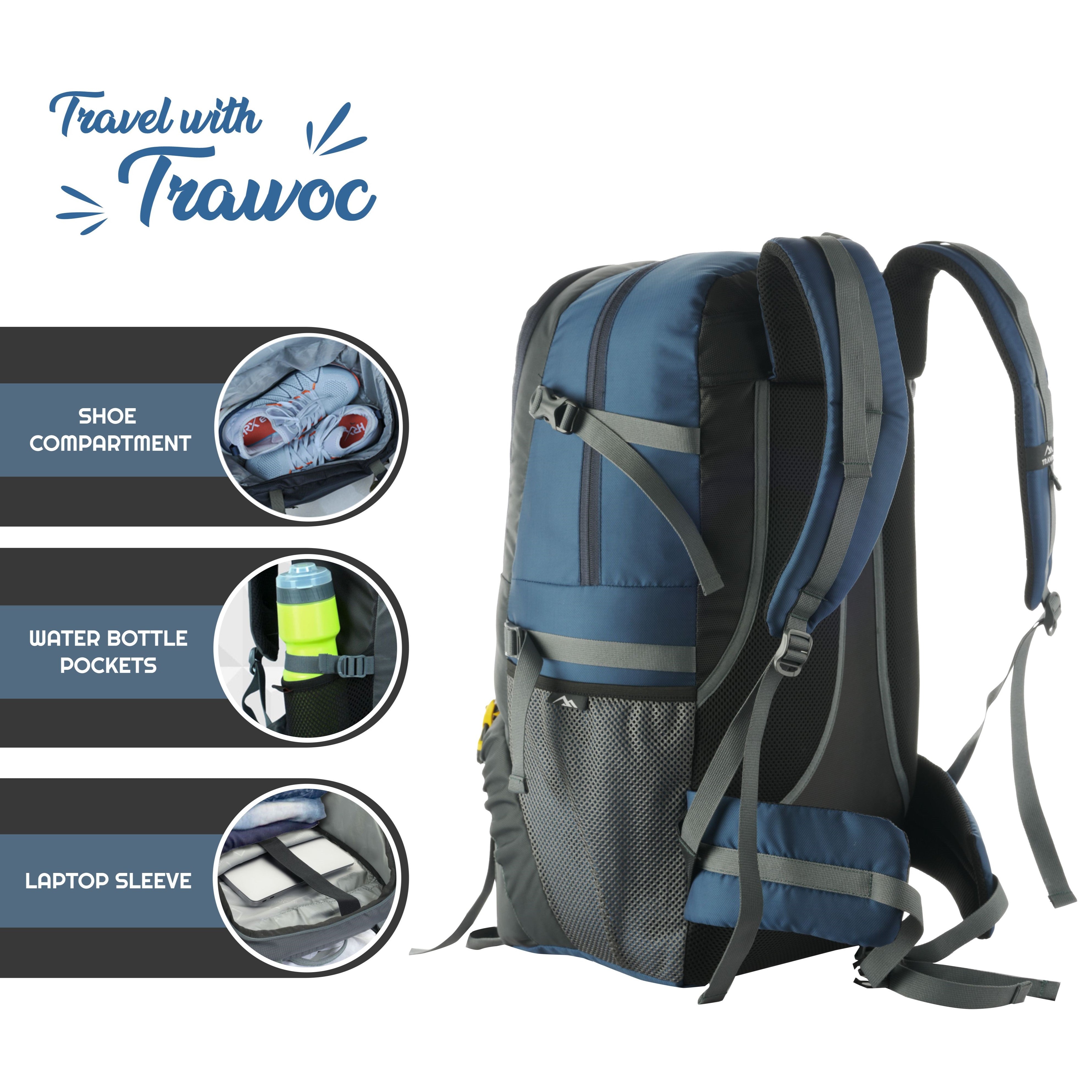 BLAZE 55 L Travel Backpack Daypack for Camping Hiking Trekking - Navyblue - TRAWOC