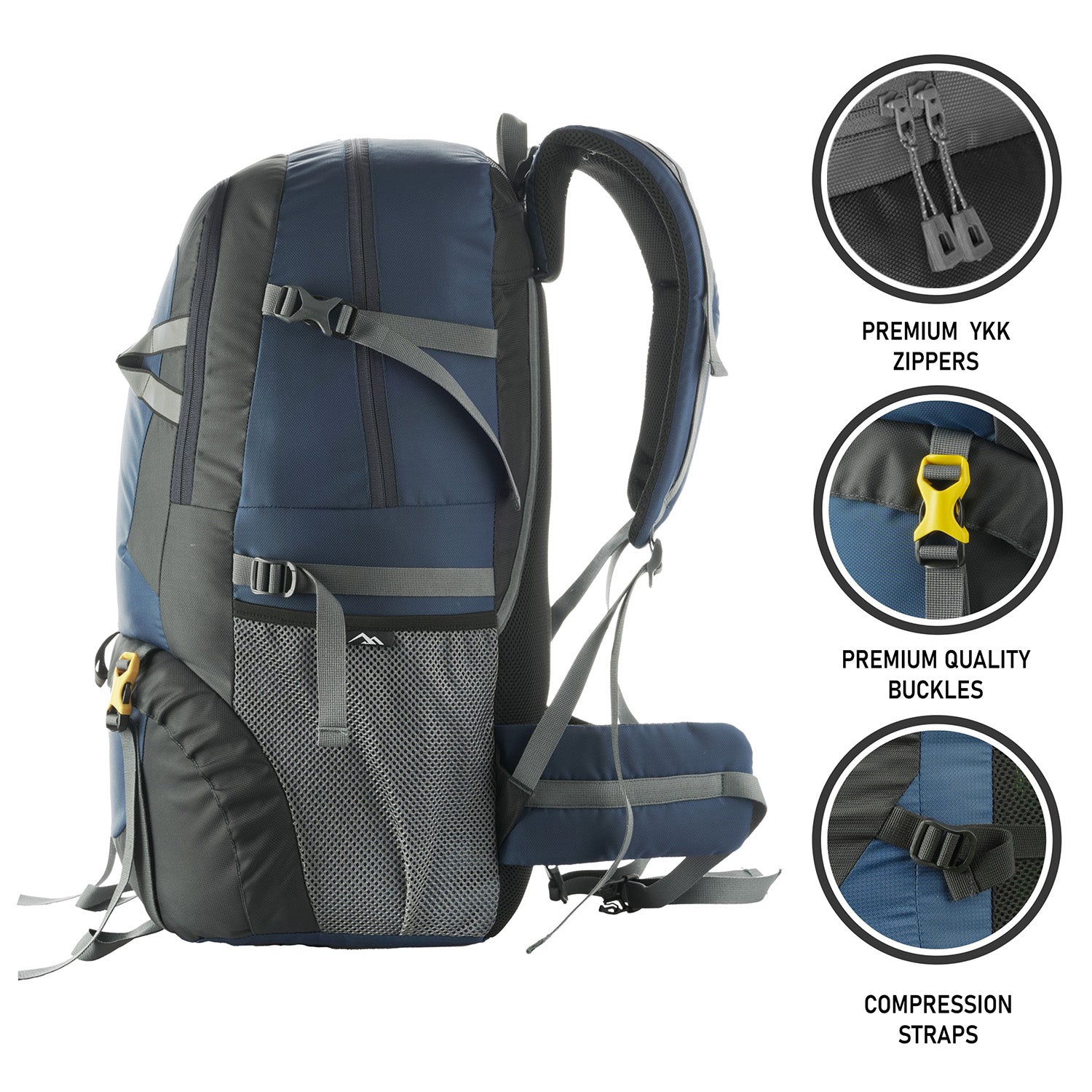 Spacious & Functional: 55L rucksack with a laptop sleeve and multiple pockets, ideal for trekking, camping, and multi-day travel.