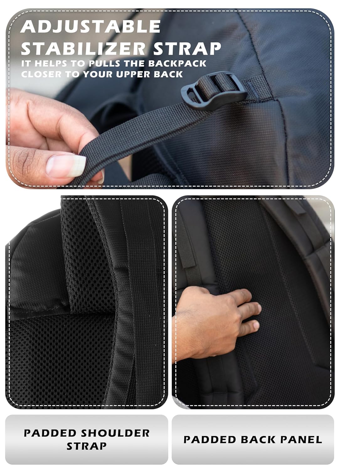 Breathable back padding ensures superior airflow, keeping you cool and sweat-free during long treks.