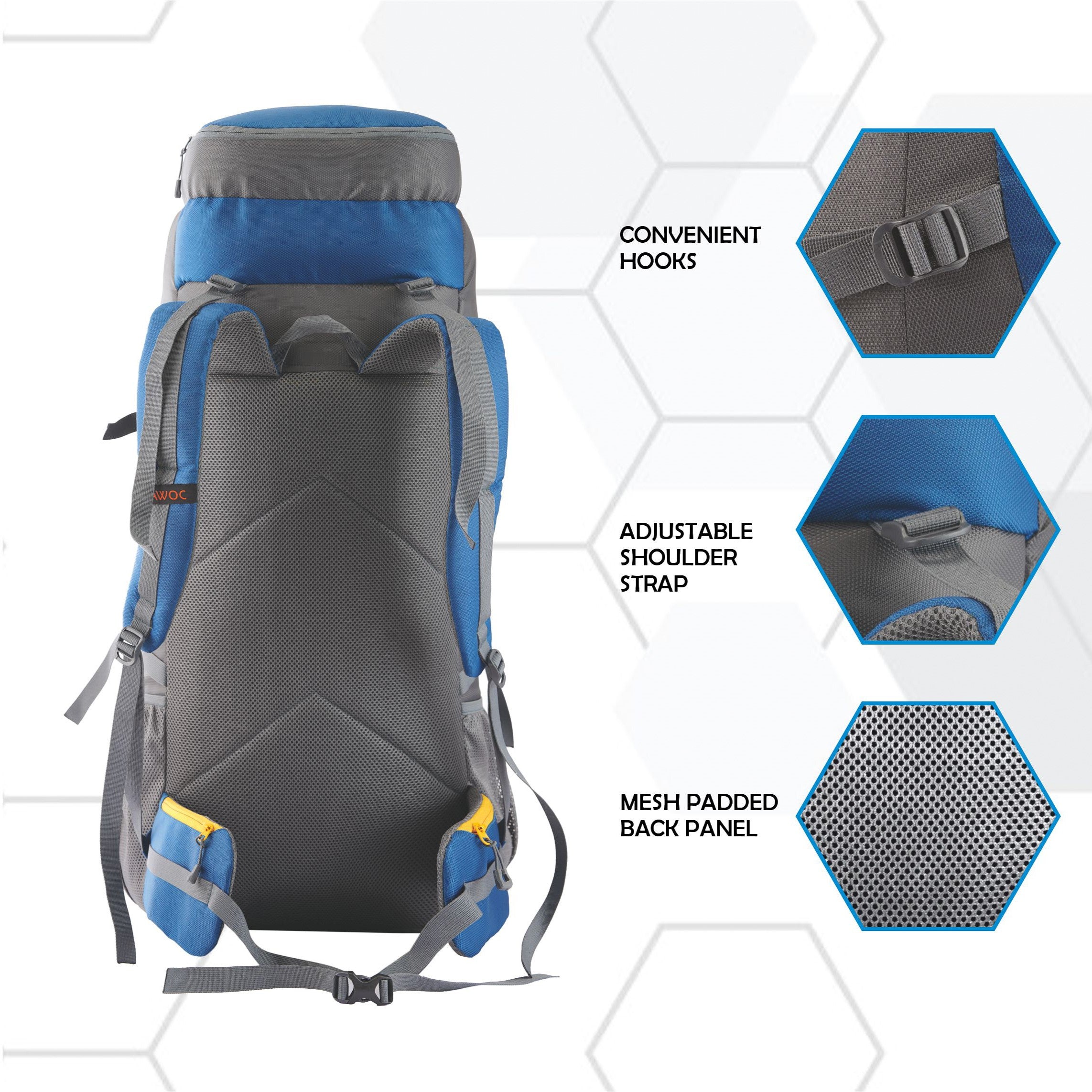 Spacious & Functional: 60-liter trekking backpack with a large main compartment, laptop sleeve, and multiple pockets for easy organization—ideal for hiking, camping, and travel.