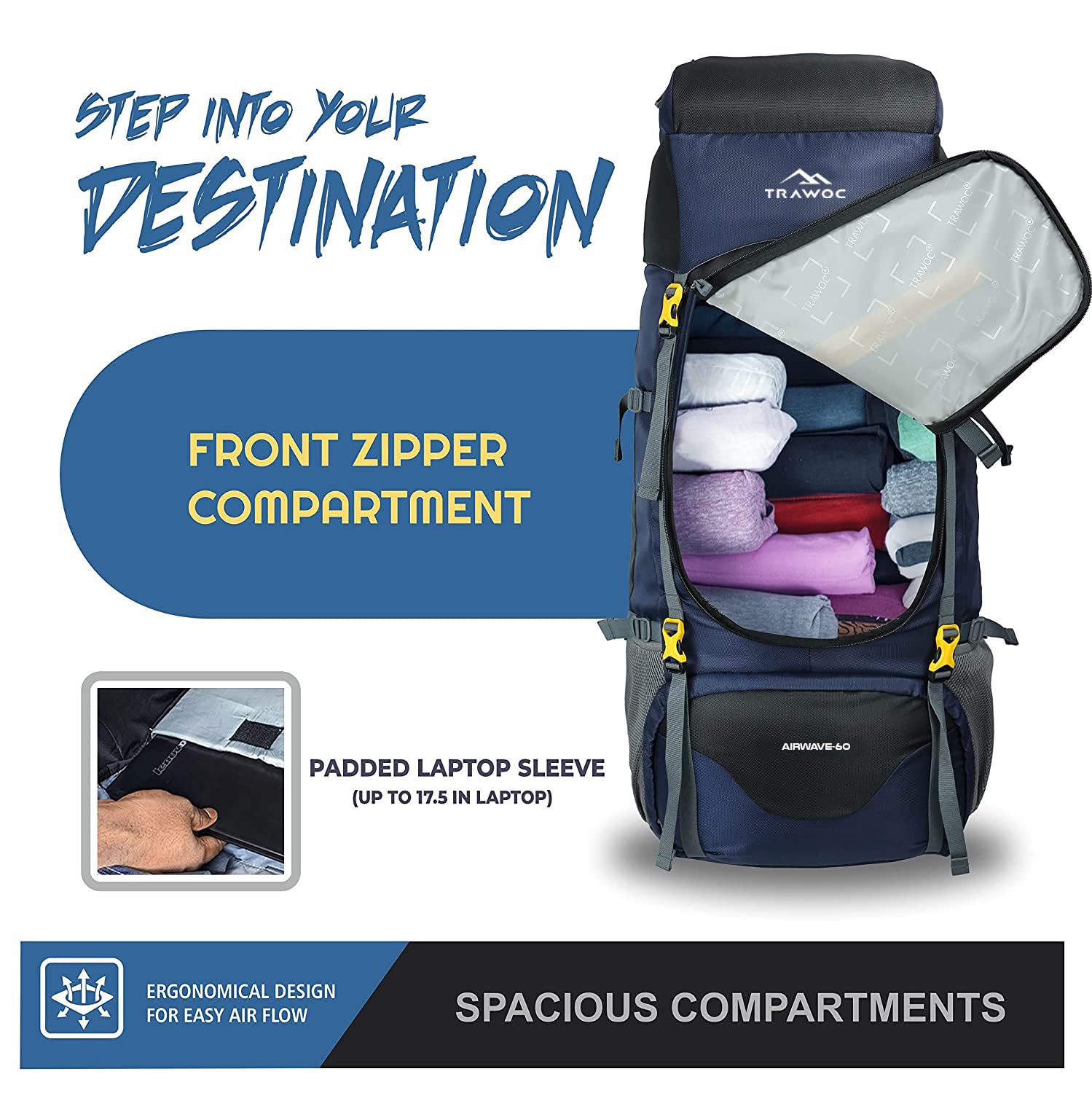 Spacious & Functional: 60L capacity with a laptop sleeve (non-padded), multiple compartments, and a separate shoe compartment for organized packing.