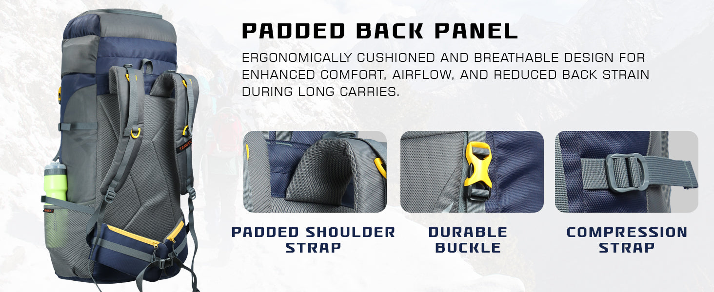 Breathable back padding ensures superior airflow, keeping you cool and sweat-free during long treks.
