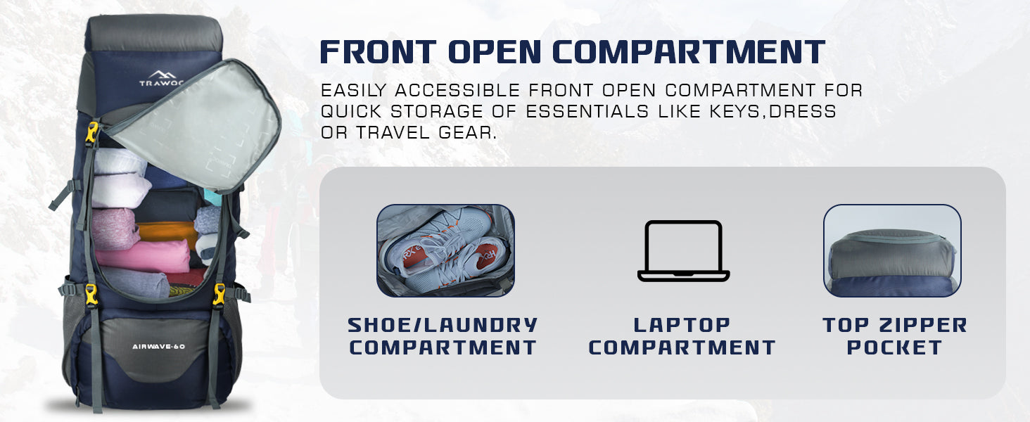 Front-Opening Design: Easy access to the main section, making packing and unpacking quick and convenient.