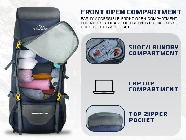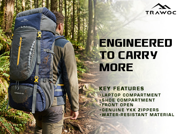 Spacious & Functional: 60L capacity with a laptop sleeve (non-padded), multiple compartments, and a separate shoe compartment for organized packing.
