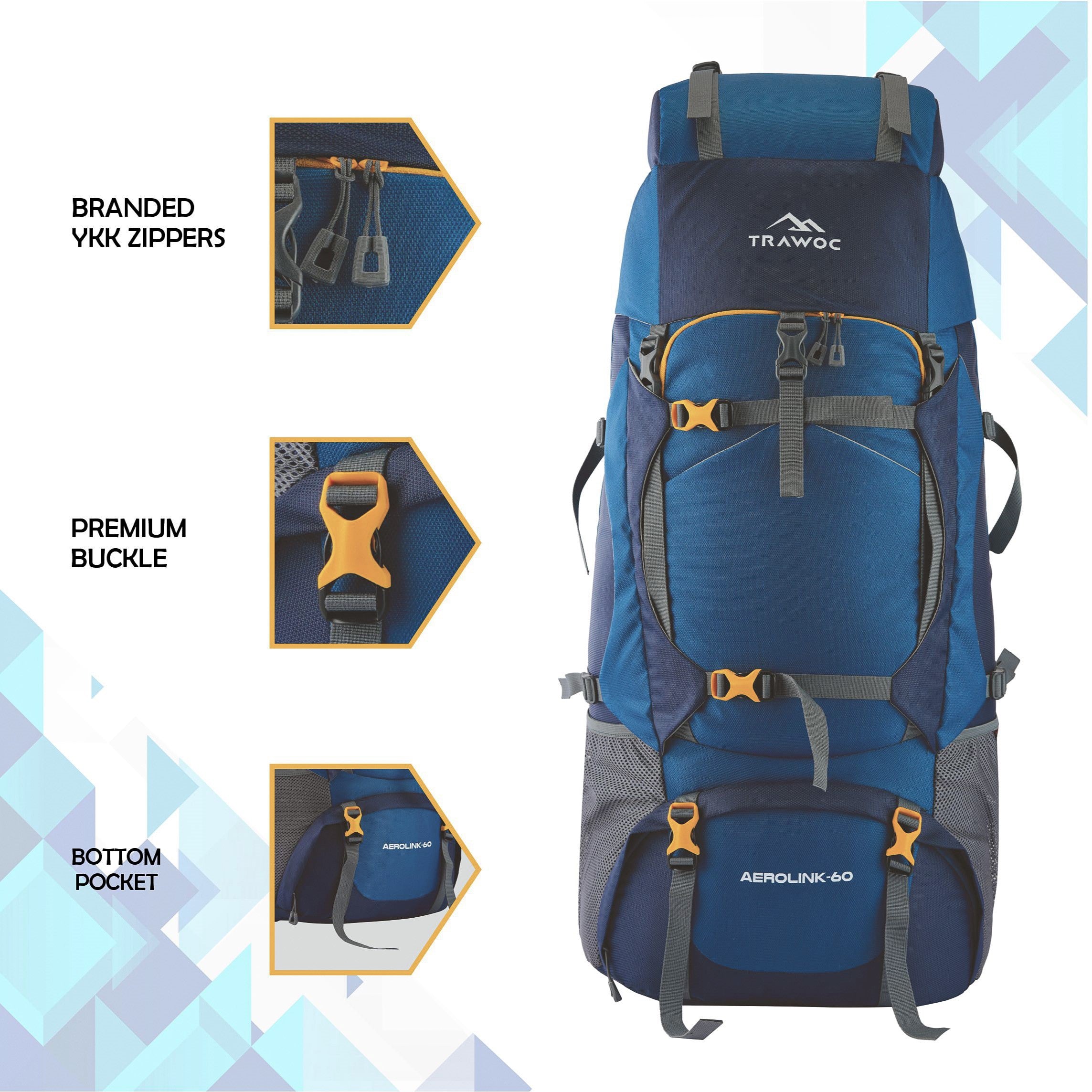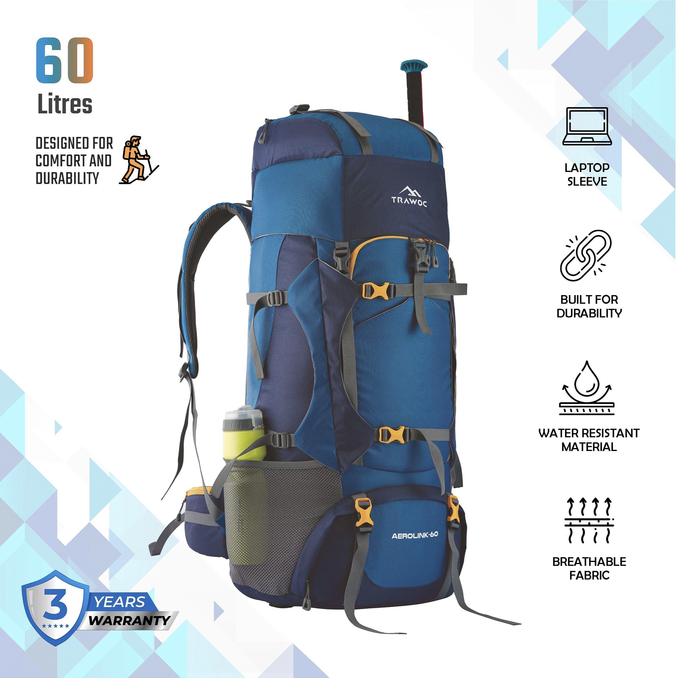 Spacious 60L Design: Ideal for trekking and travel, offering ample storage and strong weight-bearing capacity for all essentials.